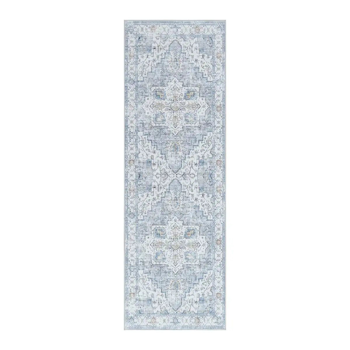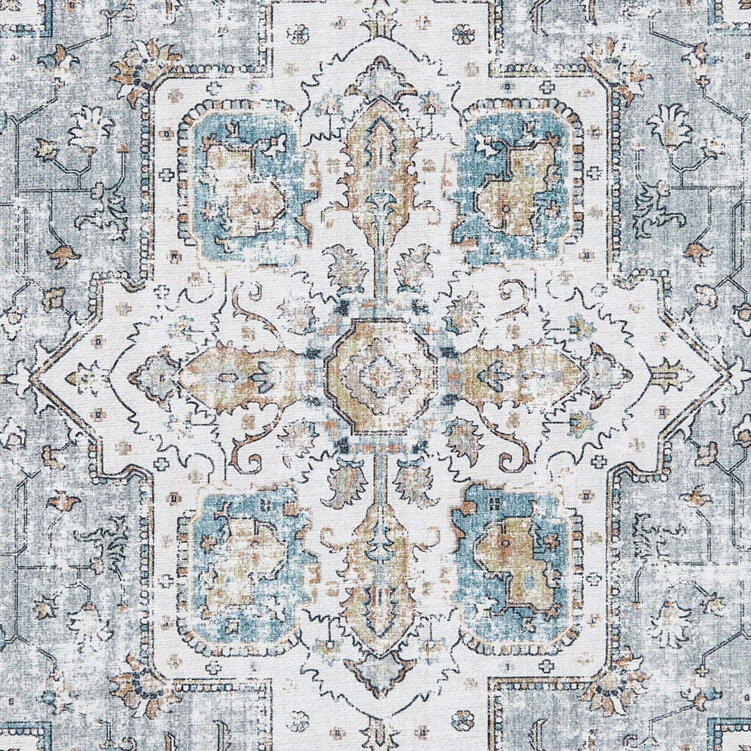 Crafted with strong synthetic fibers, this rug offers a soft, welcoming texture while the non-slip backing keeps it securely in place.