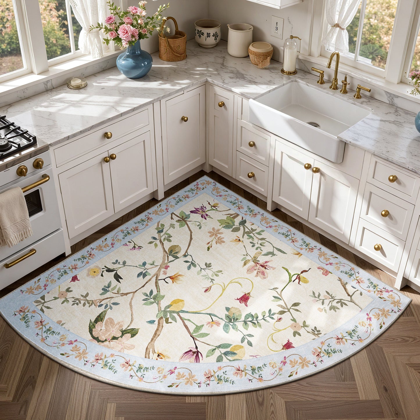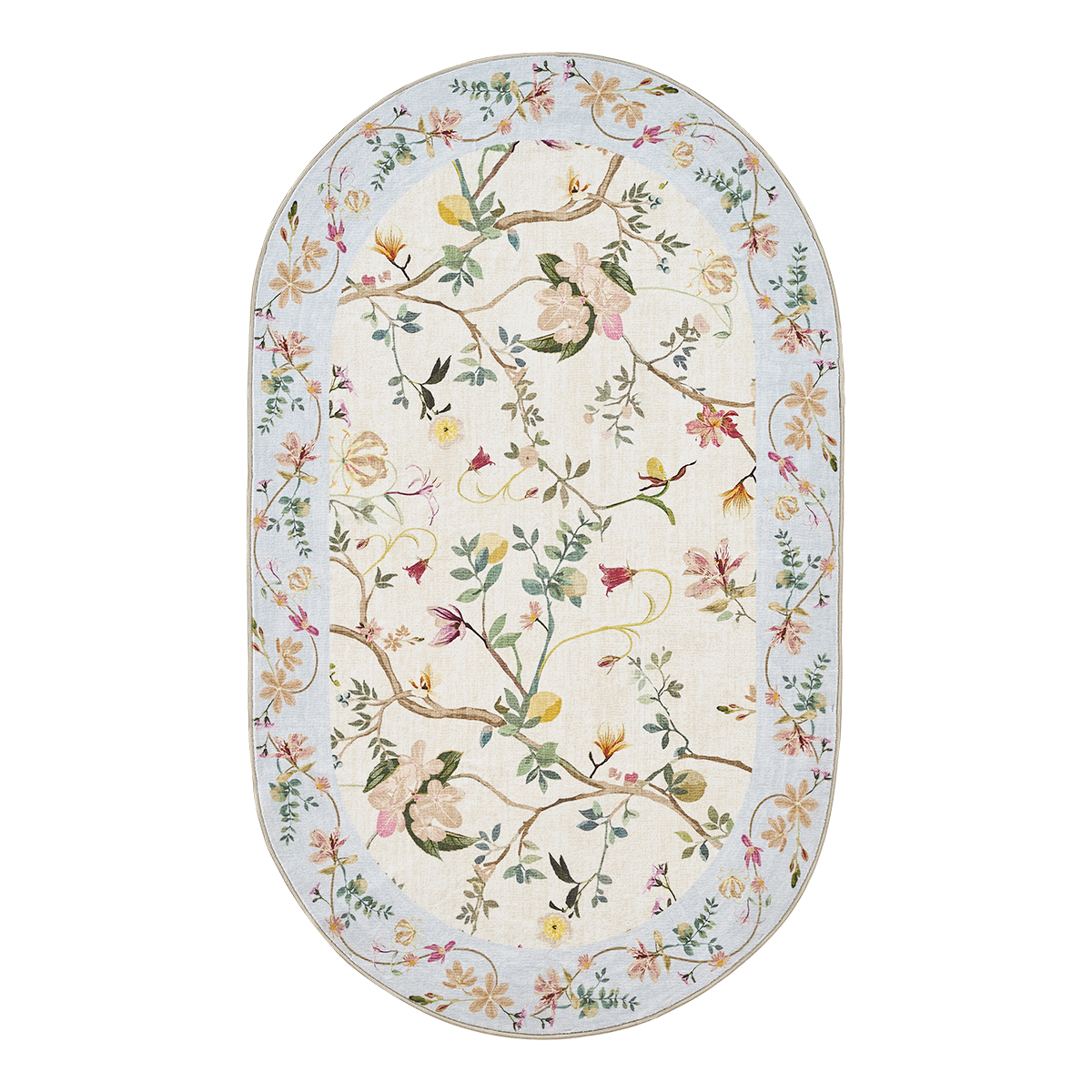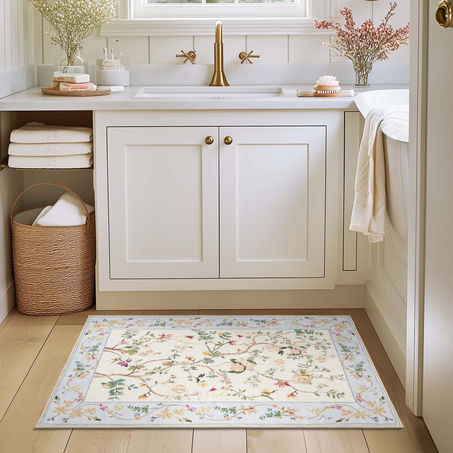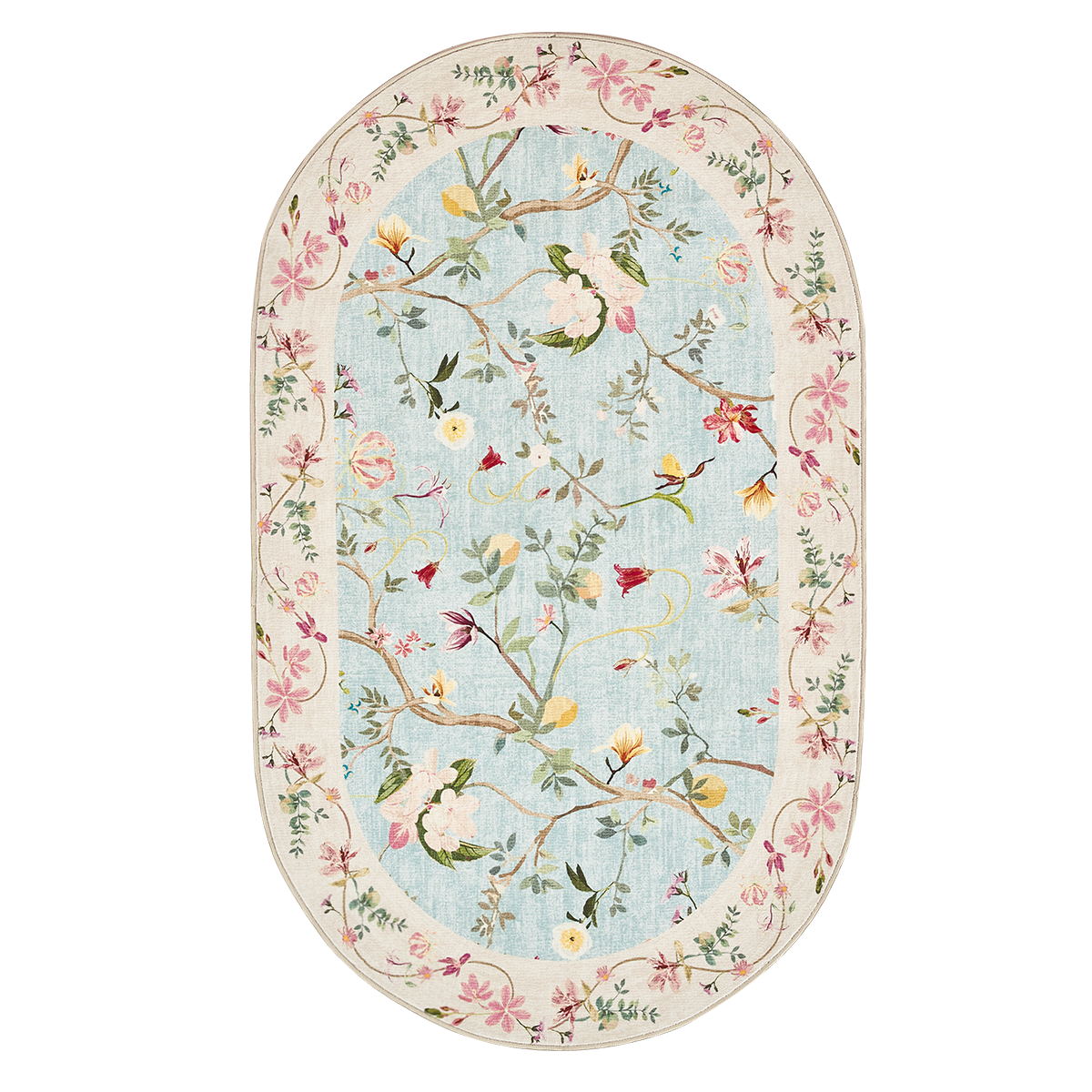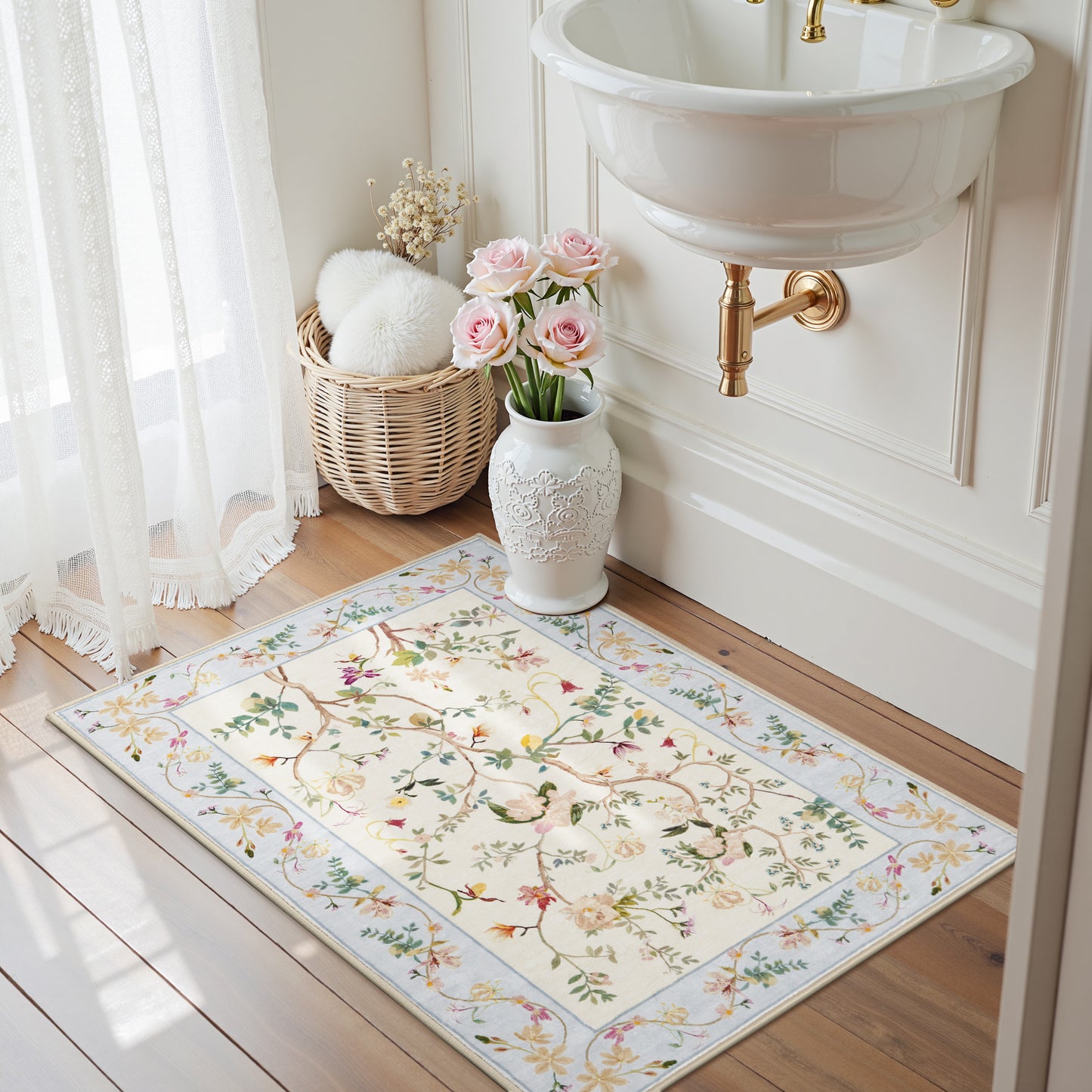 This elegant floral rug brings a refreshing spring and summer vibe while adding warmth and vitality to your space in fall and winter. It features a durable non-slip backing that grips the floor securely to help prevent slipping and protect your home.