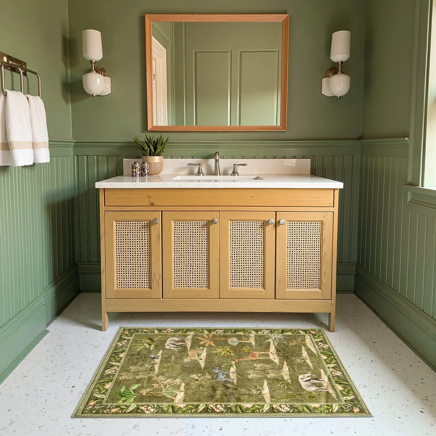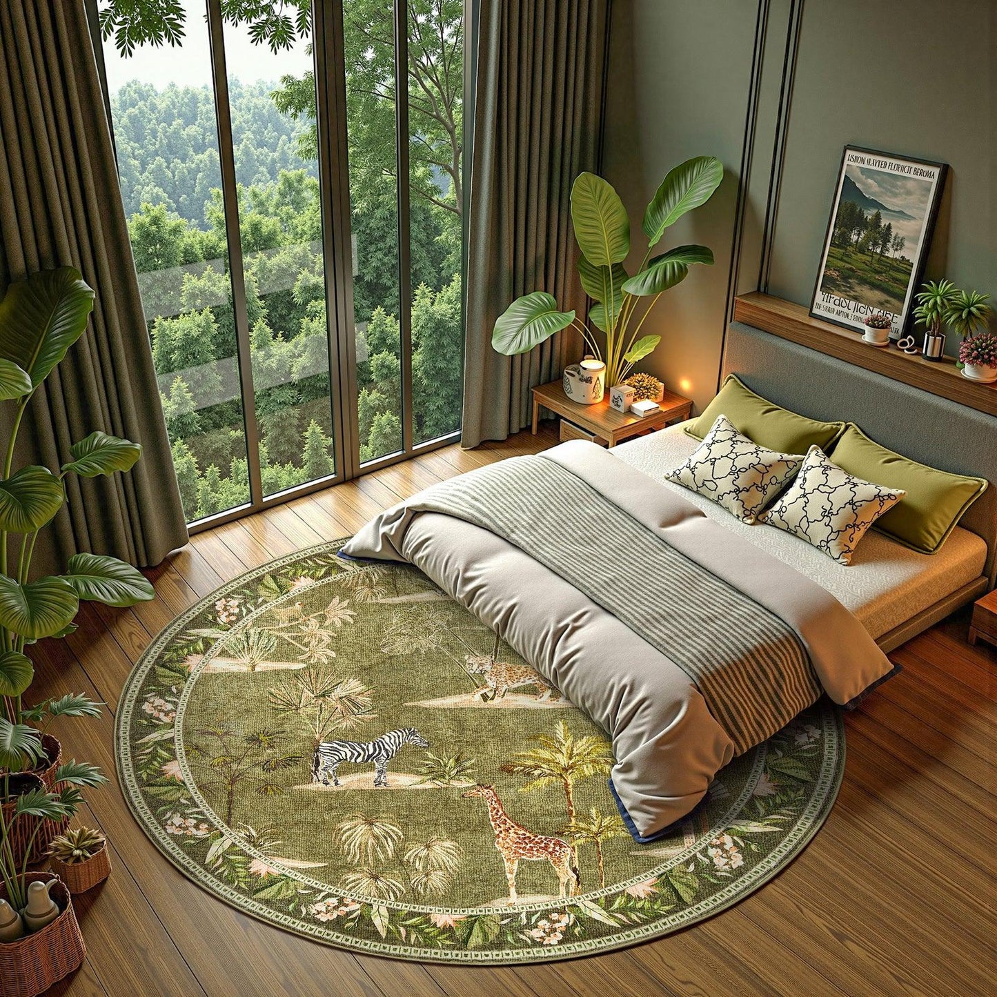 Playful Jungle Animal Design: Add a lively touch to your home with our Jungle Animals Rug. Its charming nature-inspired patterns complement modern interiors while bringing a fun, playful vibe to any room.
