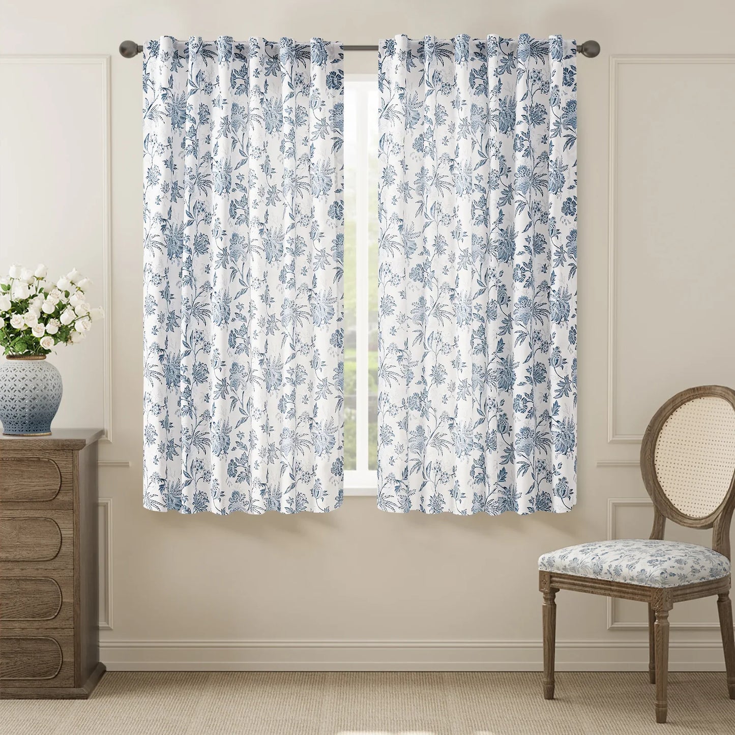 Printed Floral Curtains: This set includes two curtain panels designed with a rod pocket and back tabs for easy, hardware-free installation. The panels drape softly when open, creating a warm and inviting atmosphere in any room.