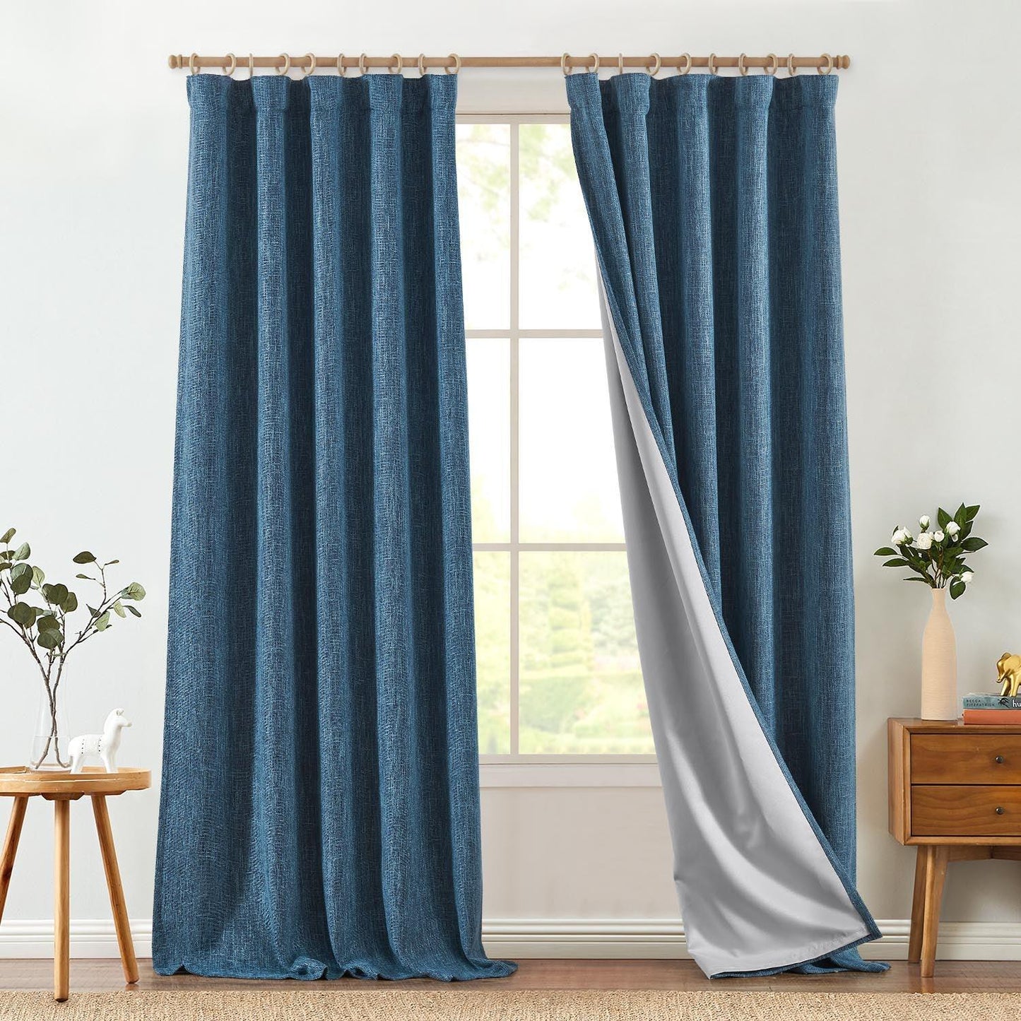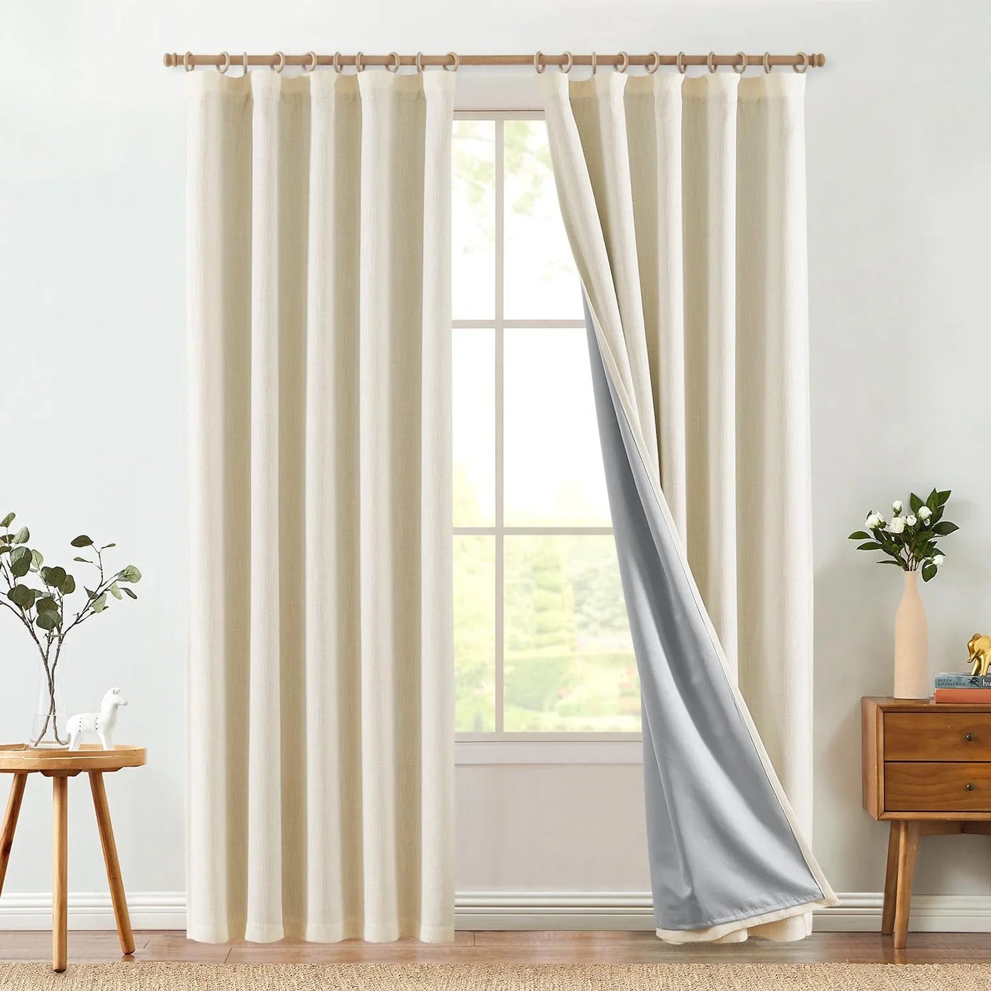 Textured Linen-Blend Solid Lined 3-in-1 Curtains
