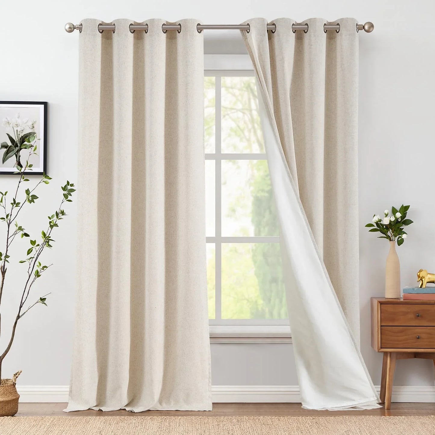 Lined Linen-Blend Solid Grommet Curtains - Jinchan Home