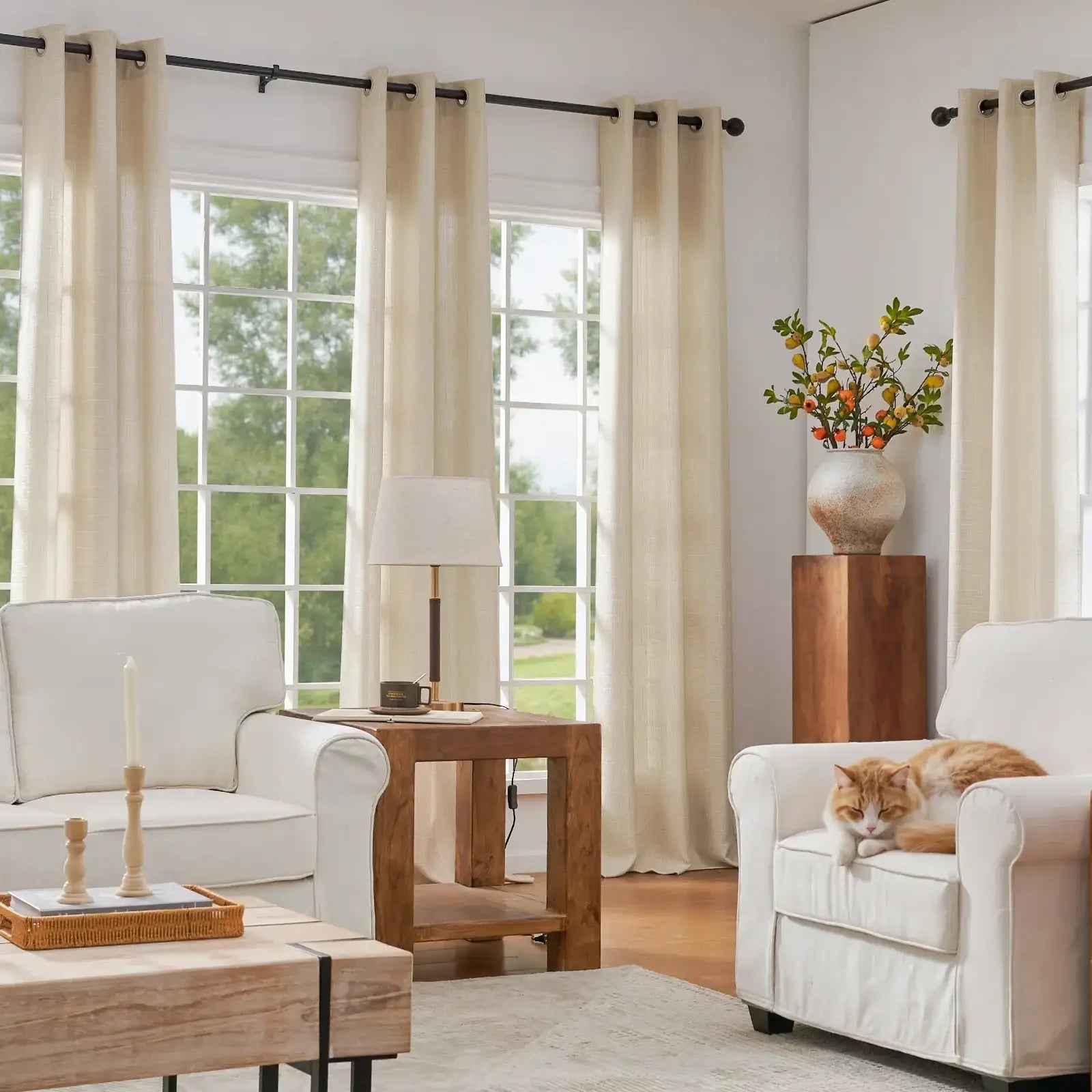 Lightweight and semi-sheer, they softly filter natural light while maintaining privacy, creating a bright and inviting atmosphere.