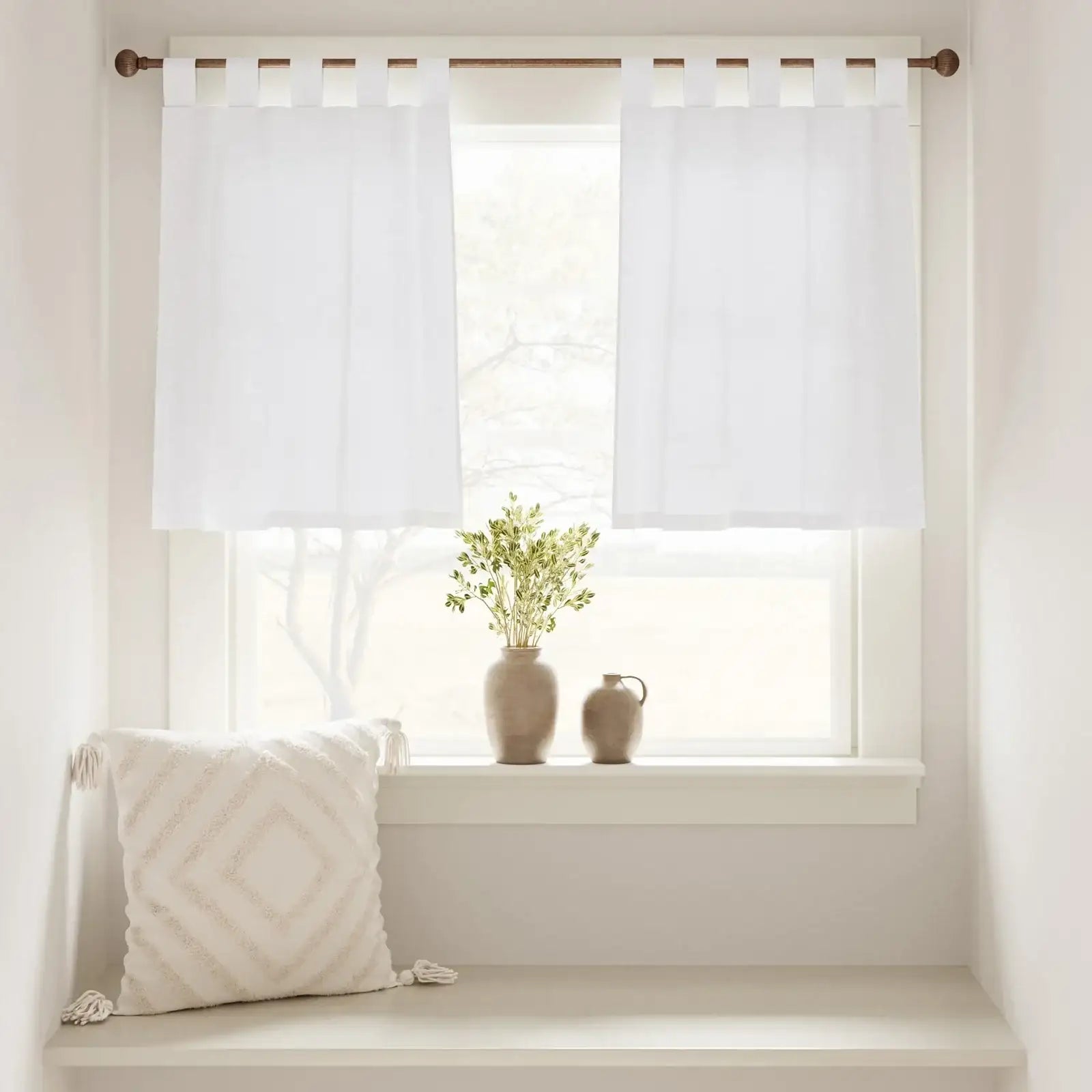 Solid Linen Tab-Top Sheer Kitchen Curtains - Jinchan Home