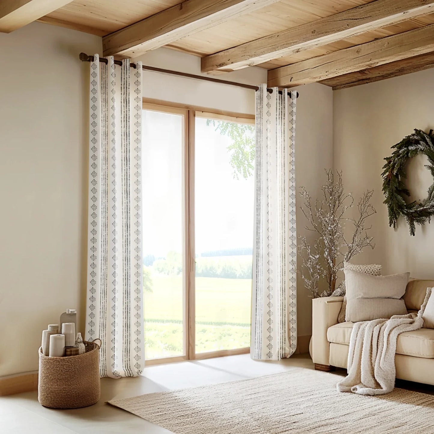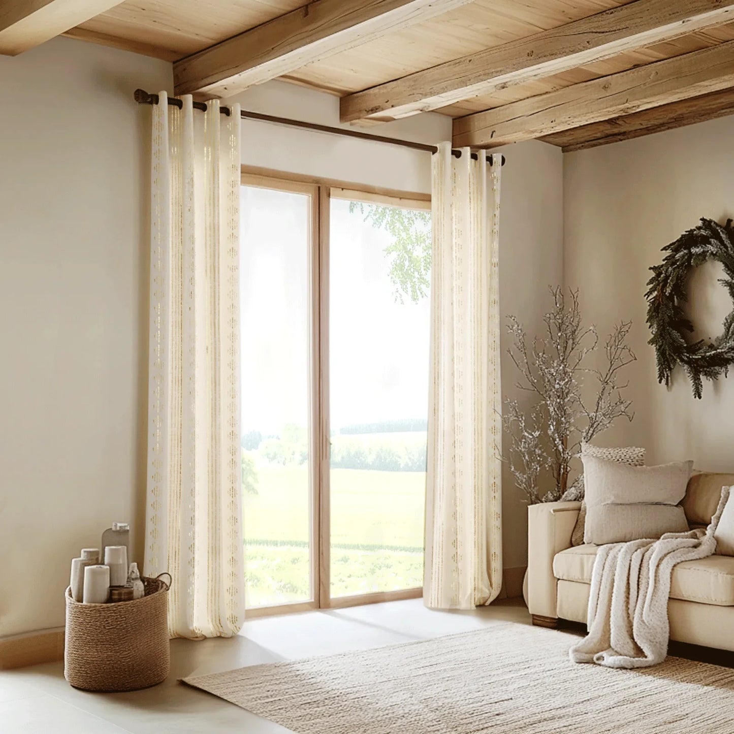 Made from a lightweight linen-blend fabric, they softly filter sunlight while maintaining privacy, creating a warm and inviting atmosphere.