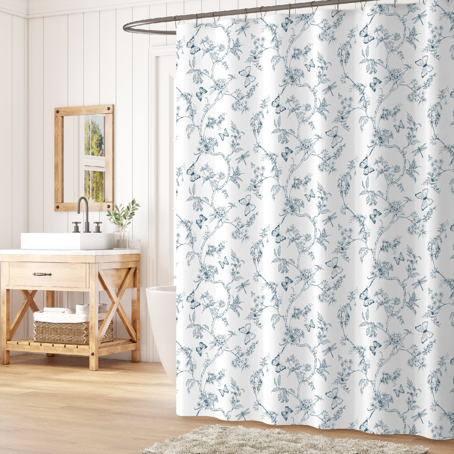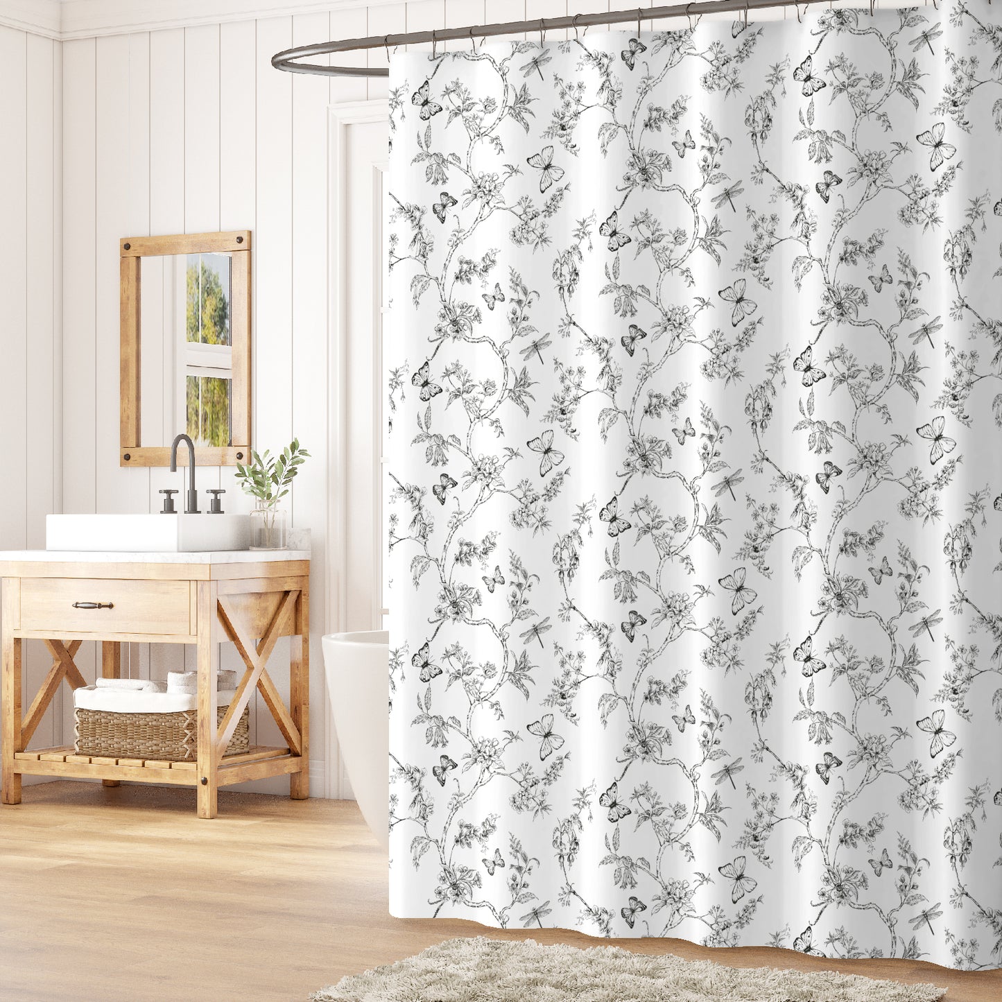 Botanical & Butterfly Dragonfly Pattern Shower Curtain
