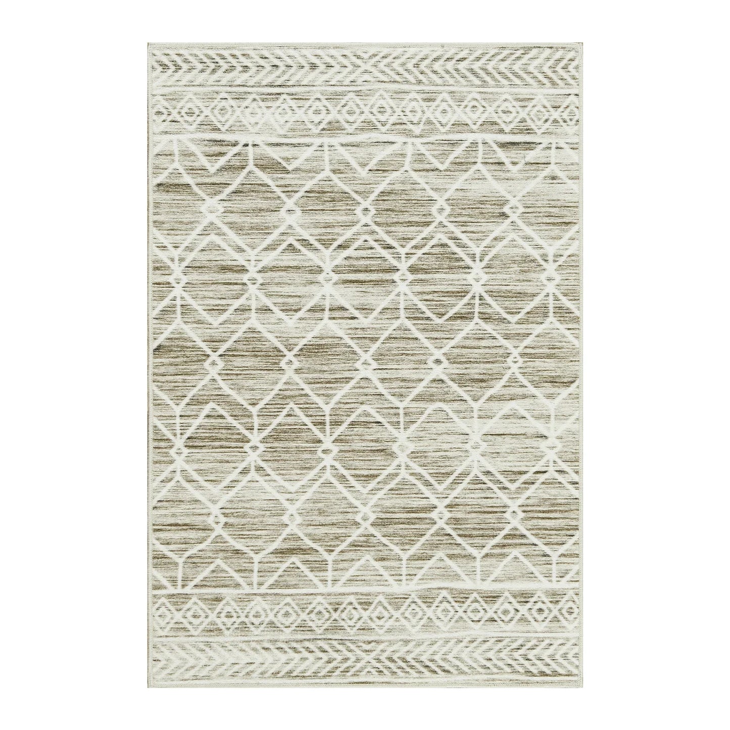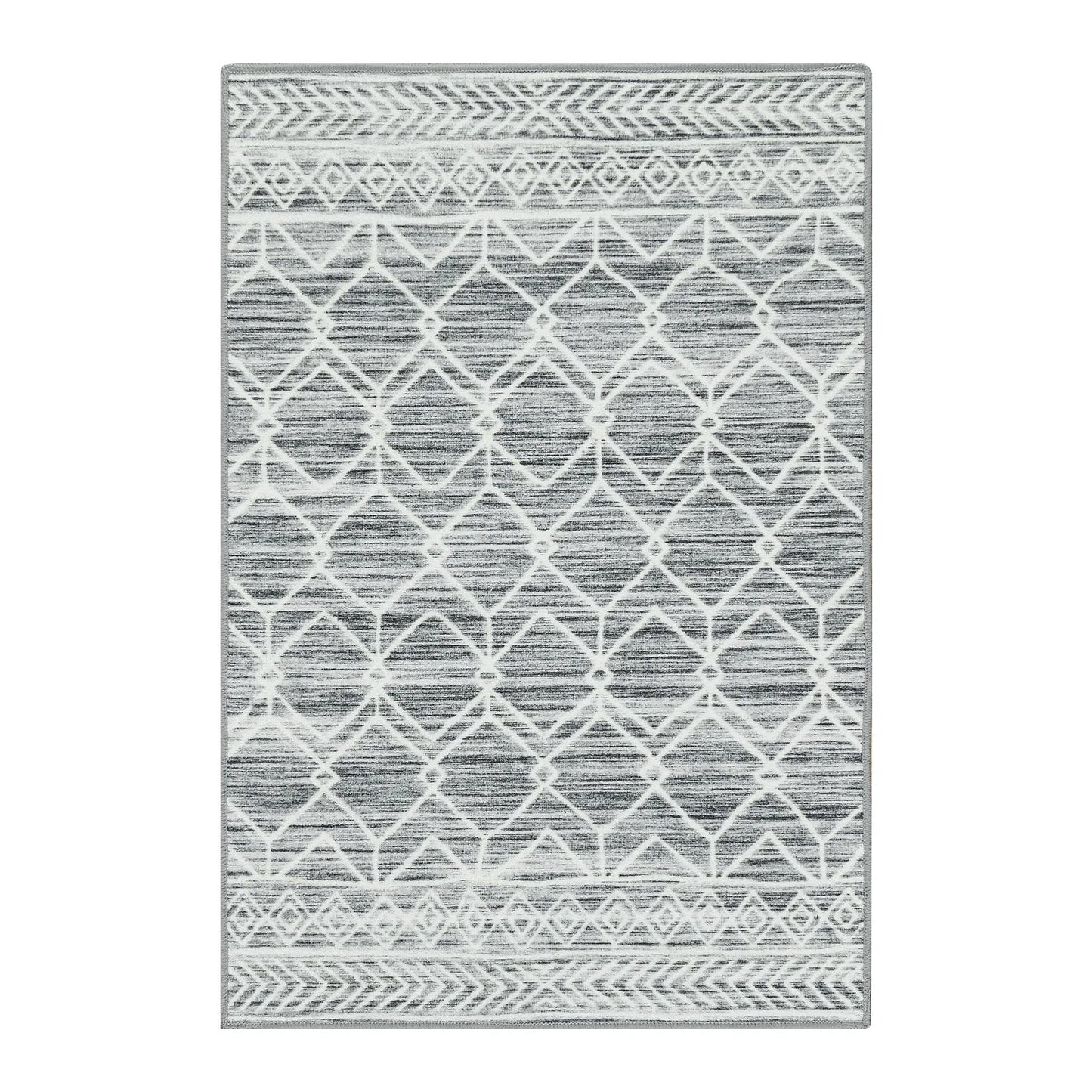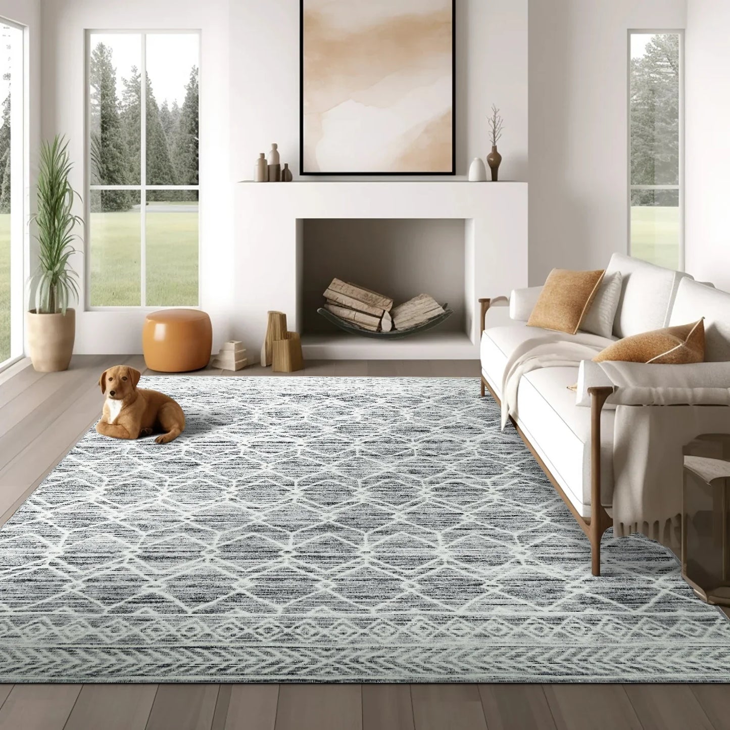 Moroccan Diamond Geometric Rug brings practical comfort and modern bohemian style to your home, inspired by Moroccan diamond geometric totem patterns rooted in traditional North African Berber design. The rug features a continuous diamond lattice formed by clean geometric lines with subtle dotted accents, symbolizing protection and connection. Symmetrical zigzag and geometric borders at the top and bottom echo the central pattern, creating a balanced and layered visual effect. A textured mixed-tone base enhances depth and contrast, offering a refined ethnic character without feeling heavy, making it easy to blend into modern, Nordic, wabi-sabi, or bohemian interiors.