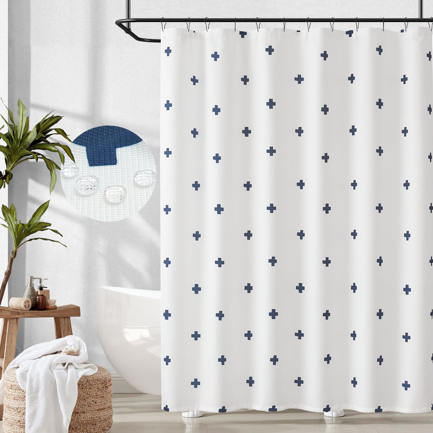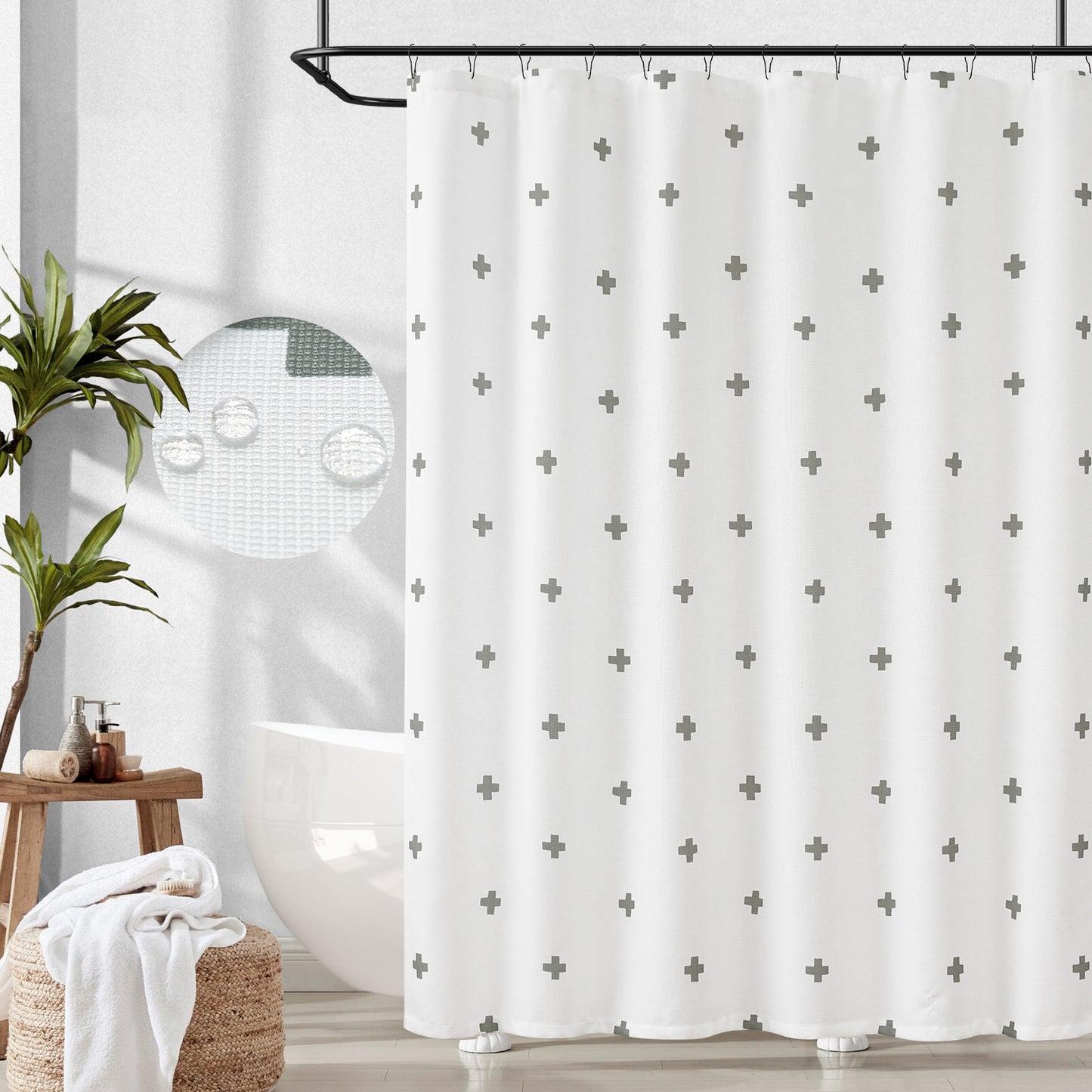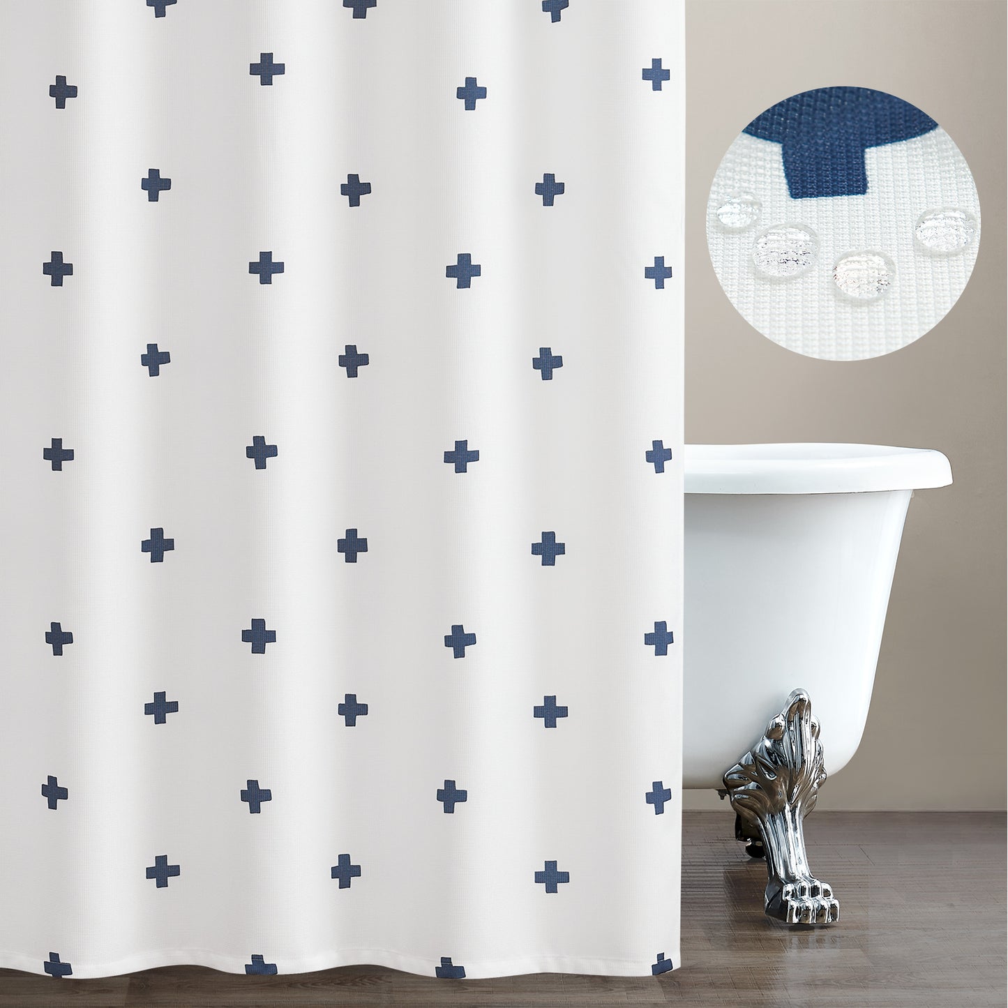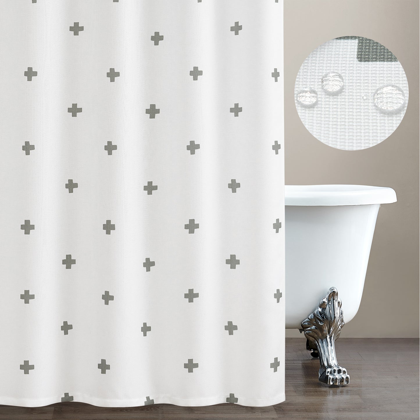 Contemporary Geo Look: Featuring a clean cross-inspired motif, this shower curtain brings a fresh modern vibe to your bathroom and helps create a bright, welcoming environment.