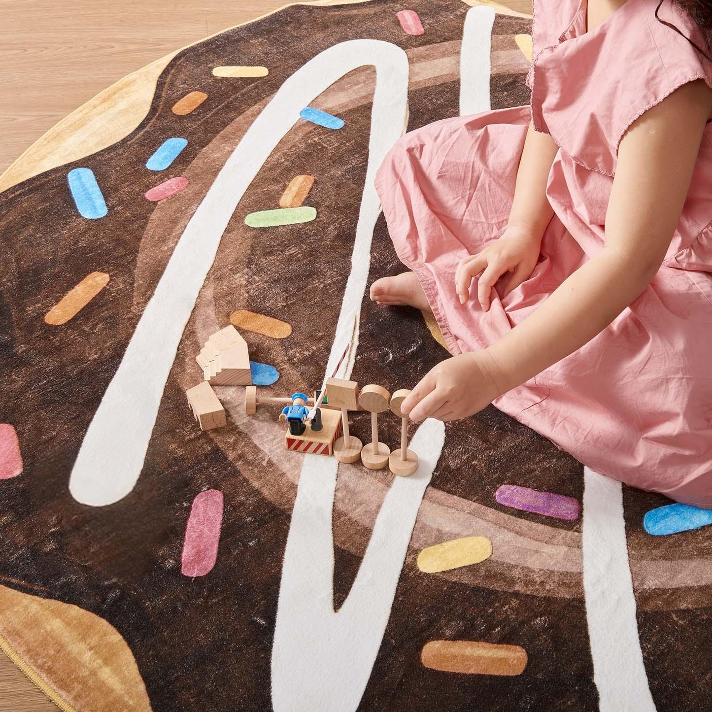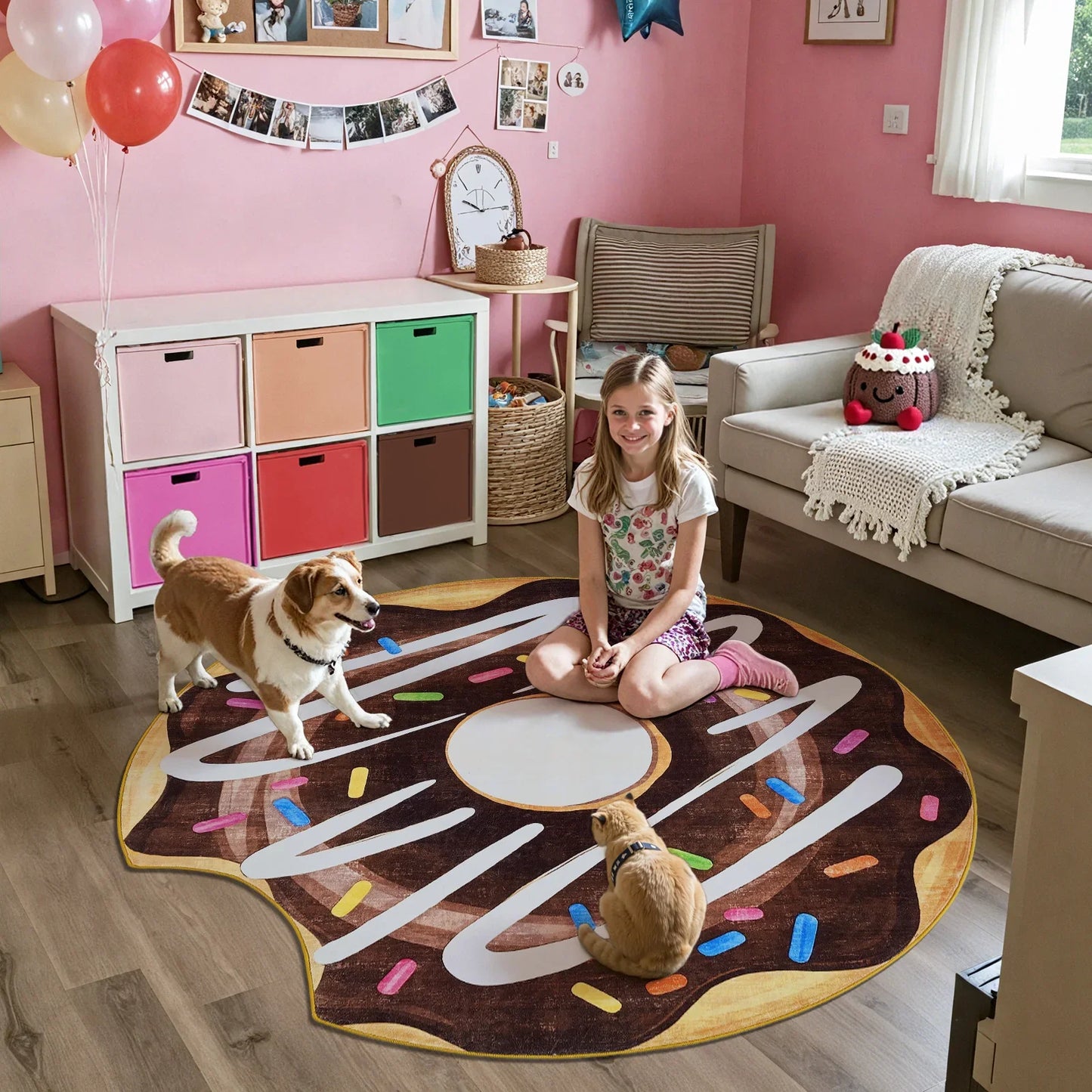 Easy to Clean & Durable: Life happens—kids, pets, and snacks can create messes. This strawberry donut rug makes cleanup simple. Wipe small spills quickly or toss it in the washing machine for a fresh, clean look. Built to last with low-maintenance care.