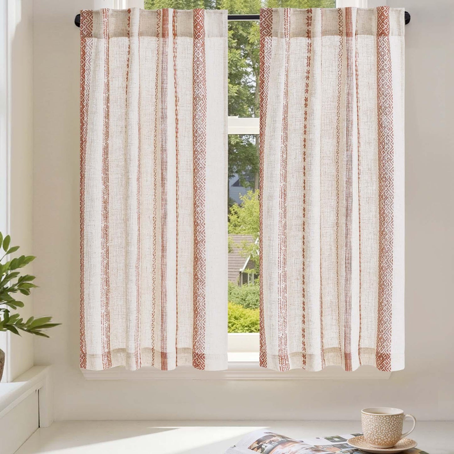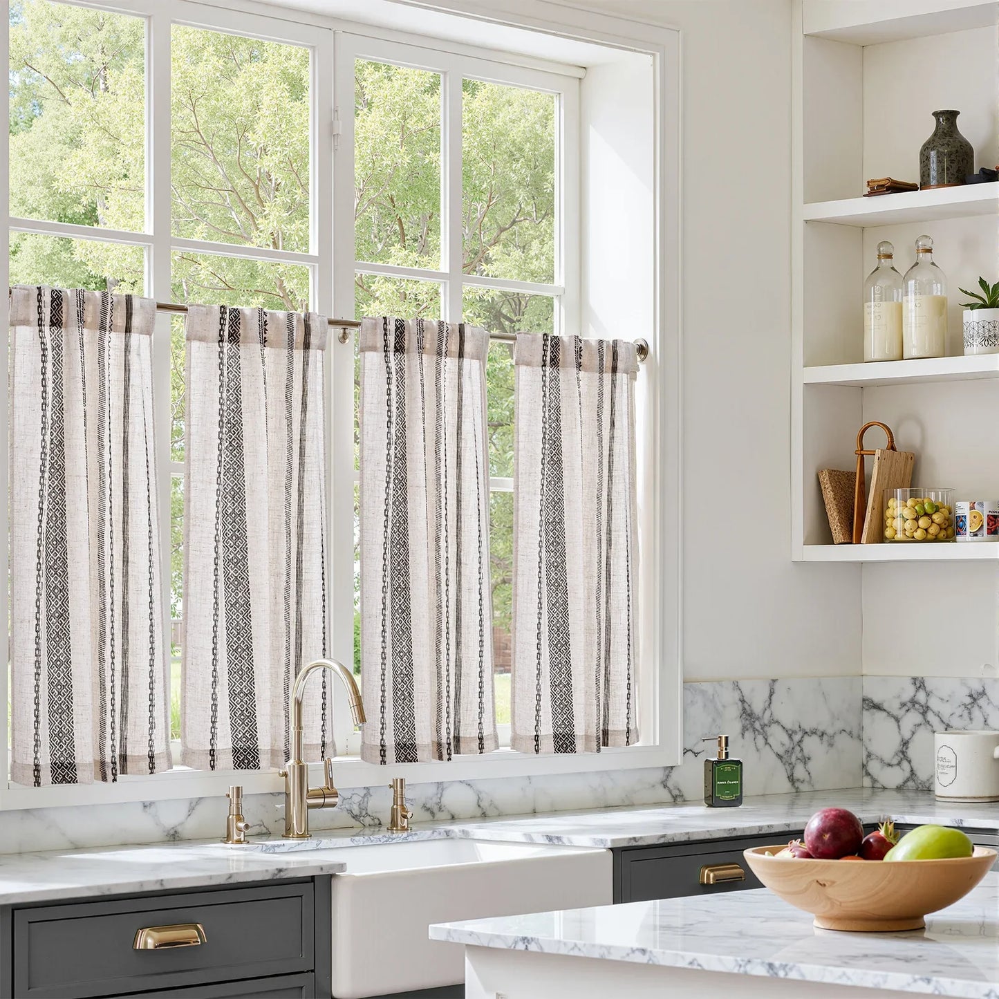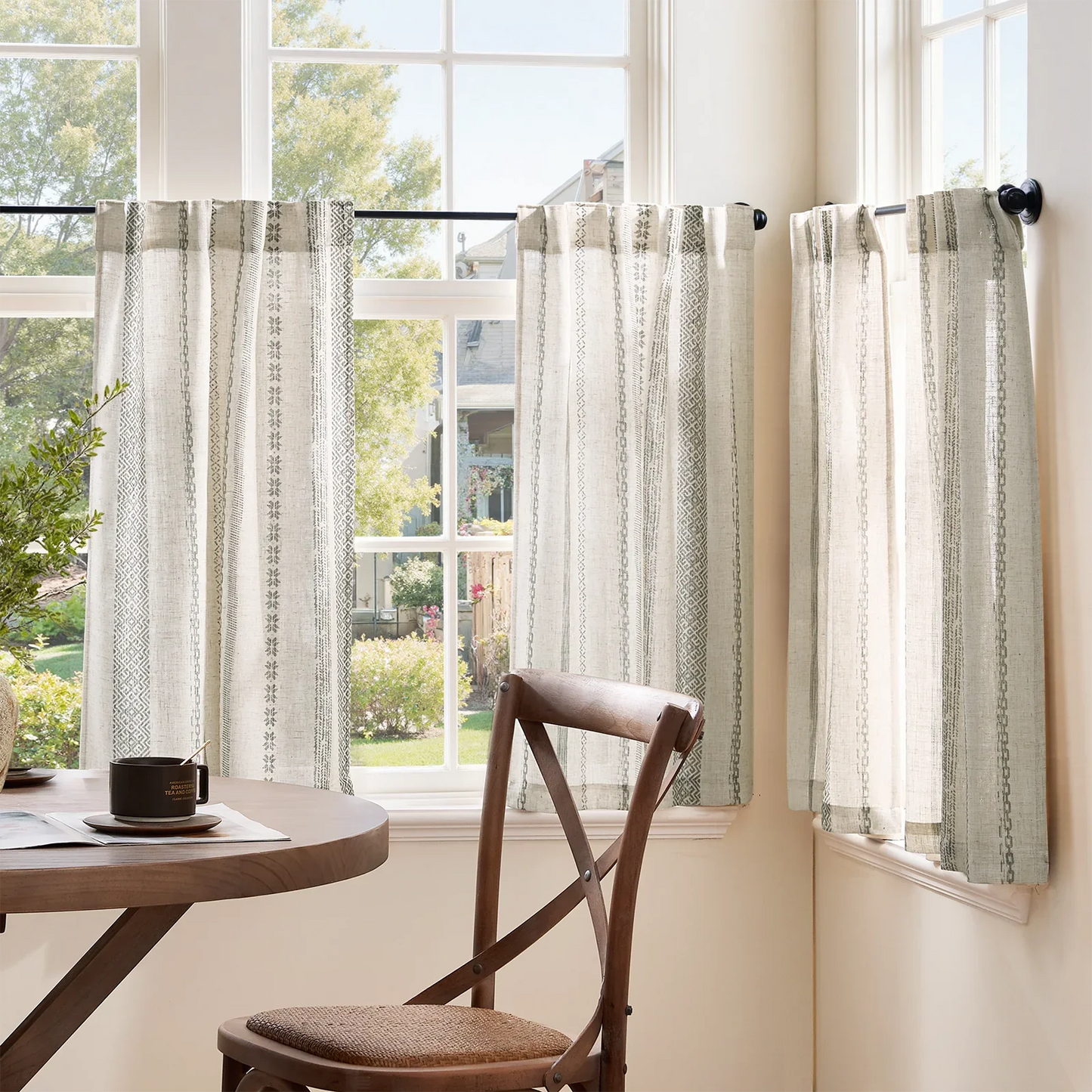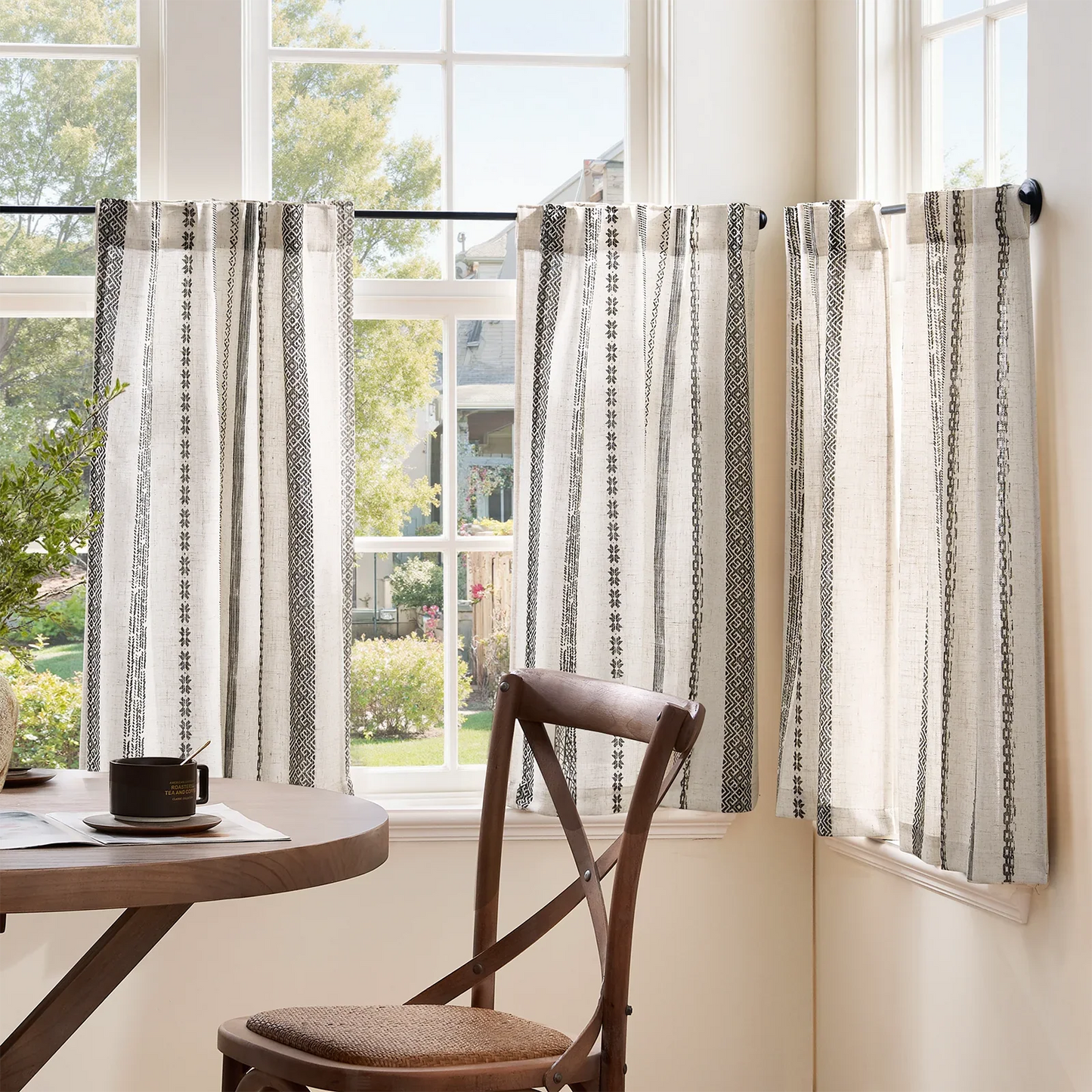 Boho Geometric Stripe Embroidered Kitchen Curtains