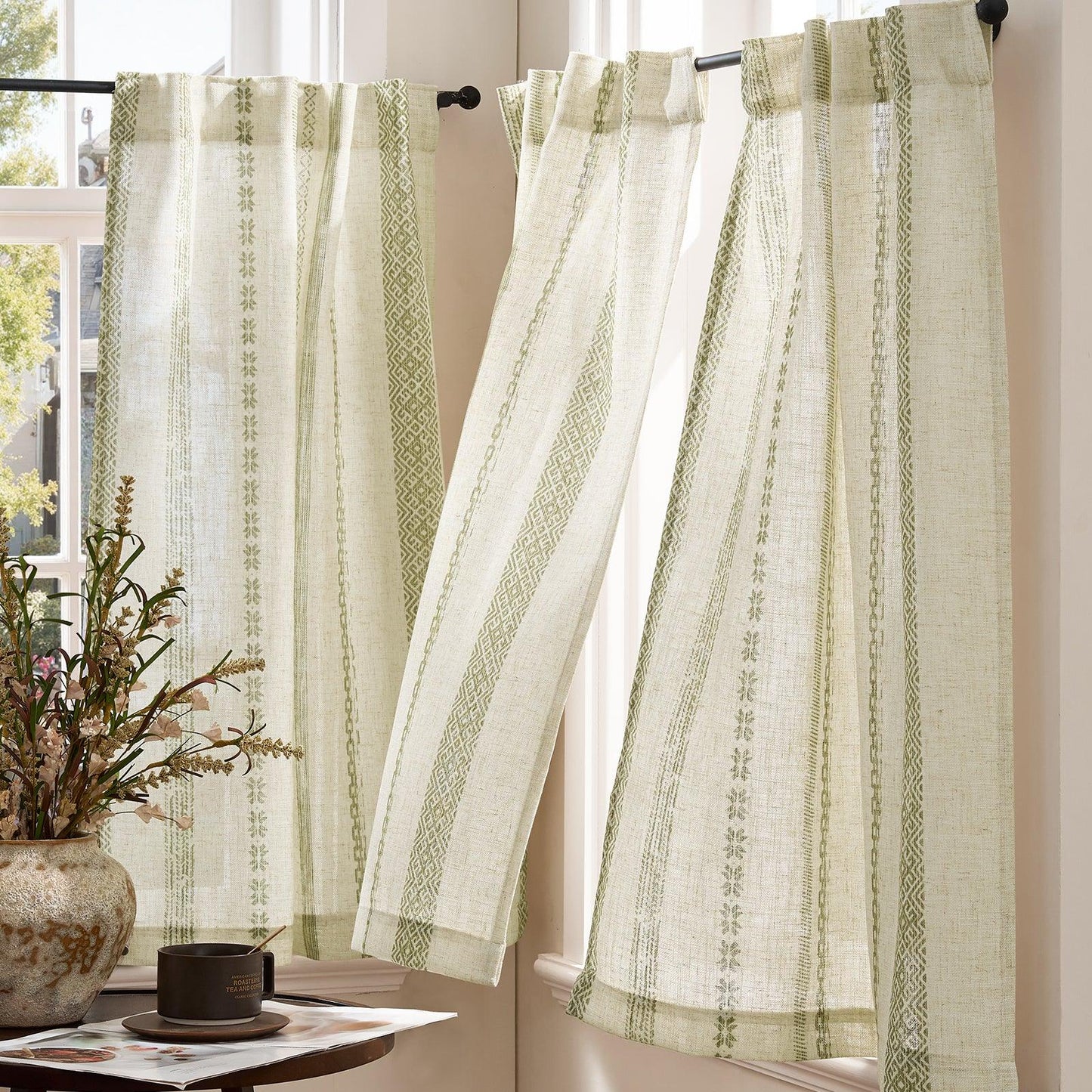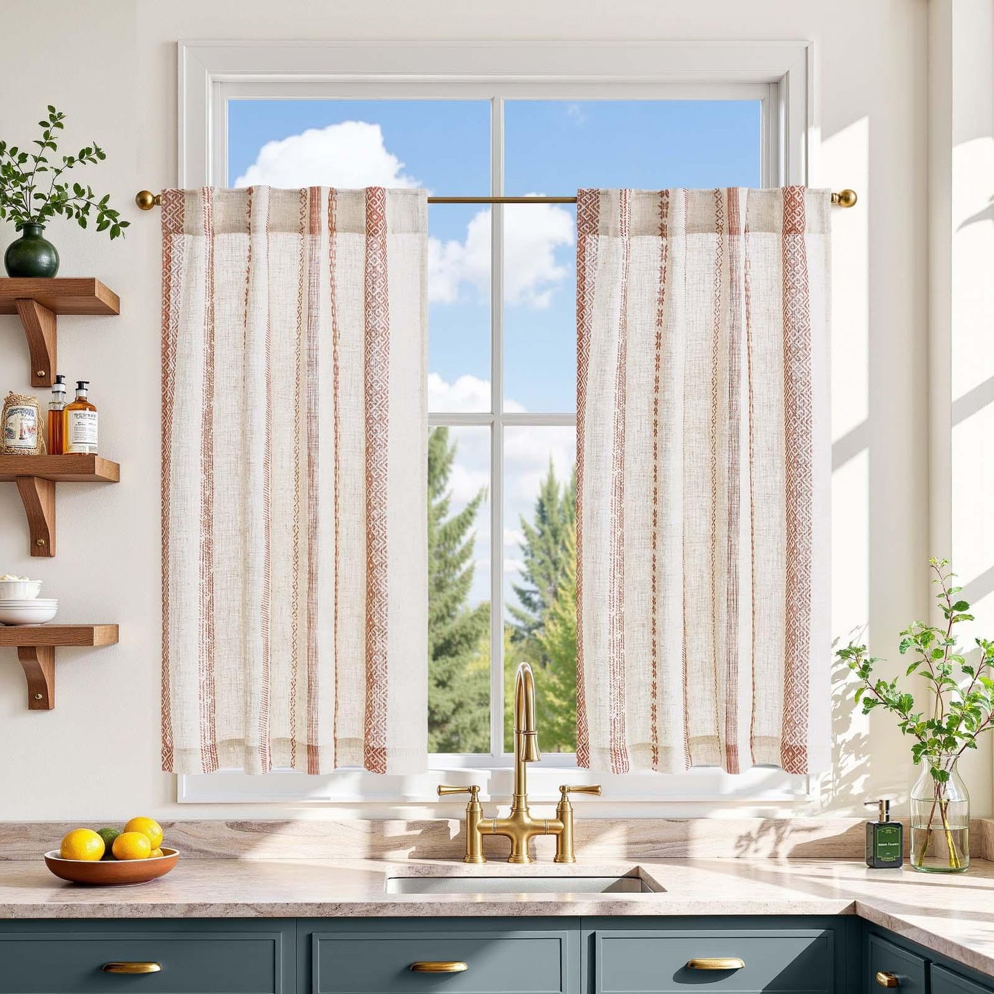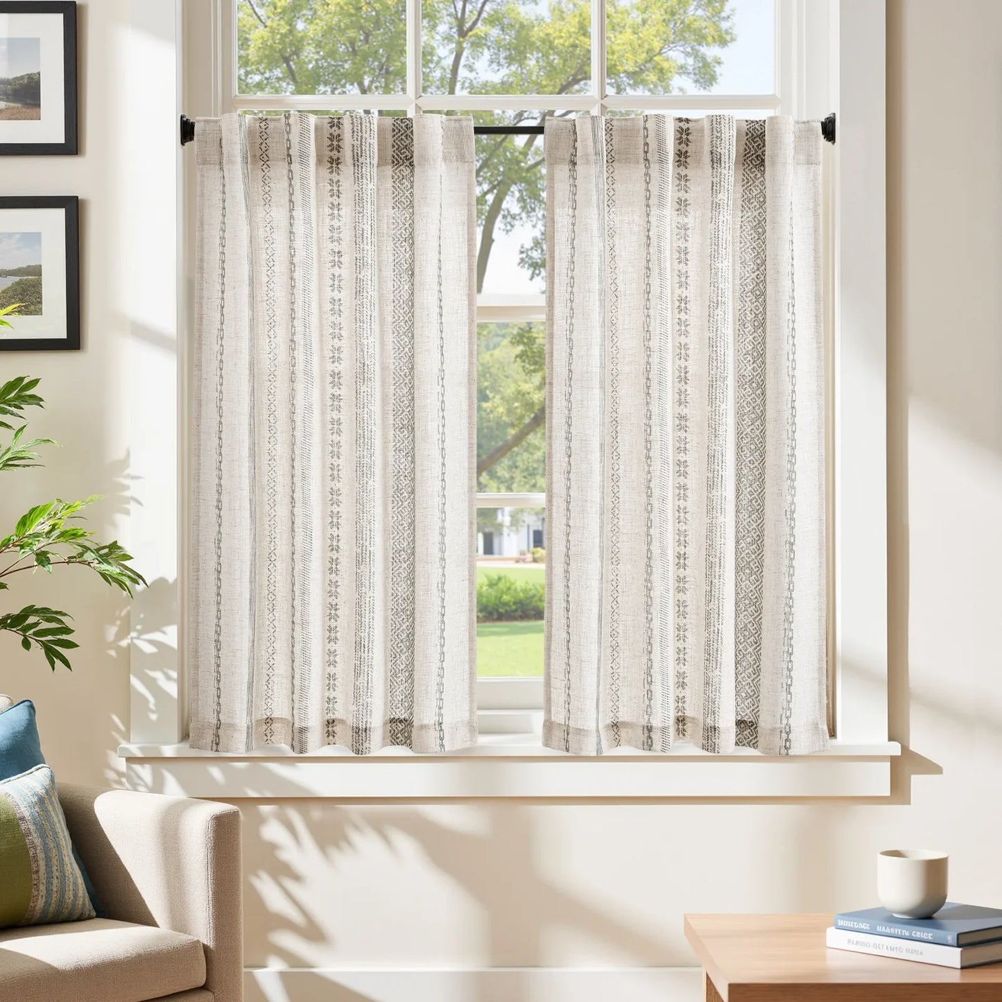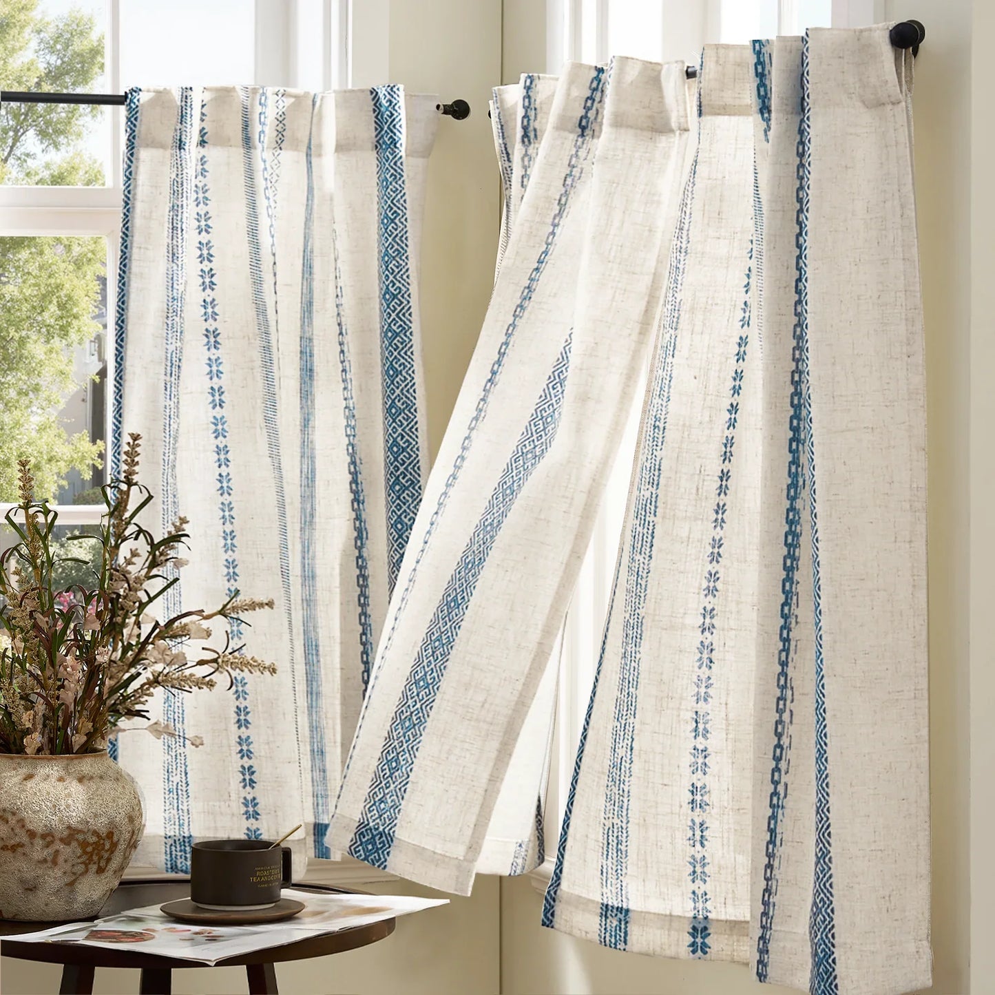 Boho Geometric Stripe Embroidered Kitchen Curtains