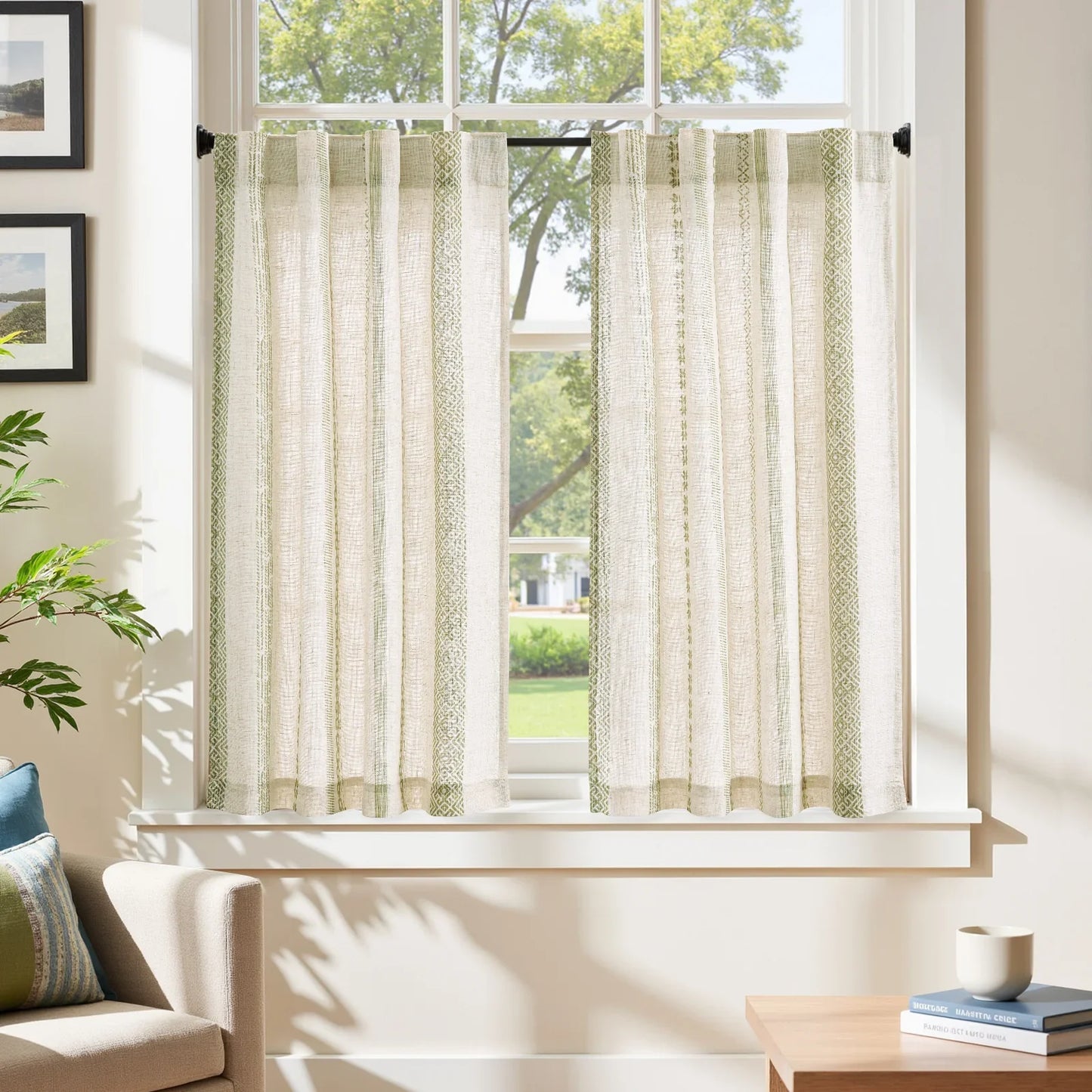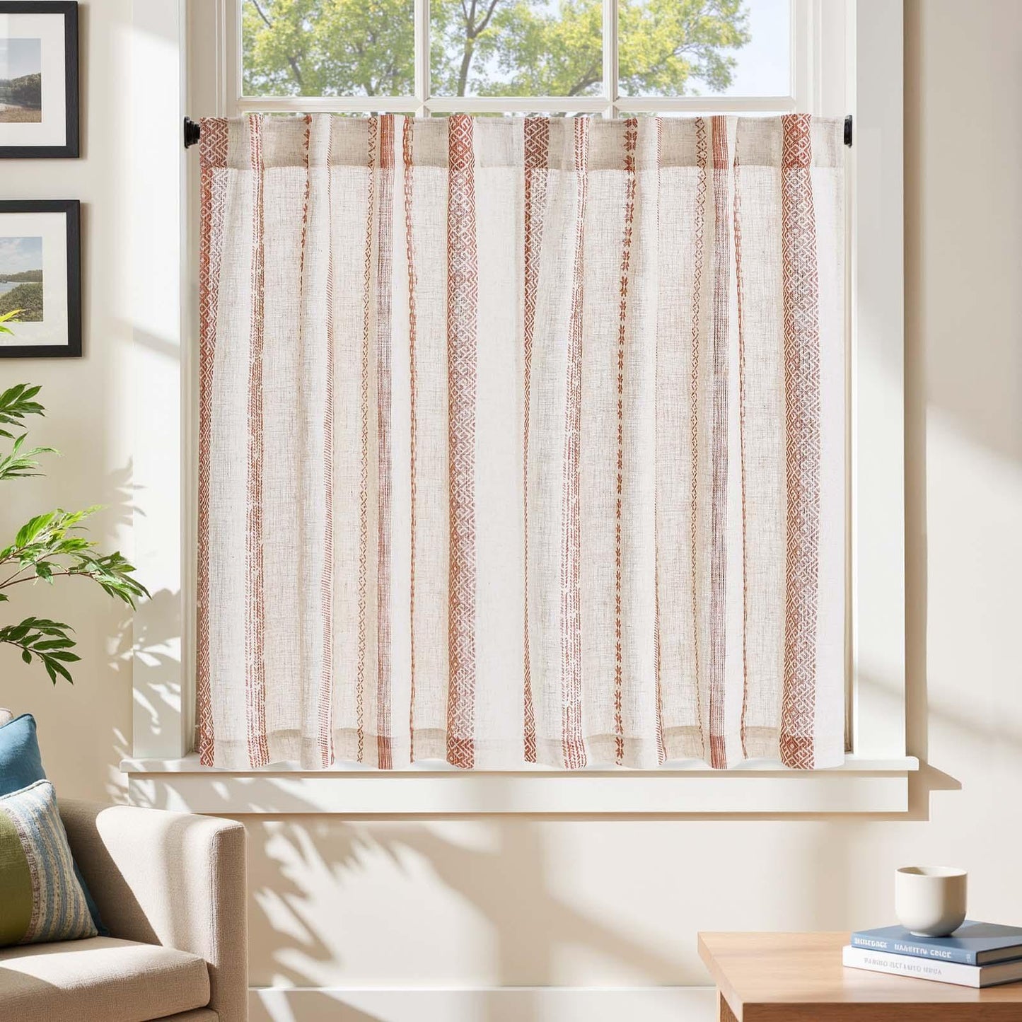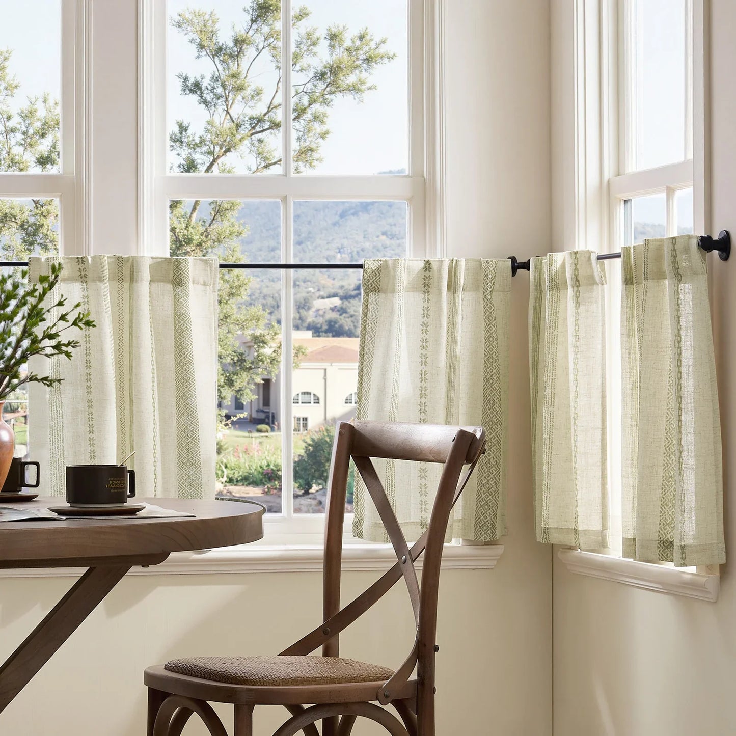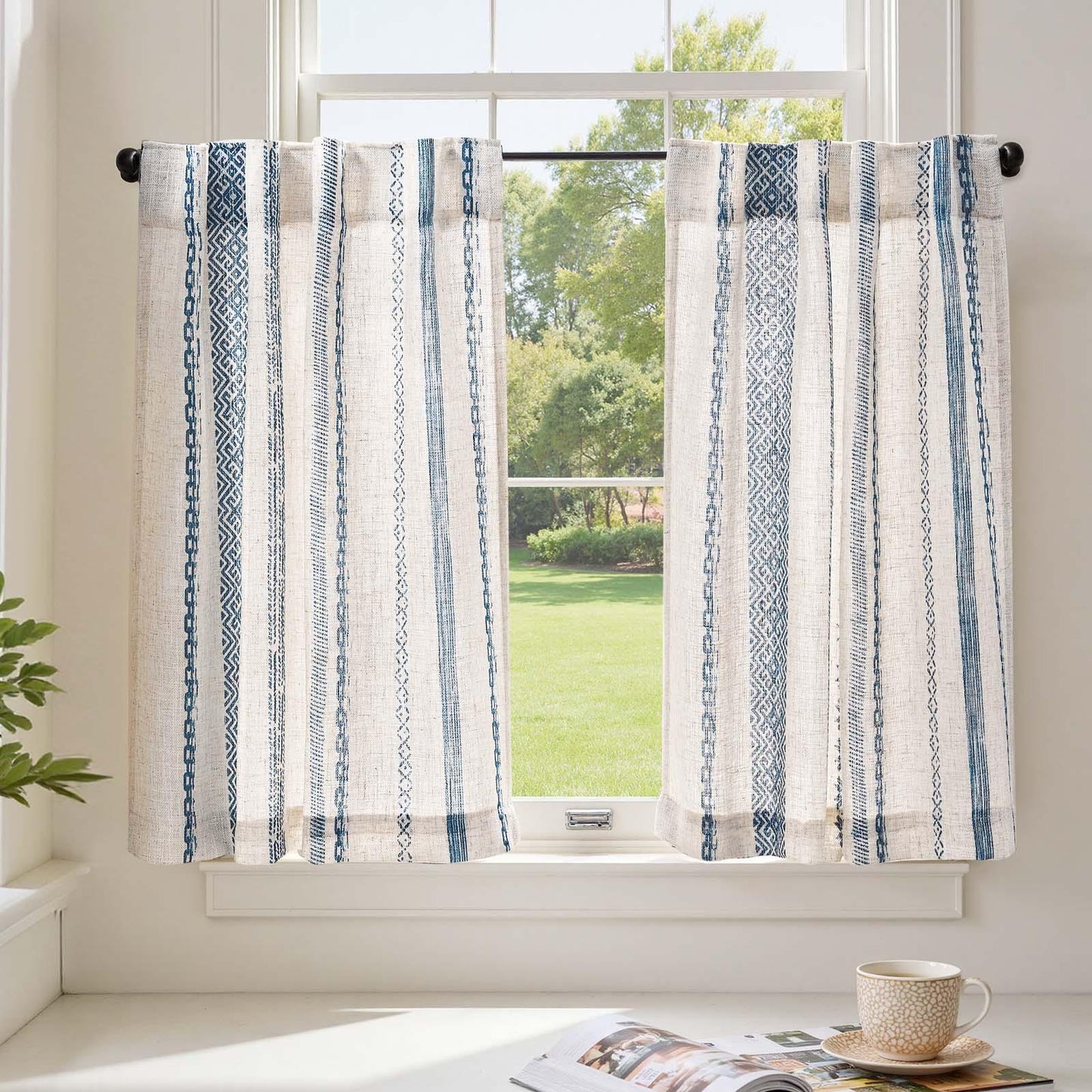 Boho Geometric Stripe Embroidered Kitchen Curtains