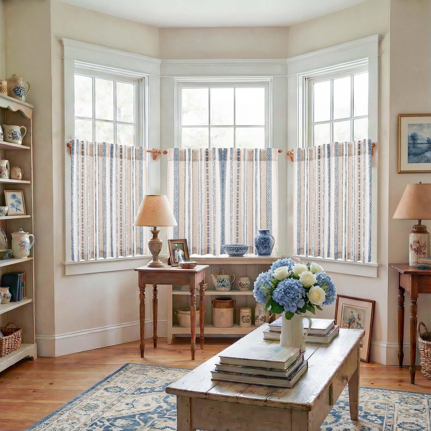 Soft Light & Privacy: Crafted from soft linen-blend fabric, these curtains gently diffuse harsh sunlight while maintaining a bright, airy feel. They provide comfortable privacy, making them ideal for kitchen windows and cozy spaces.