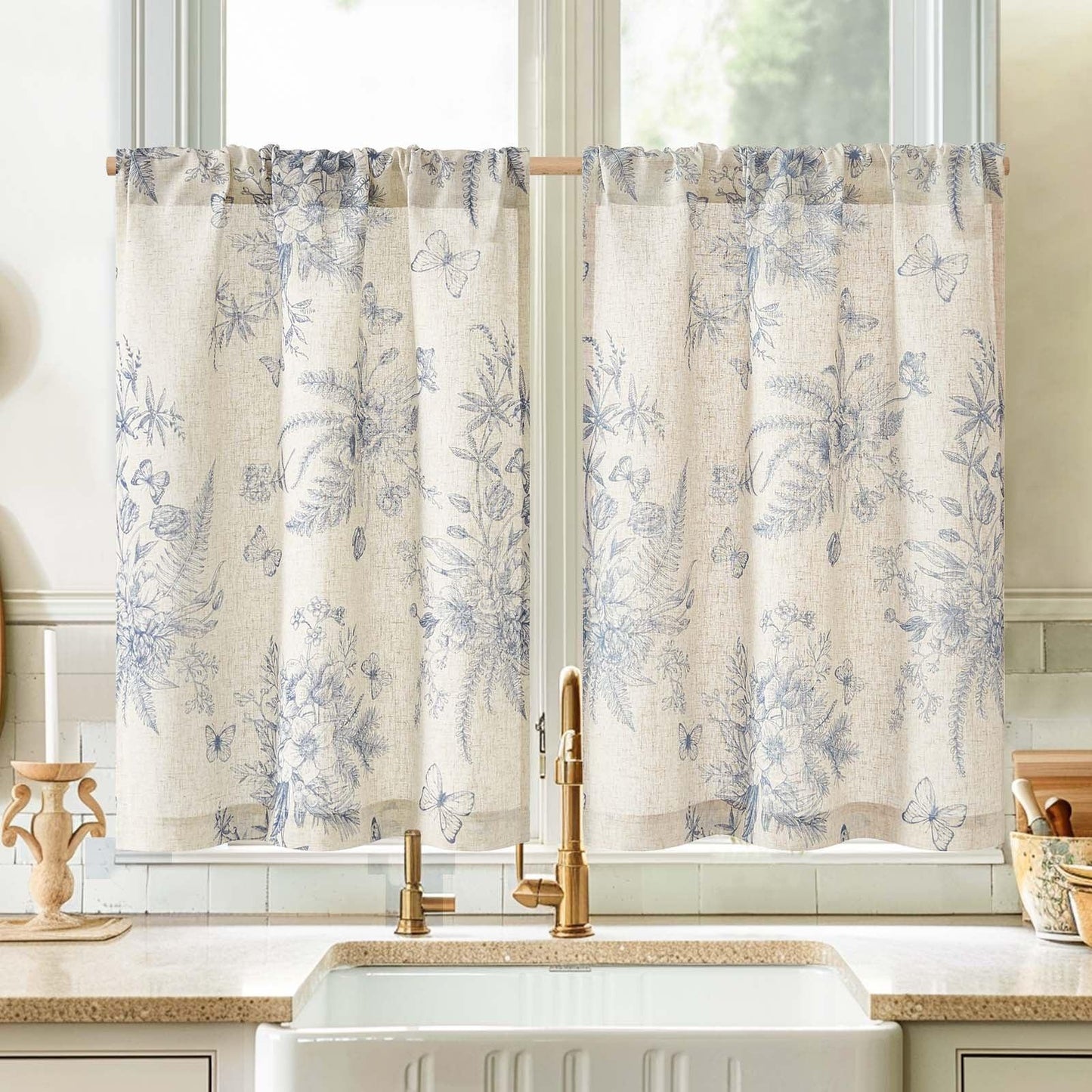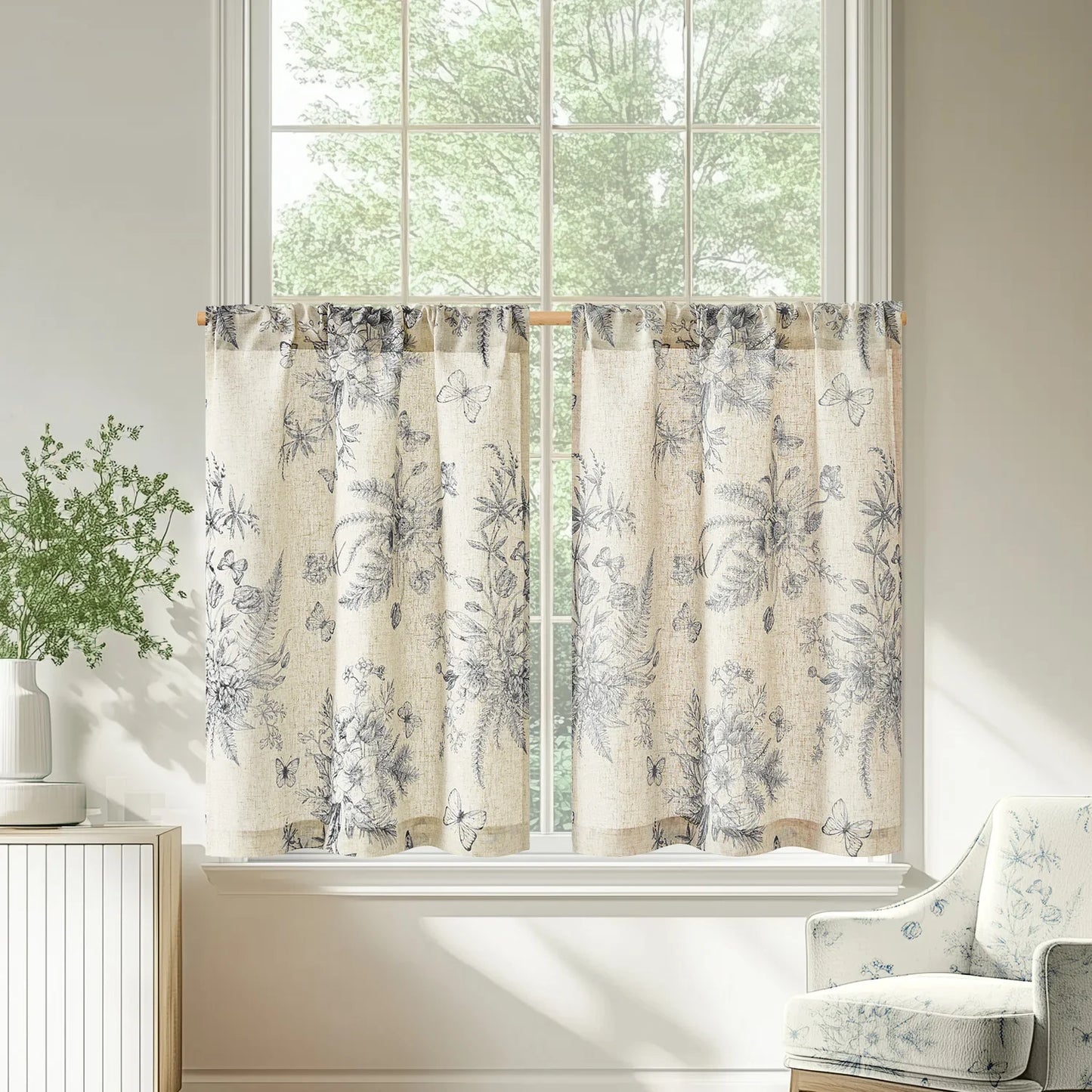 Butterfly Romance Rod Pocket Kitchen Curtains