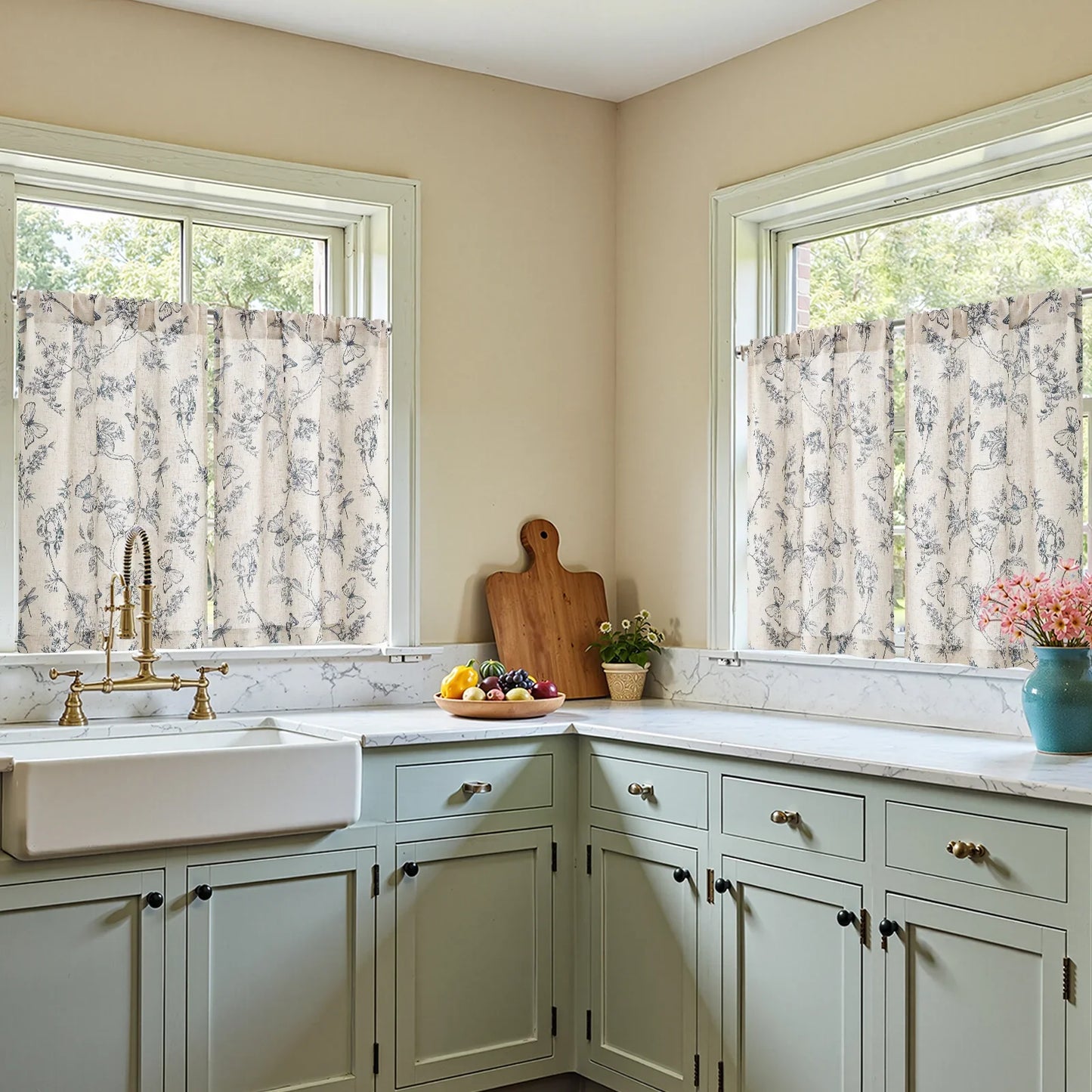 Elegant Vintage Floral Design: Featuring graceful floral motifs accented with butterflies and dragonflies on a soft neutral background, these tier curtains add a calm, garden-inspired charm to your space. The vintage look pairs beautifully with farmhouse, cottage, and rustic décor styles.