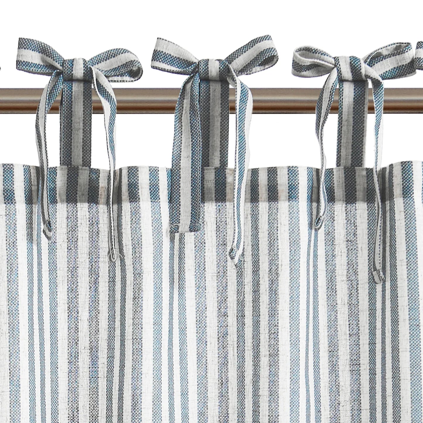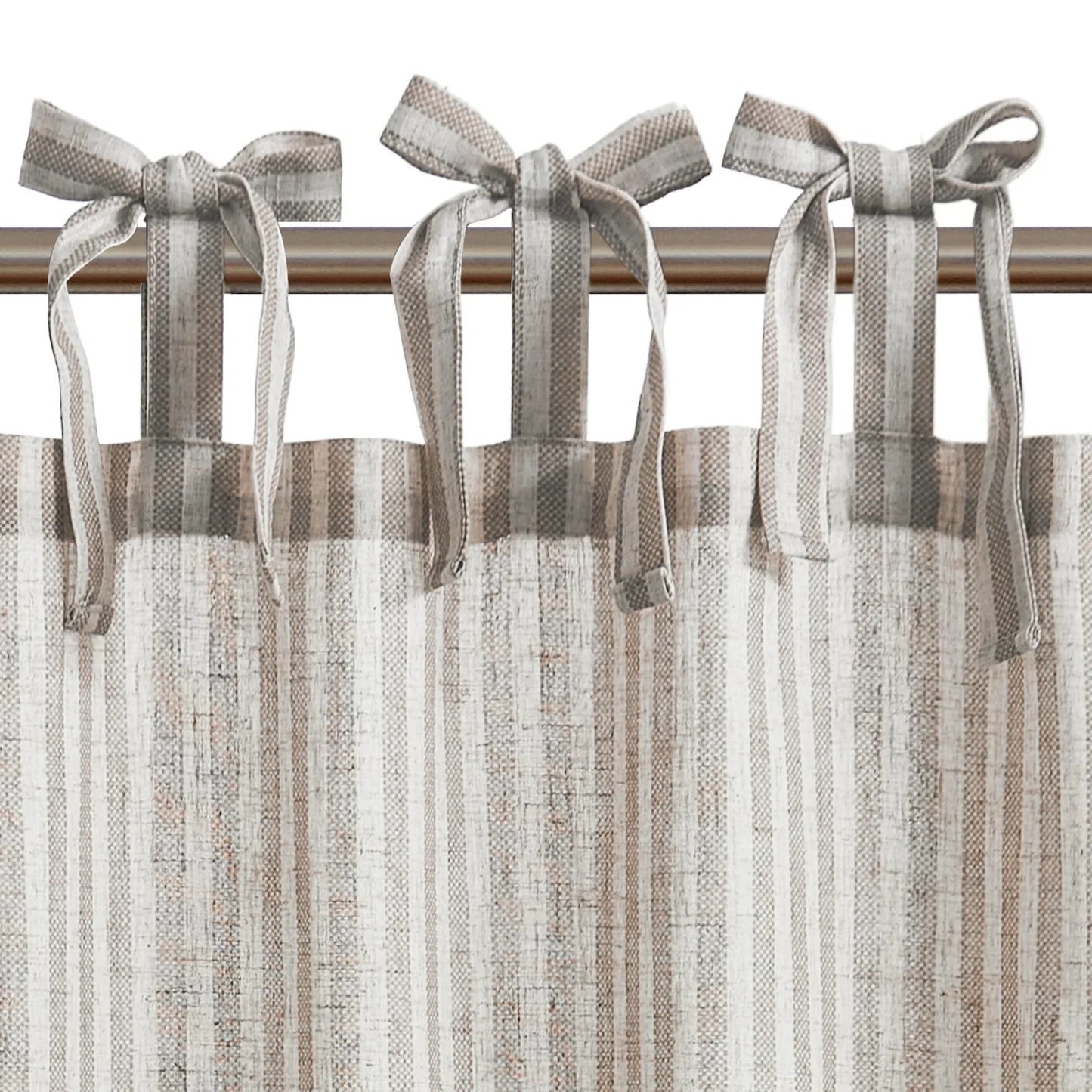 Designed with a stylish DIY tie-top header, these panels work well with most standard or tension rods. They glide smoothly and bring a touch of charm to any small window. For a fuller, more gathered appearance, we recommend choosing curtain widths that total 1.5 to 2 times your window width.