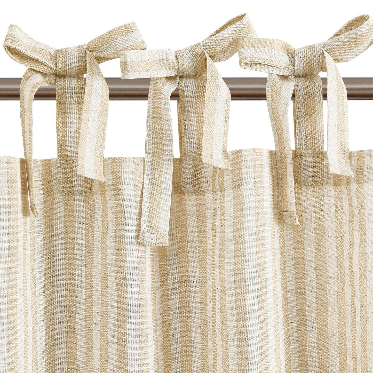 Evenly spaced vertical stripes create a clean and structured look while subtly drawing the eye upward. The natural linen-like texture and soft drape add quiet charm, giving your space a warm and inviting feel.