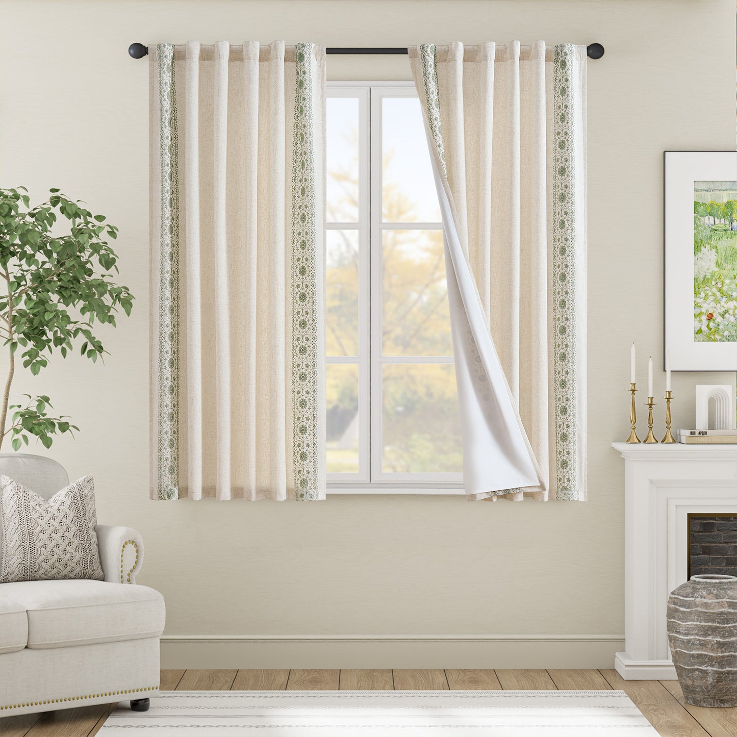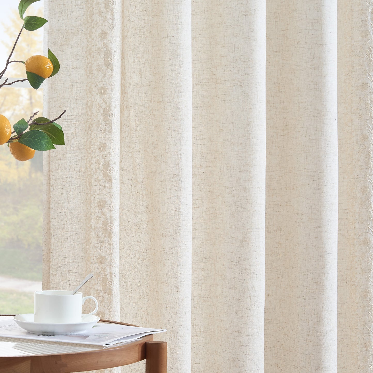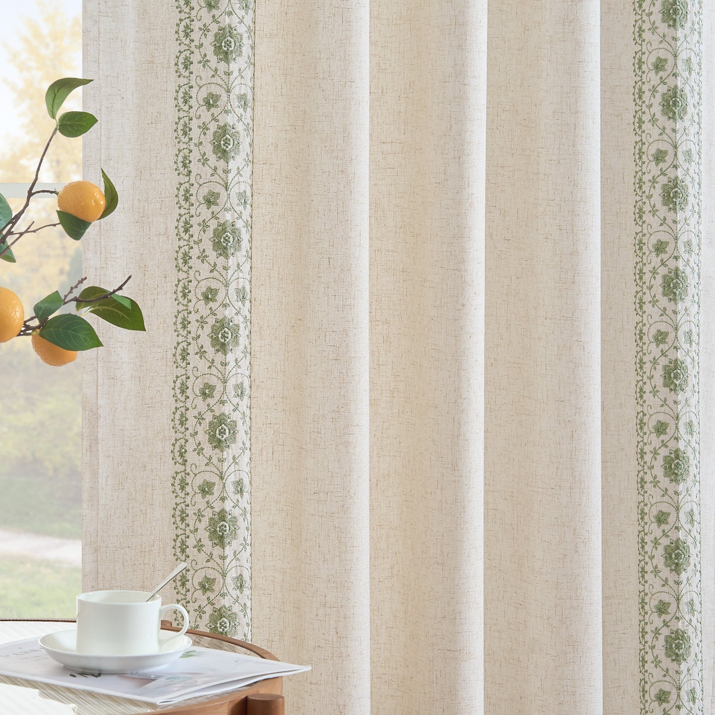 Light Filtering & Privacy: The lined linen fabric allows soft, natural light to filter through while providing privacy. The embroidered texture and soothing colors harmonize beautifully with houseplants and interior greenery.