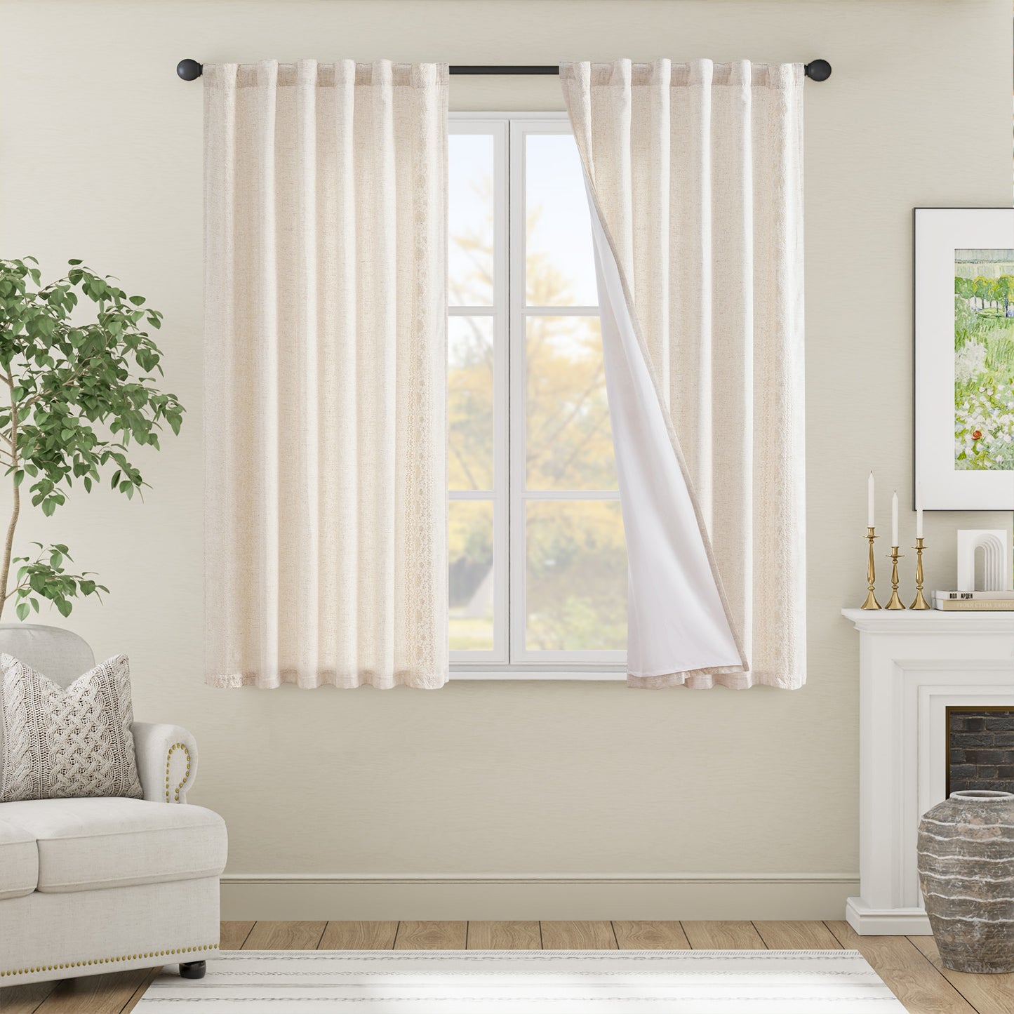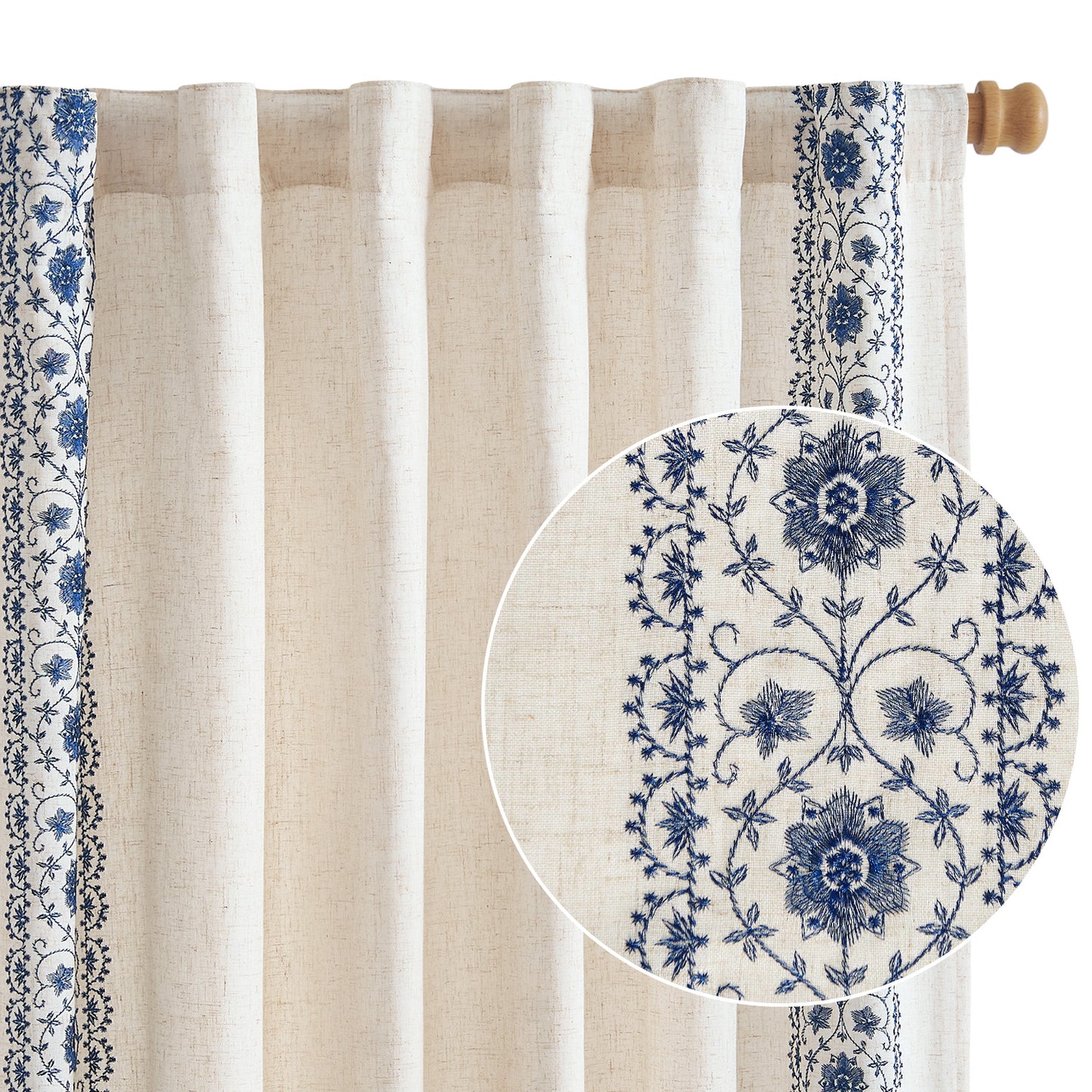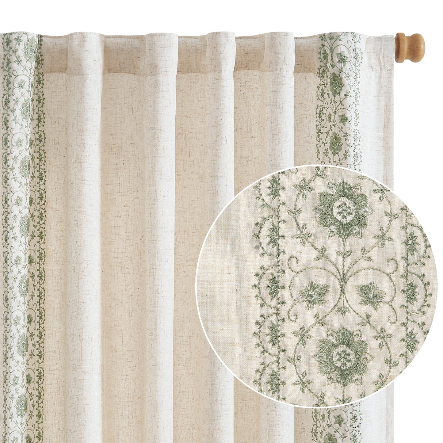 Light Filtering & Privacy: The lined linen fabric allows soft, natural light to filter through while providing privacy. The embroidered texture and soothing colors harmonize beautifully with houseplants and interior greenery.