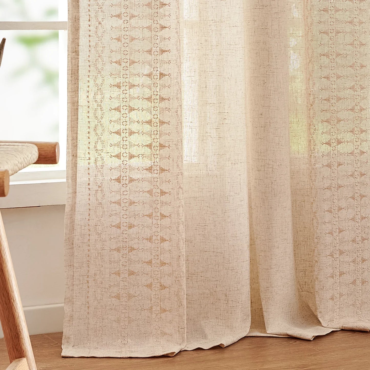 Farmhouse Boho Style: Featuring geometric patterns and intricate embroidery, these JINCHAN curtains add a unique bohemian charm and calming energy to any room, perfect even for rustic or bungalow-style spaces.
