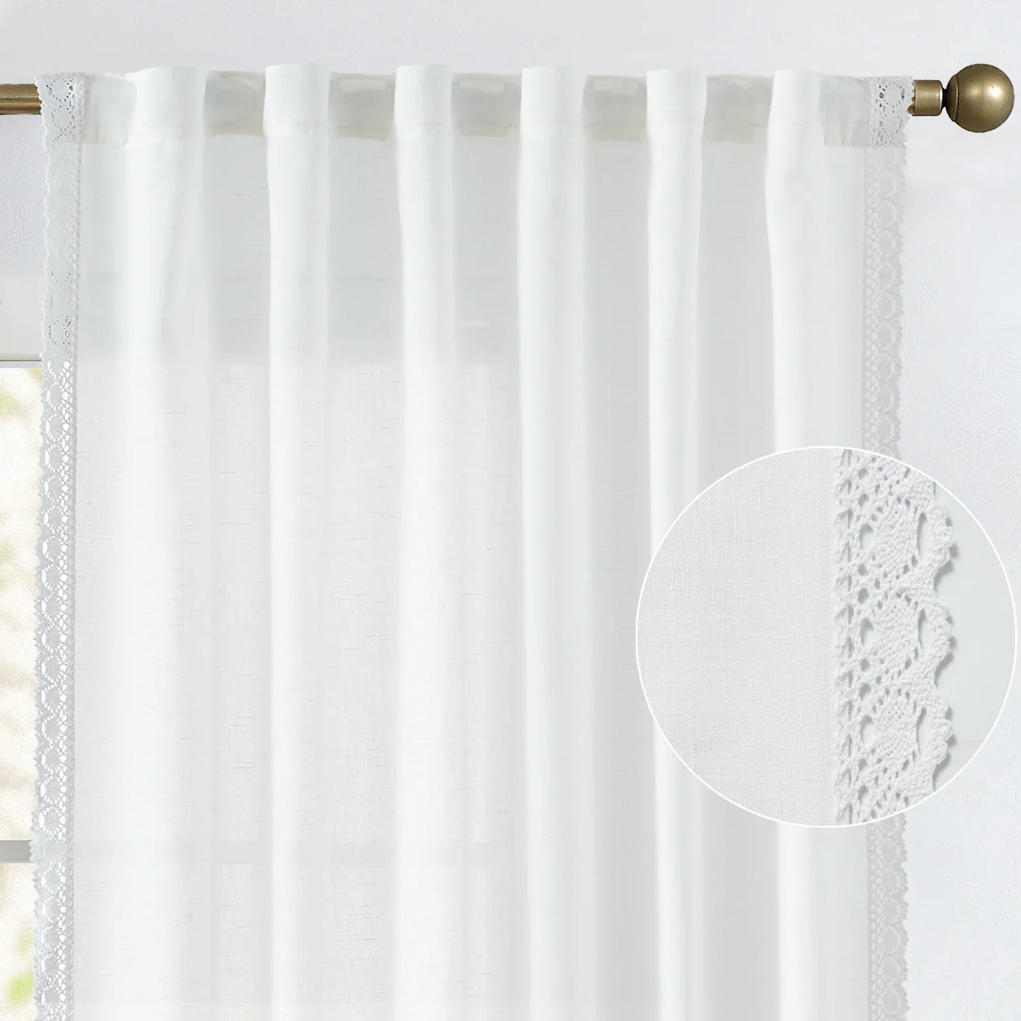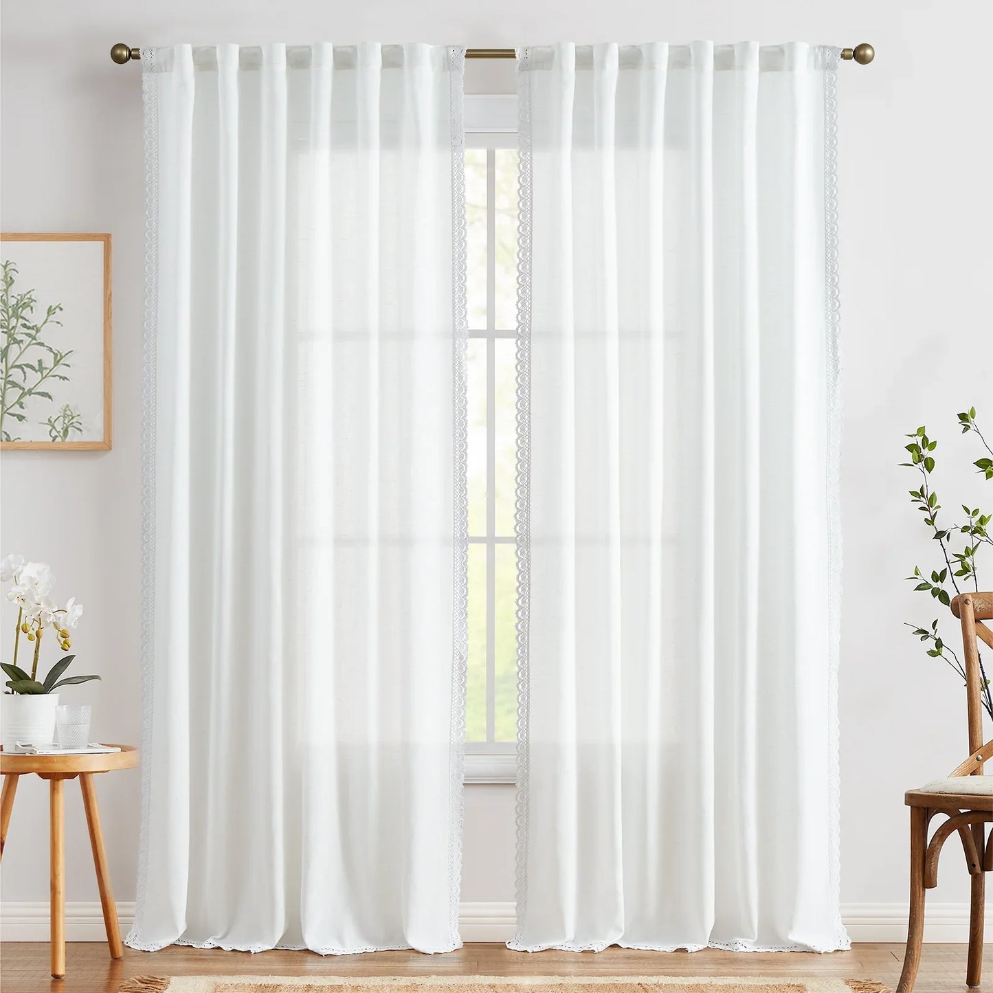 Timeless Charm: Crafted from a soft beige linen-blend fabric, these curtains feature delicate crochet lace along the edges, adding a subtle vintage appeal to any room. Each set comes with two panels for a graceful drape. Slight color or size variations (1–3cm) may occur between batches.