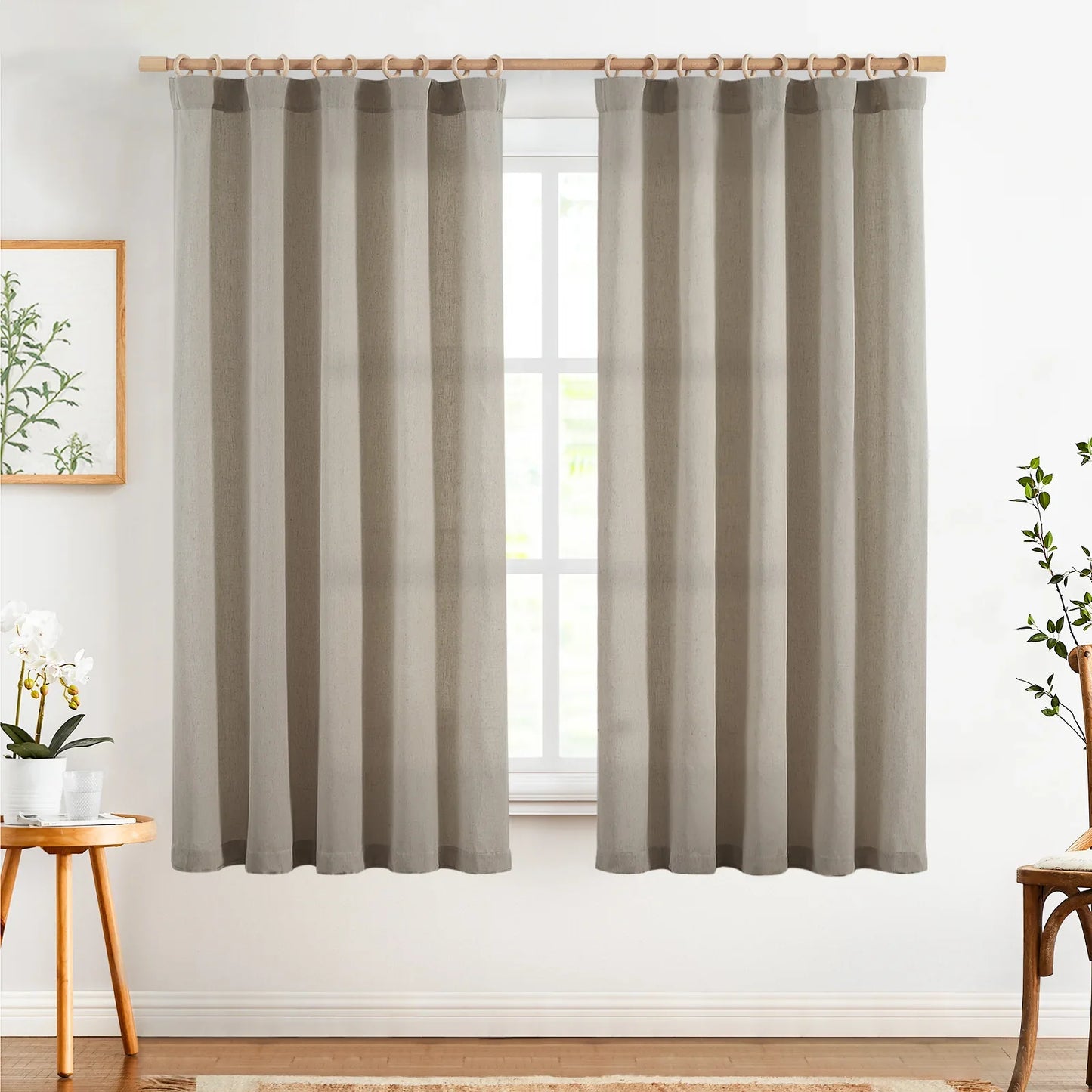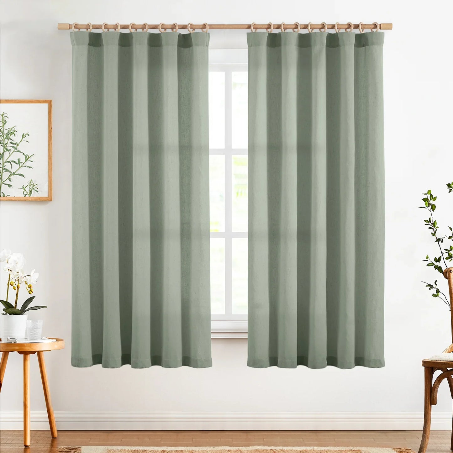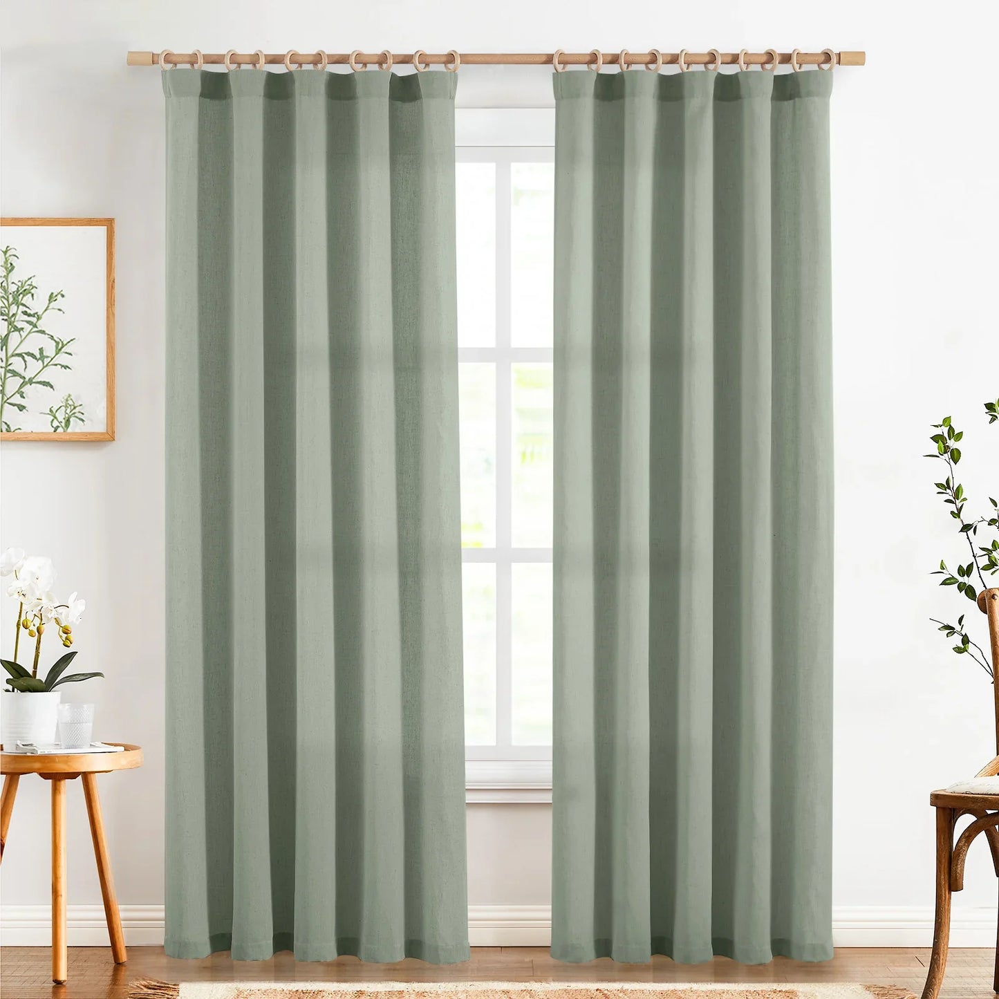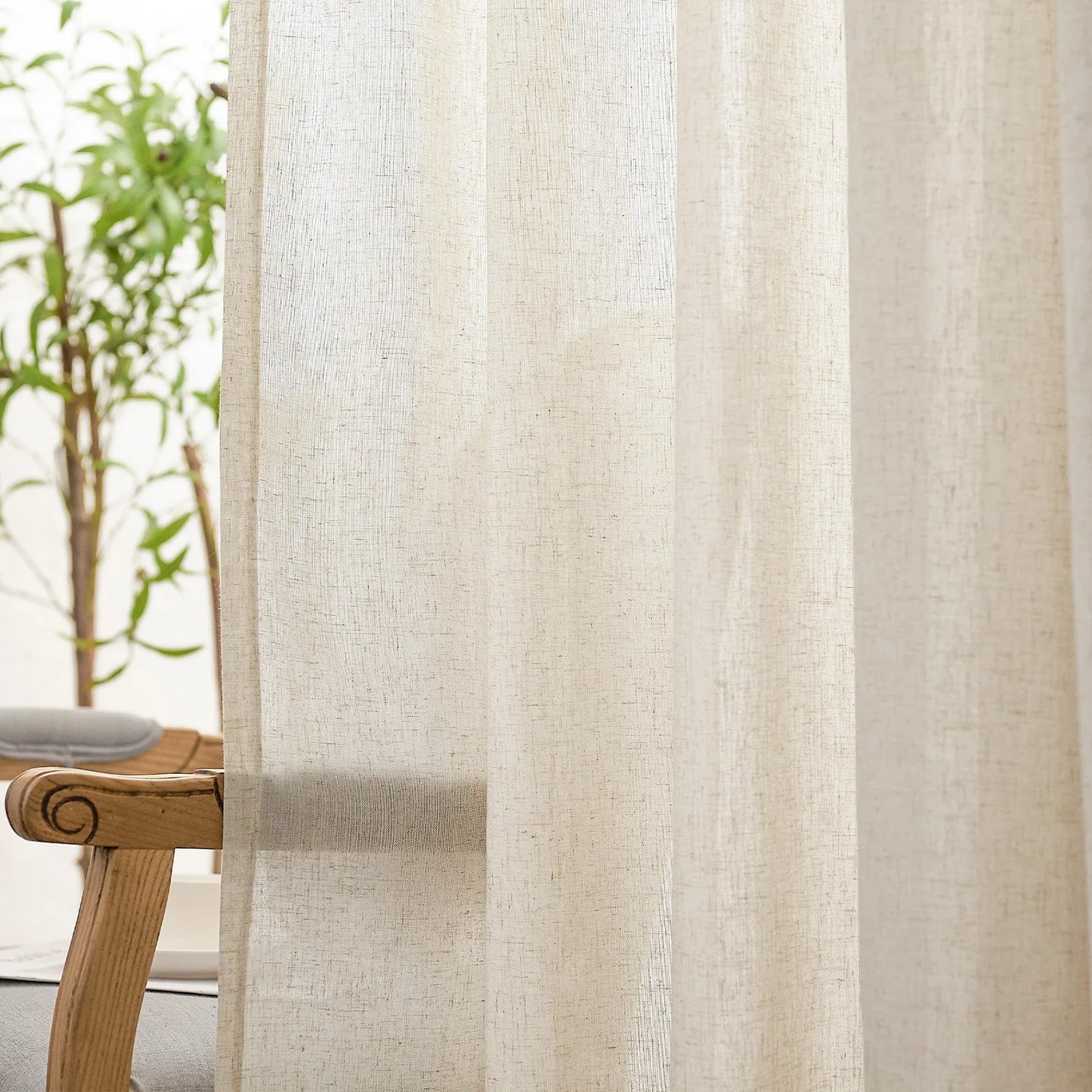 Solid Linen-Blend Flat Curtains