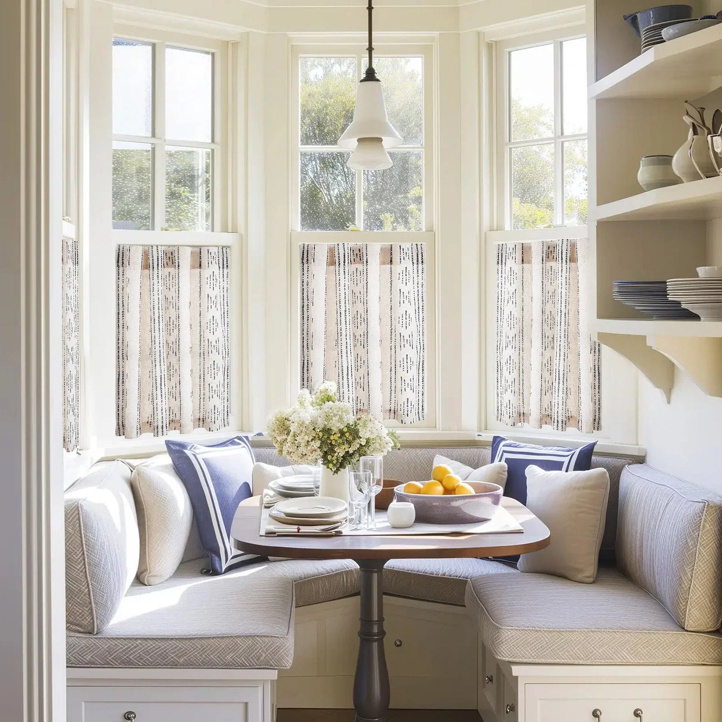 Light Filtering: These semi-sheer café curtains allow soft natural light to pass through while still providing privacy. They gently diffuse sunlight and create a cozy bohemian feel. Ideal for covering the lower half of windows or for use alone on short windows.