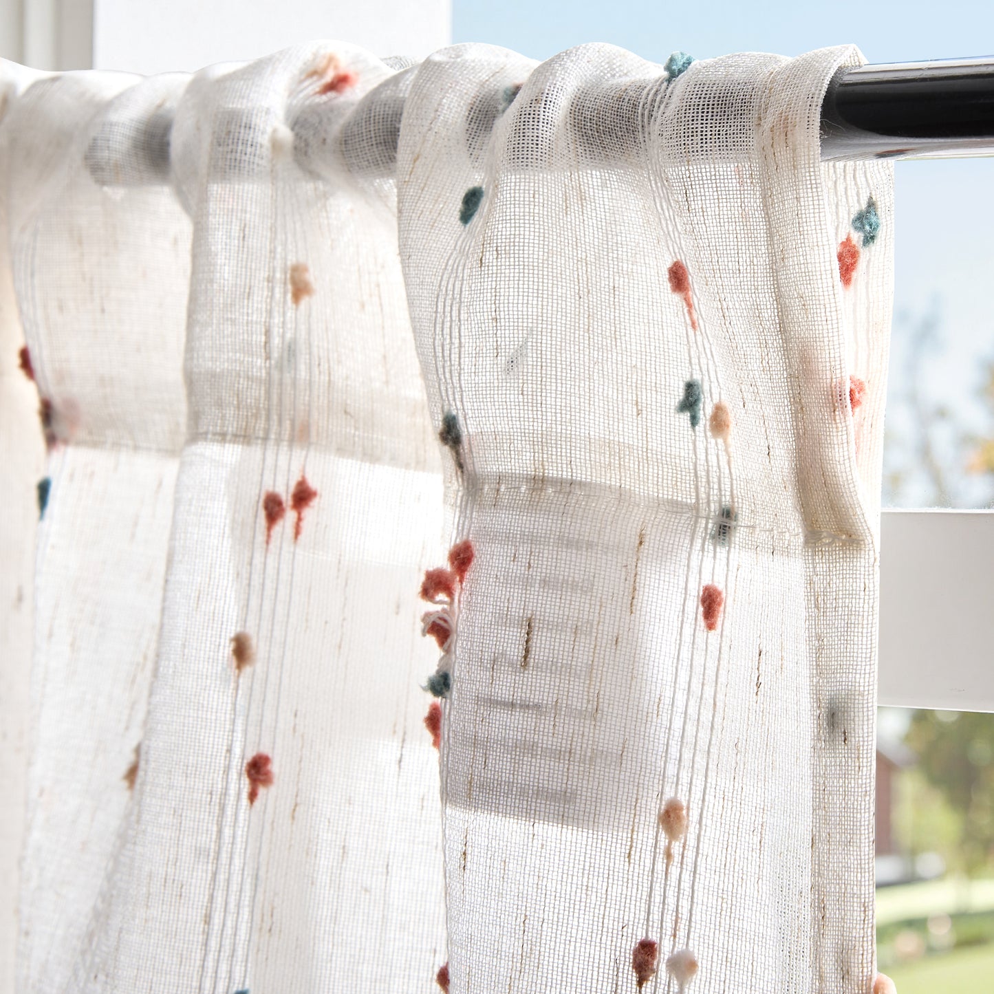 Charming Mini Pom-Pom Accents: Each panel is trimmed with small, colorful mini pom-poms that give the curtains a playful, handcrafted touch—perfect for bringing a cozy, cheerful vibe to your space.