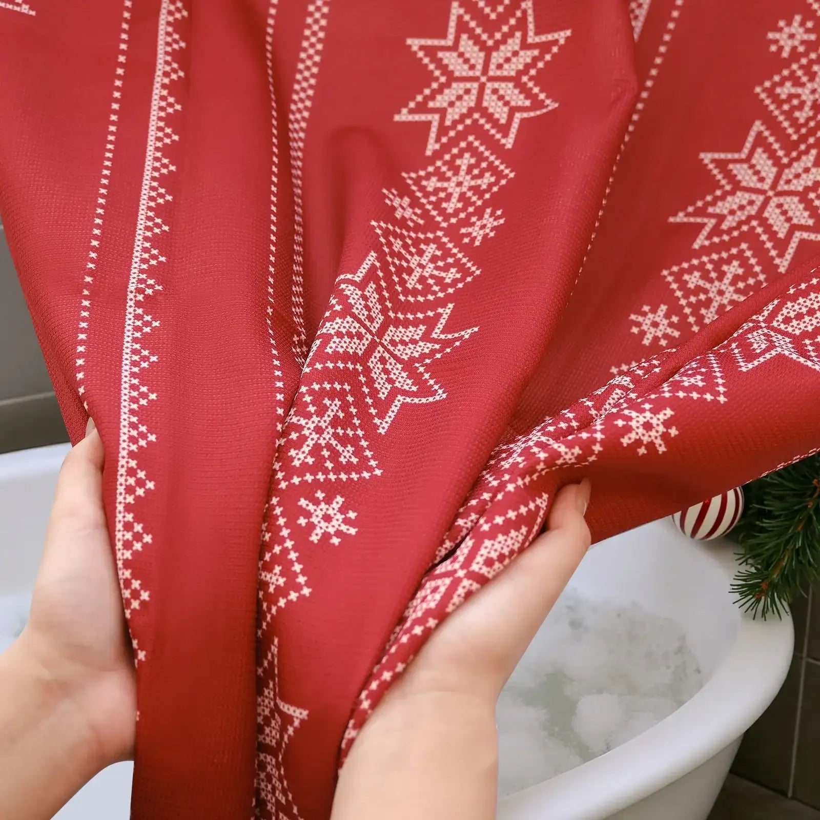 Christmas Snowflake Fair Isle Shower Curtain - Jinchan Home