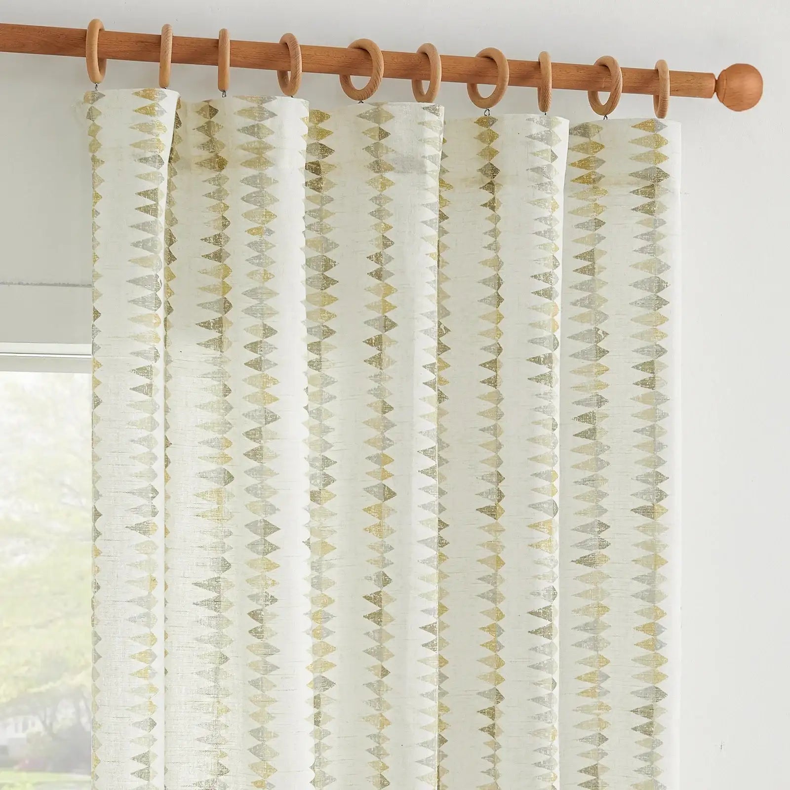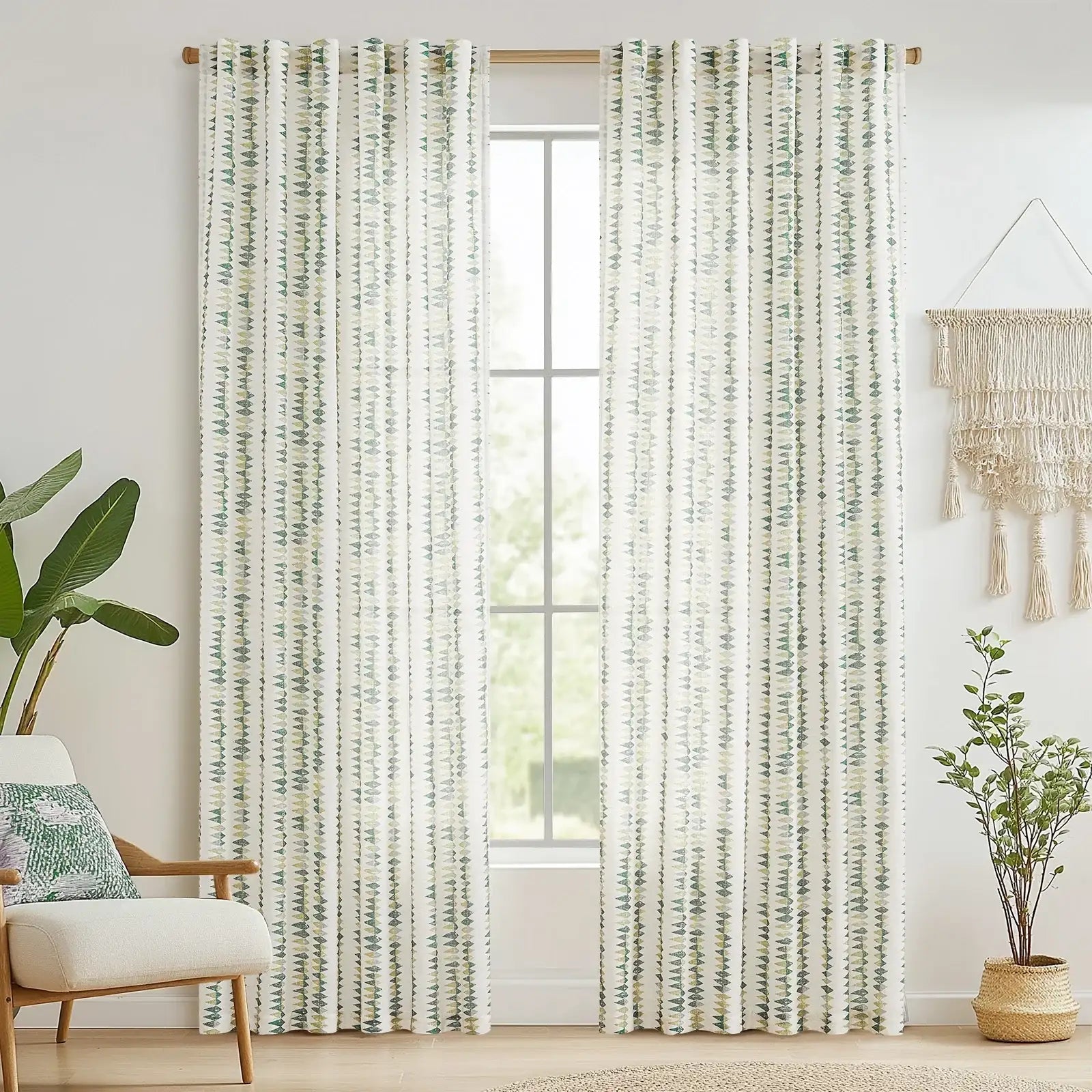 JINCHAN Boho Prism Triangle Stripe Linen Curtains bring a fresh, modern bohemian touch to your home with soft geometric triangle stripes and subtle color transitions.