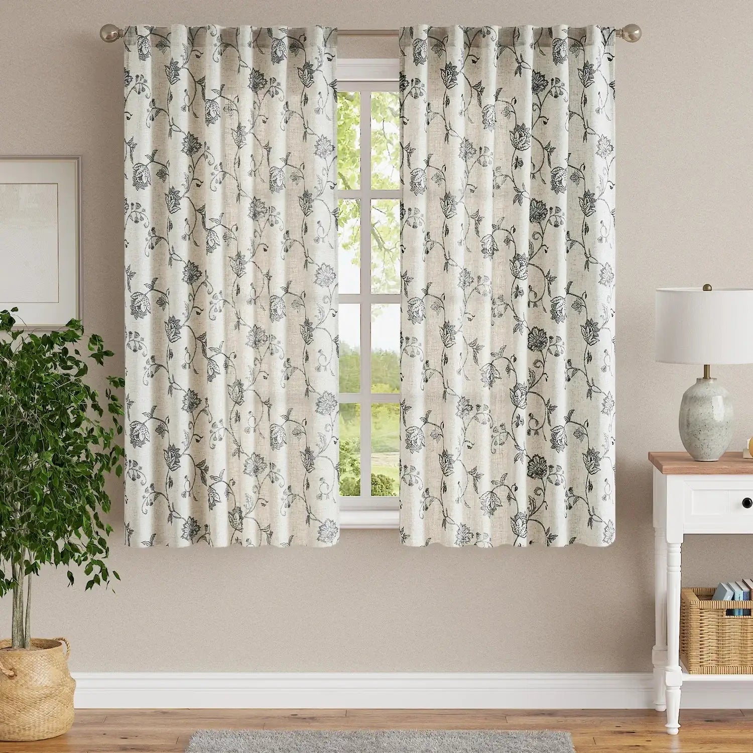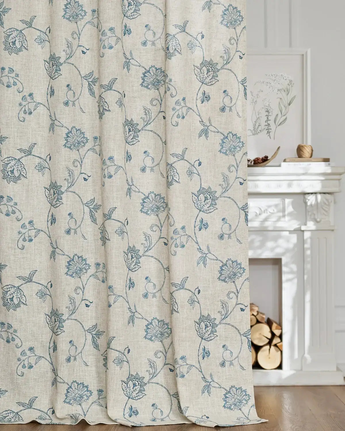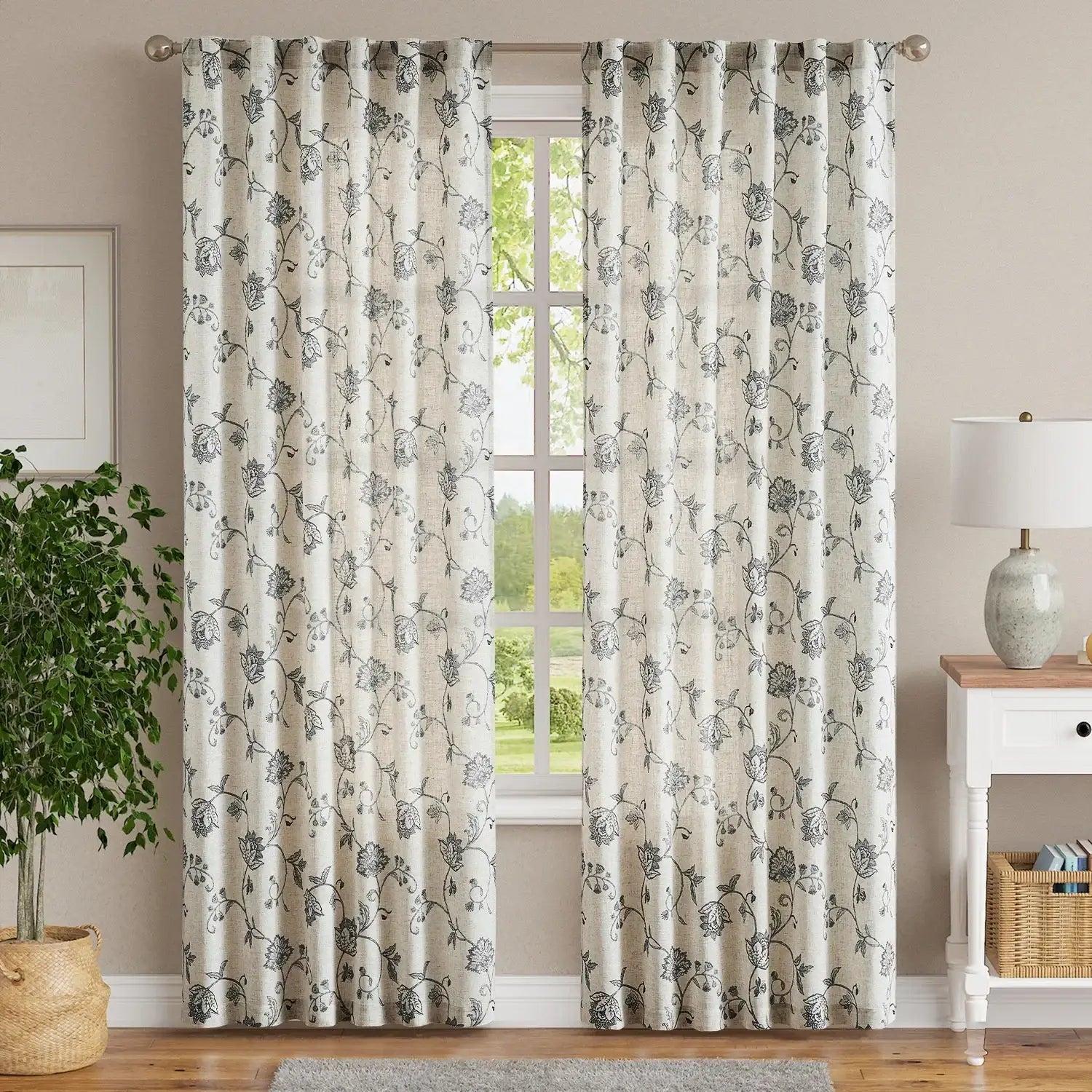 JINCHAN Floral Linen-Blend Curtains bring warmth and casual sophistication to any room. Each set includes 2 panels made from triple-weave linen-blend fabric, featuring a delicate floral pattern that adds texture and style. Semi-sheer design allows natural light to brighten your space while maintaining privacy. The 3-in-1 rod pocket and back tab construction offers flexible hanging options, allowing smooth sliding on standard curtain rods and easy layering with sheer curtains. Perfect for living rooms, bedrooms, dining areas, kitchens, offices, patios, sliding doors, or nurseries, these curtains complement a wide range of interior styles.