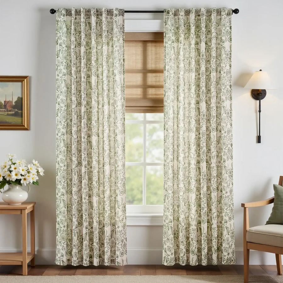 JINCHAN Ready-Made Floral Linen Blend Curtains bring warmth, elegance, and timeless farmhouse charm to any room. Each set includes 2 panels featuring detailed botanical prints that softly frame windows without overwhelming the décor. Made from lightweight linen blend fabric, these curtains gently diffuse sunlight while providing comfortable privacy. Versatile and functional, they complement living rooms, bedrooms, dining areas, kitchens, offices, playrooms, and more. Easy-to-hang design ensures smooth installation on most standard curtain rods, creating a polished and inviting look.