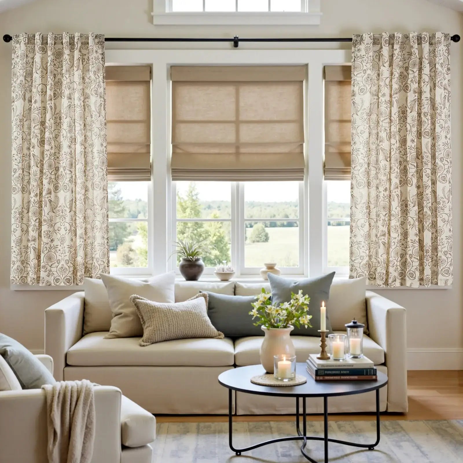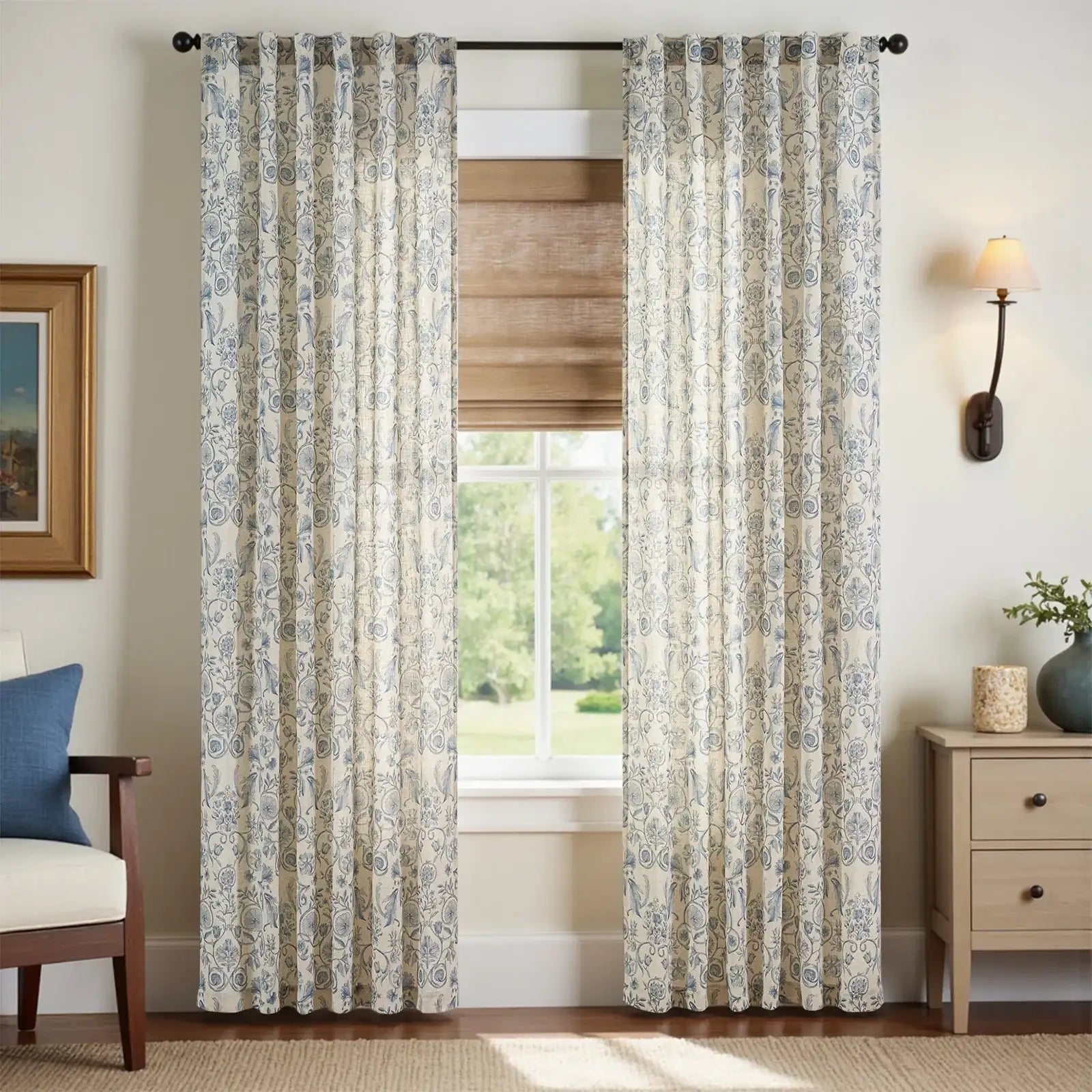 Rococo Vine Linen-Blend 3-in-1 Curtains