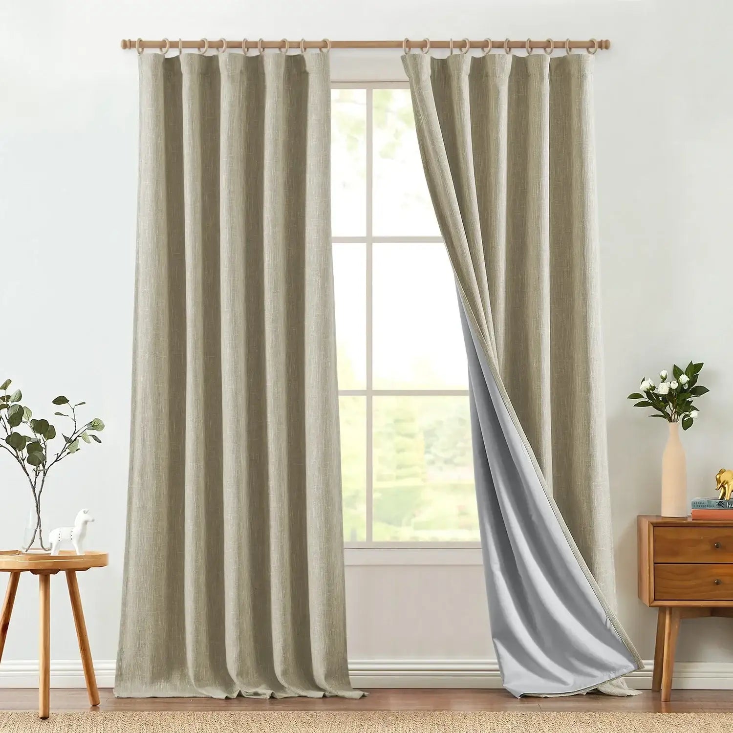 Each set includes 2 panels with built-in blackout lining, providing effective light blocking and a warm, inviting ambiance.