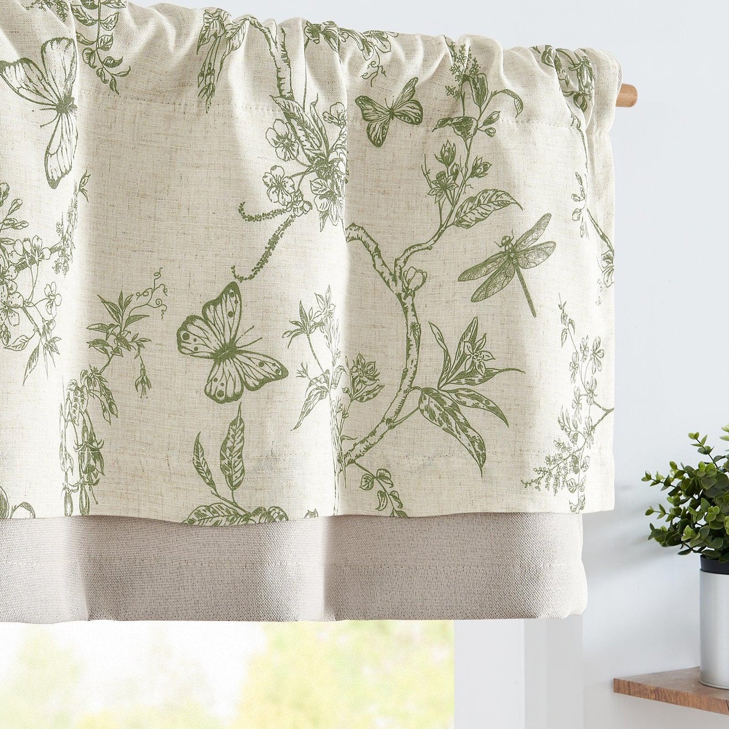 Botanical Butterfly Print Linen Valance