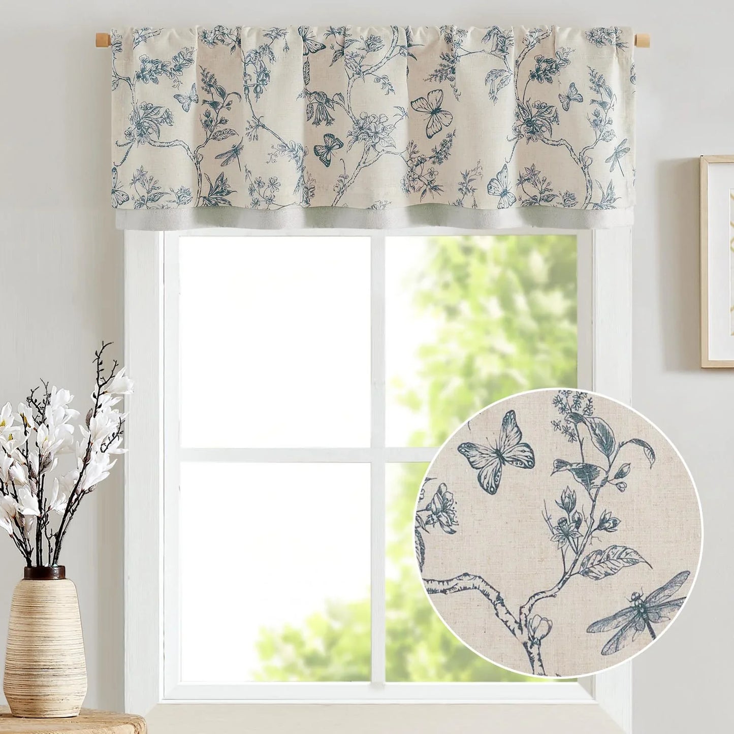 JINCHAN Linen Valance brings rustic charm and whimsical beauty to any room with a delicate butterfly and floral design.