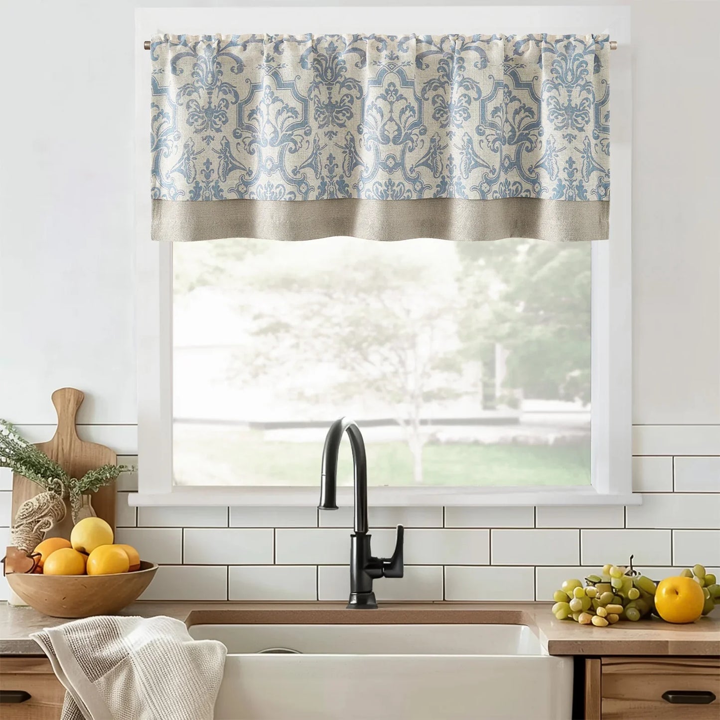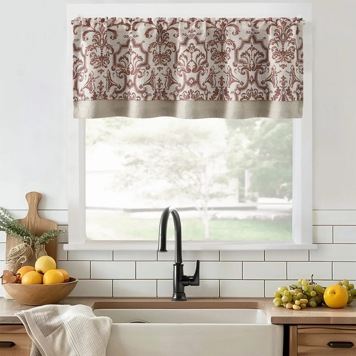 JINCHAN Linen Valance features an elegant floral design and natural linen texture, adding timeless charm to any room. Lightweight and breathable, this tie-up swag valance softly filters sunlight while allowing airflow and providing just the right amount of privacy. Perfect as a kitchen valance or decorative window treatment, it complements farmhouse, vintage, and modern interiors with ease.