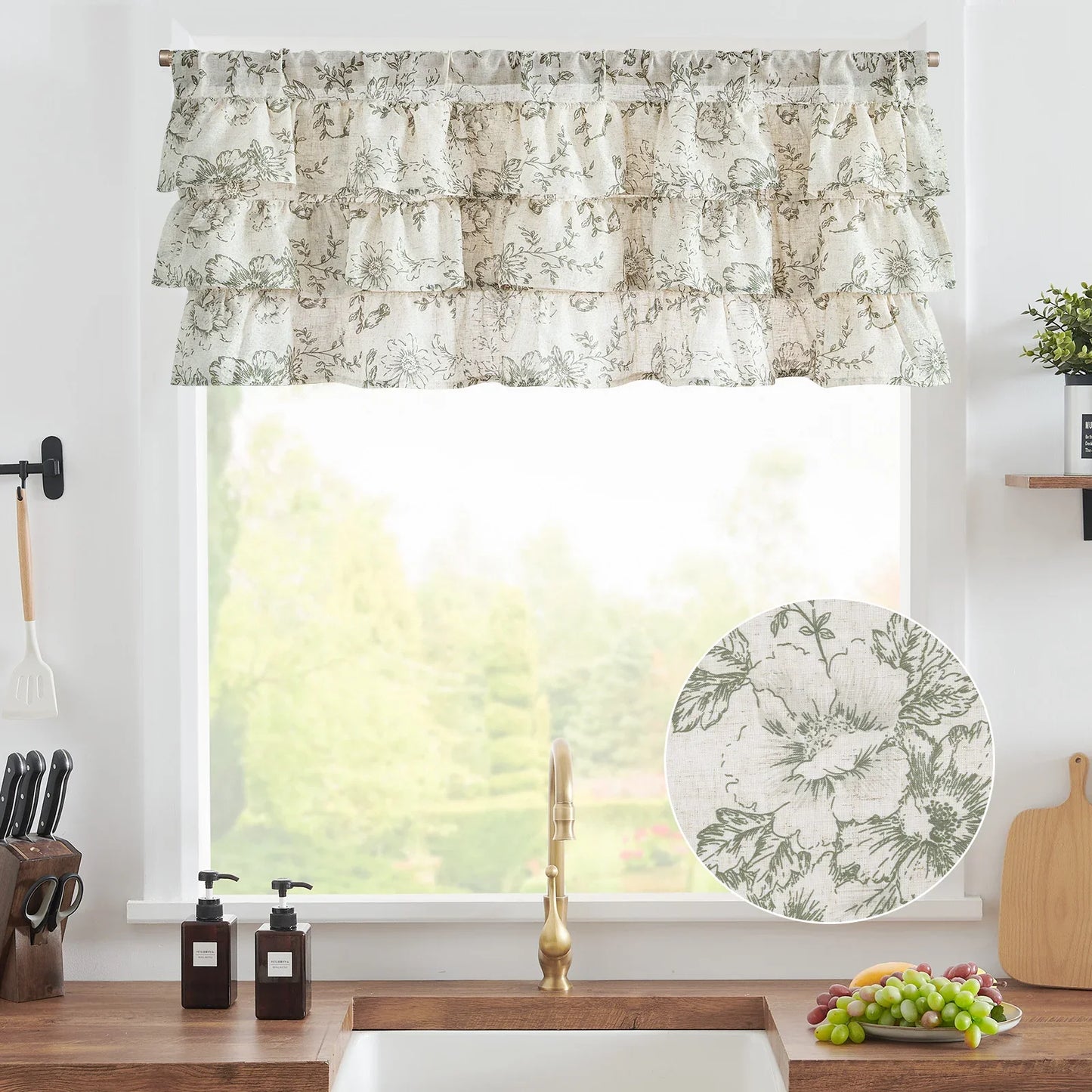 Peony Print Linen-Blend Waterfall Valance - Jinchan Home