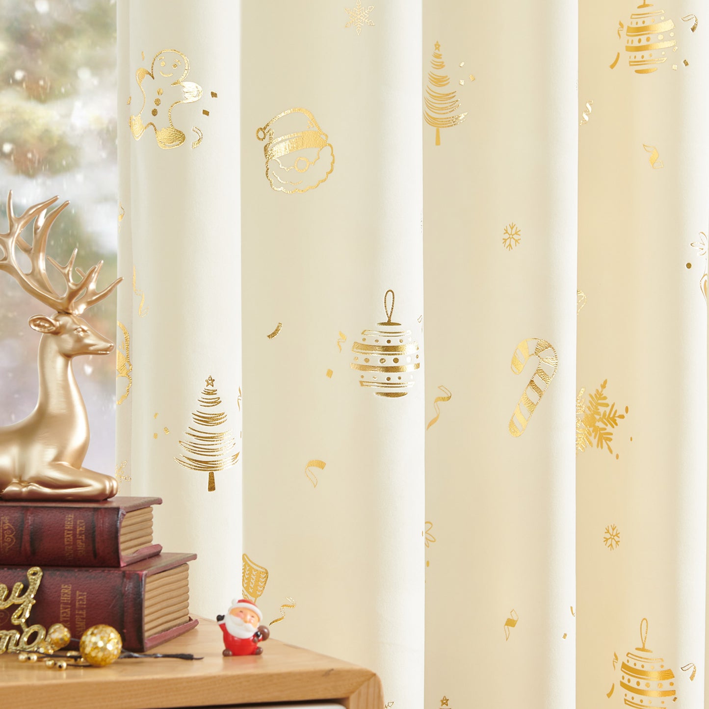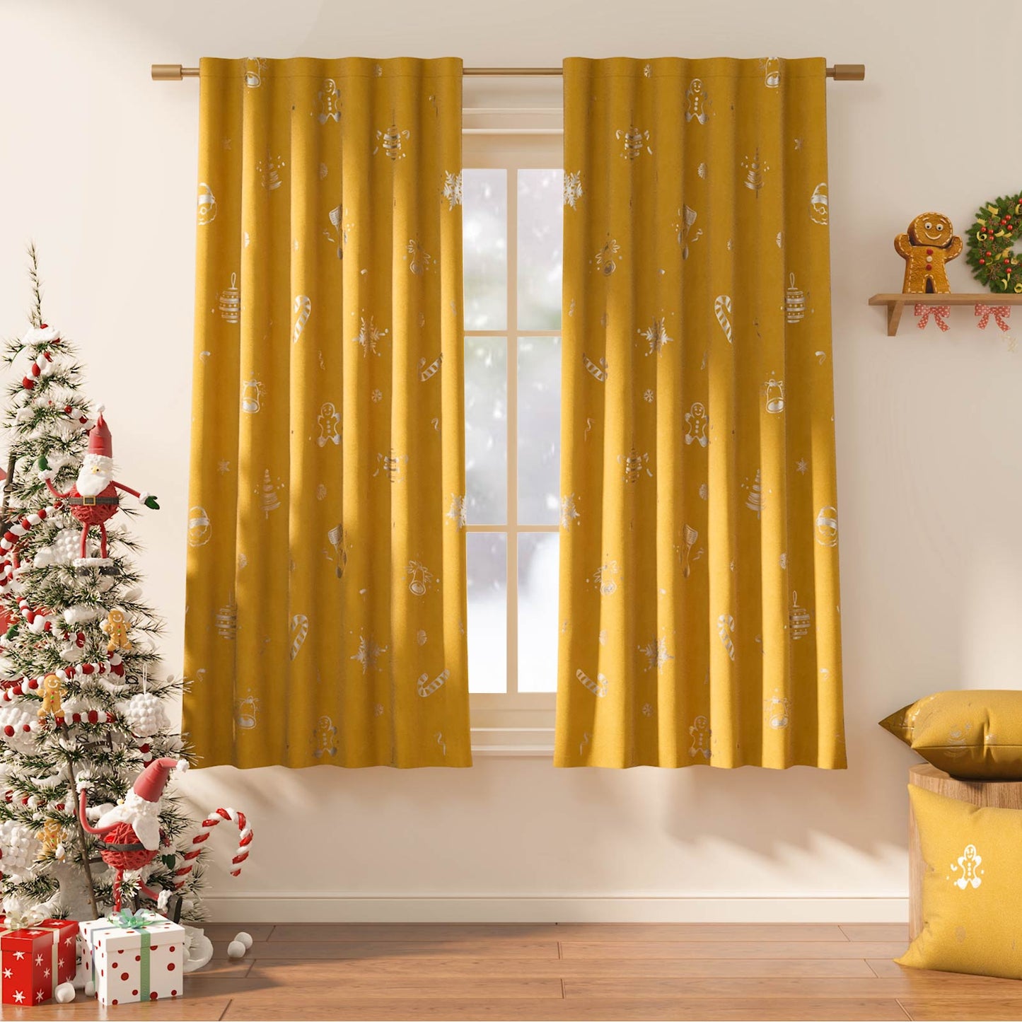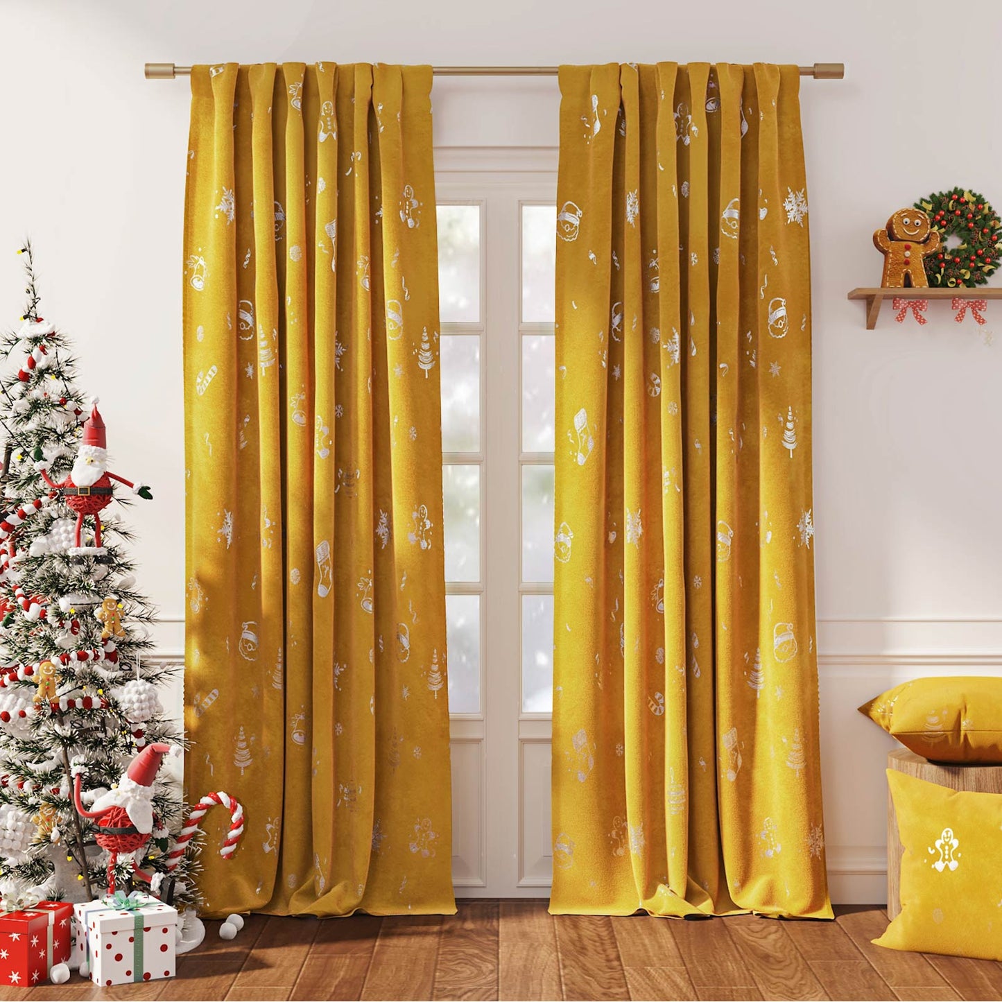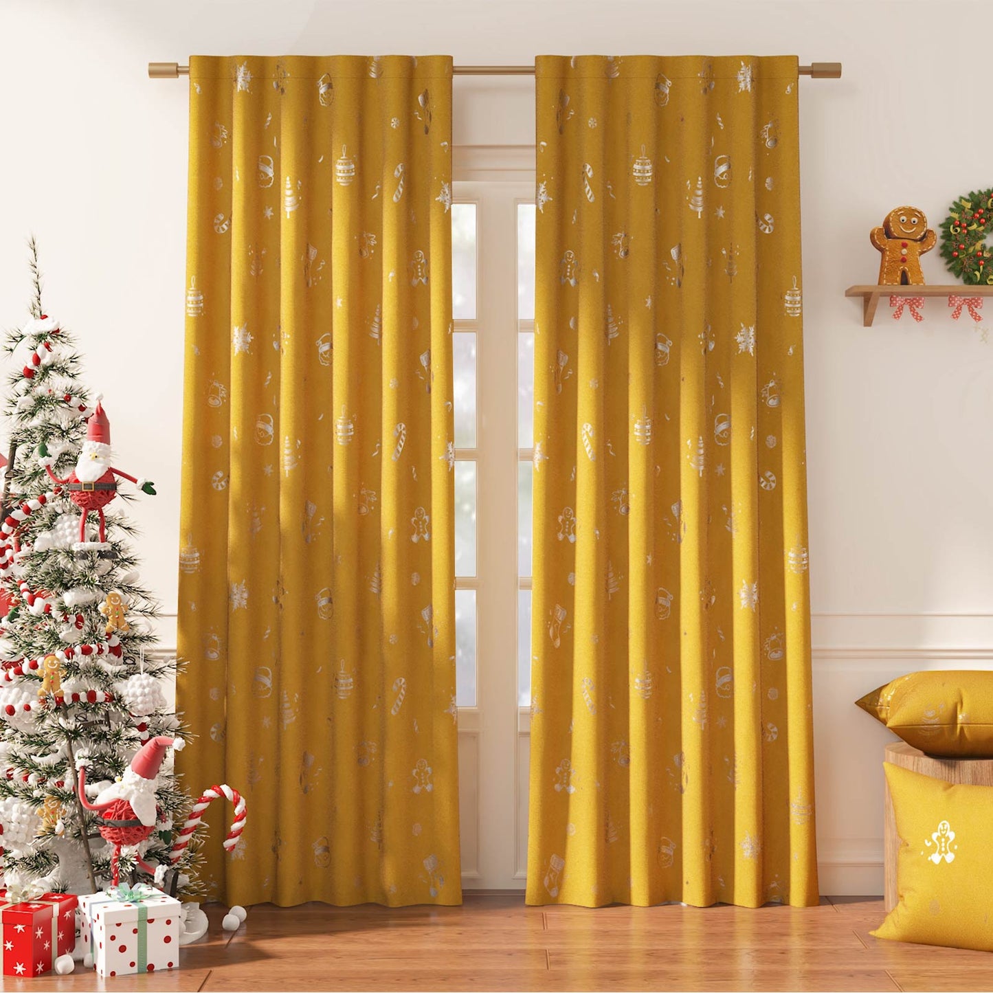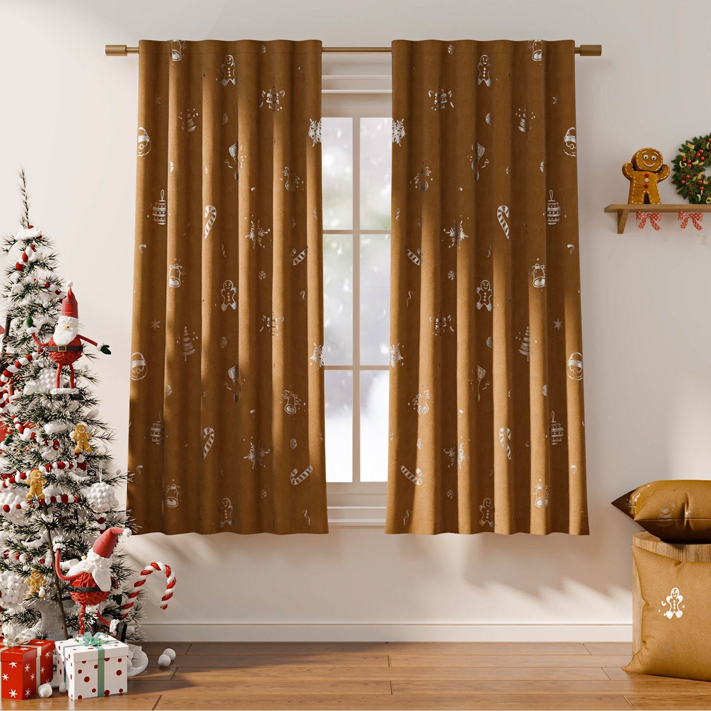 Gingerbread Man & Santa Christmas Motif Curtains