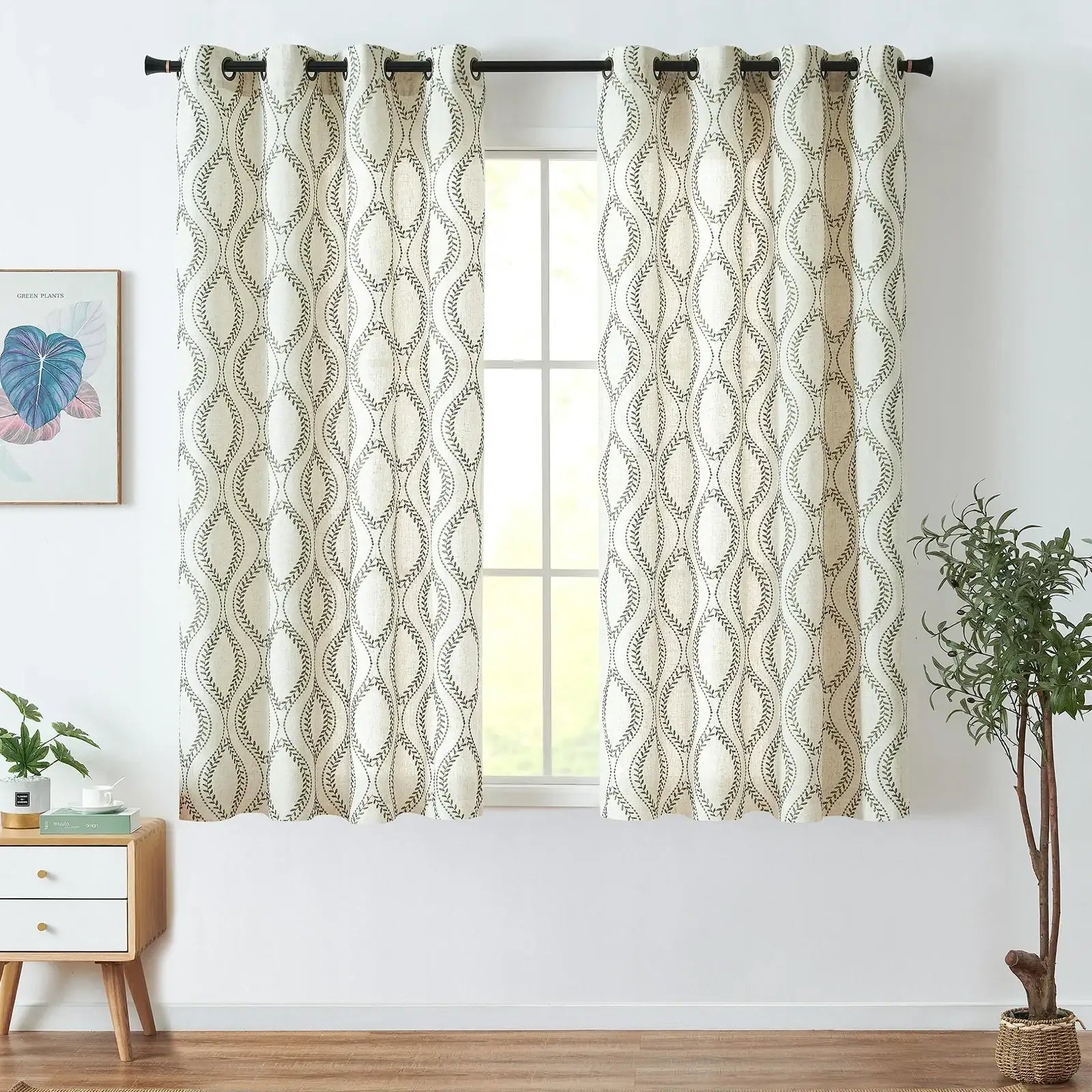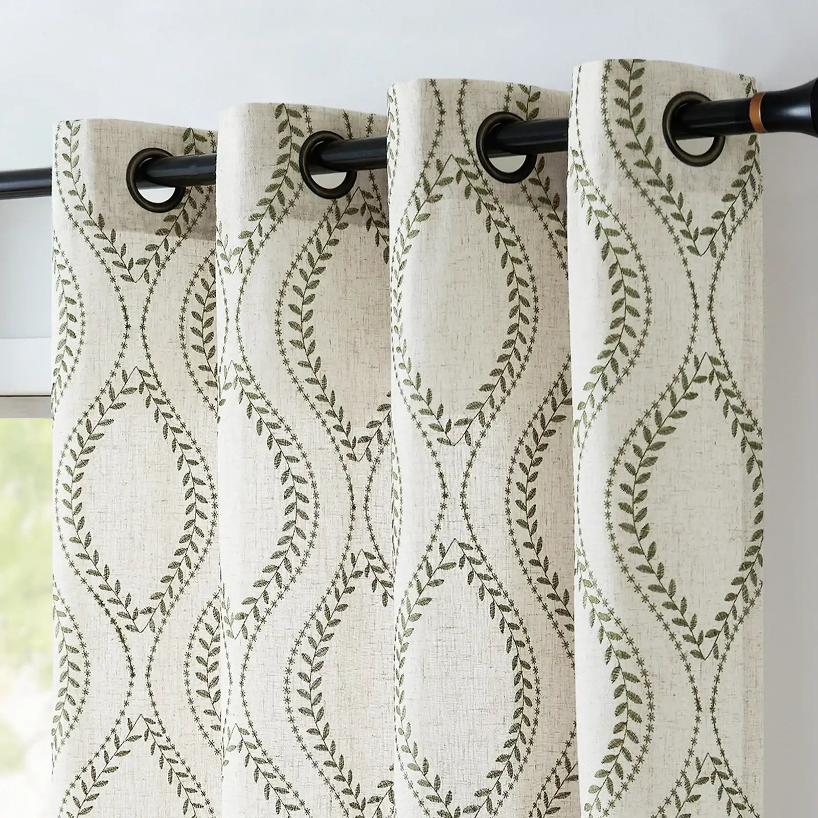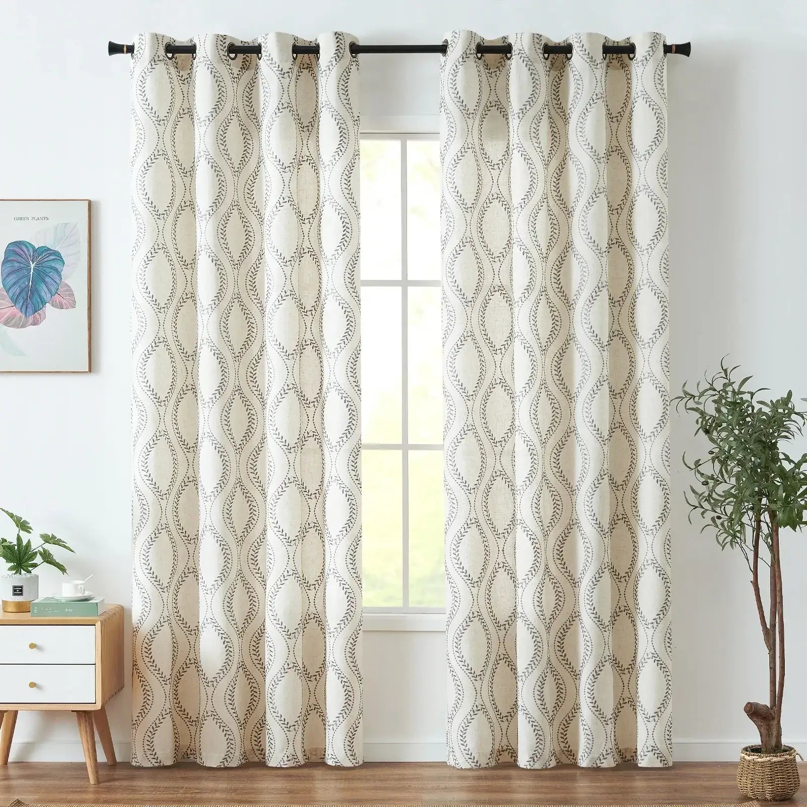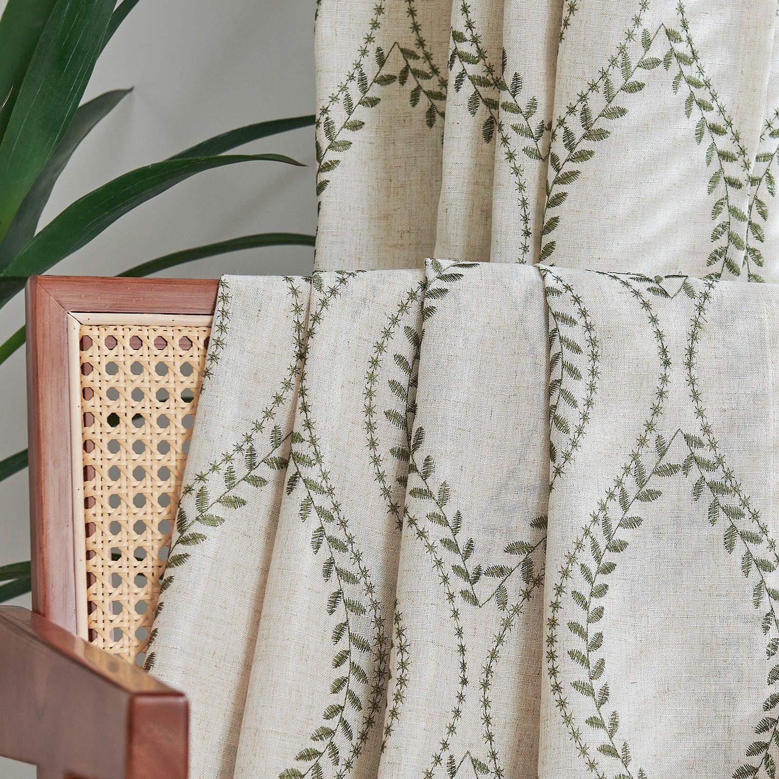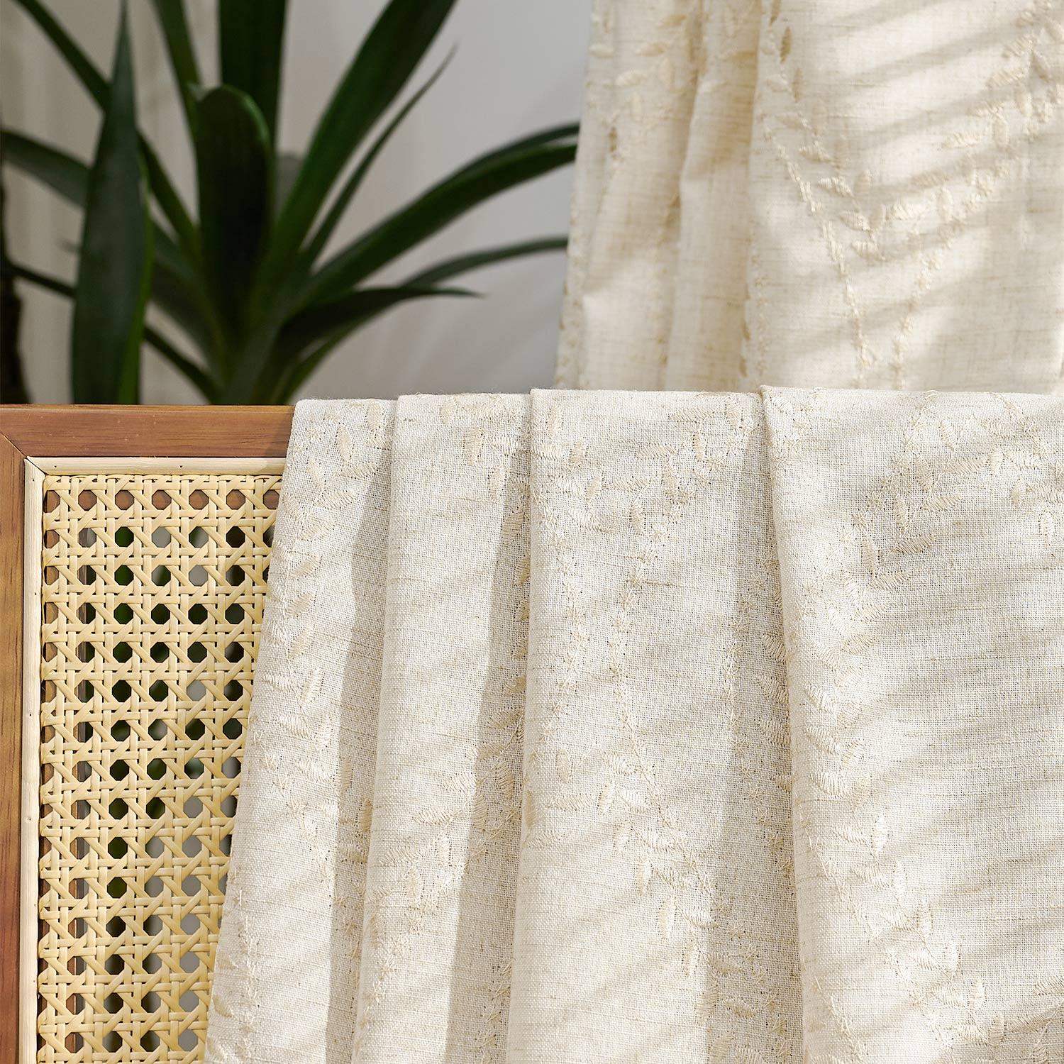 JINCHAN Farmhouse Linen Blend Curtains bring natural warmth and botanical charm to any room.