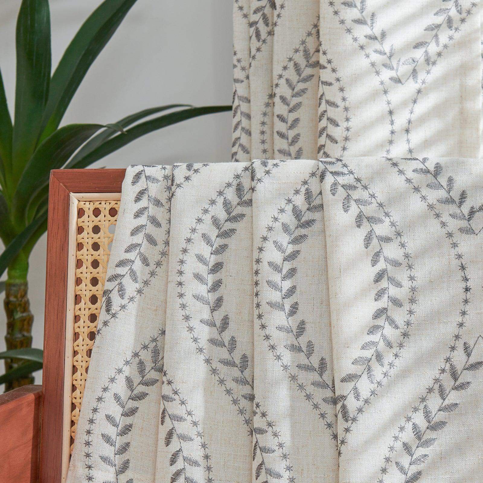 Boho Leaf Embroidered Geometric Curtains