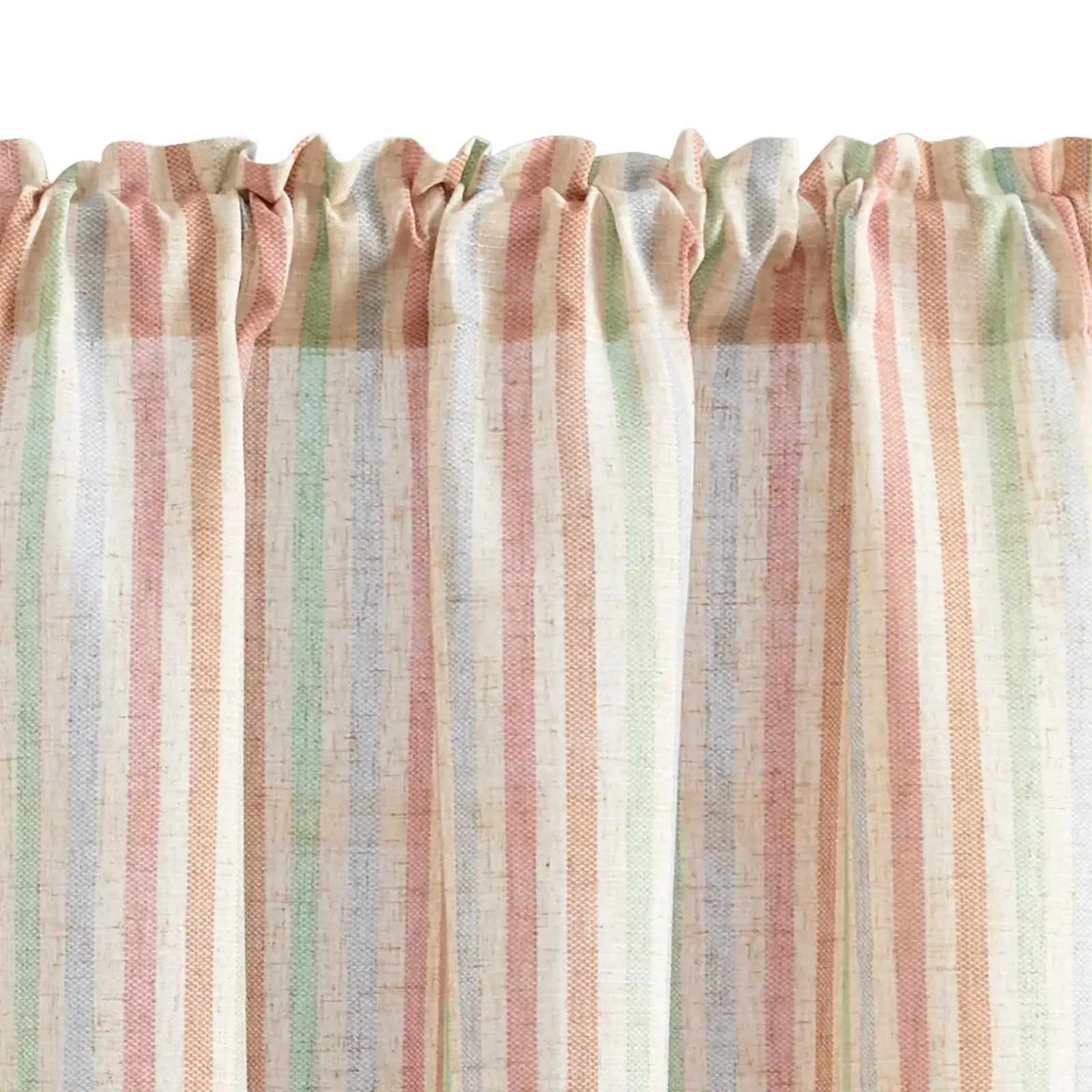 Colorful Striped Linen Wood Ear Edge Kitchen Curtains