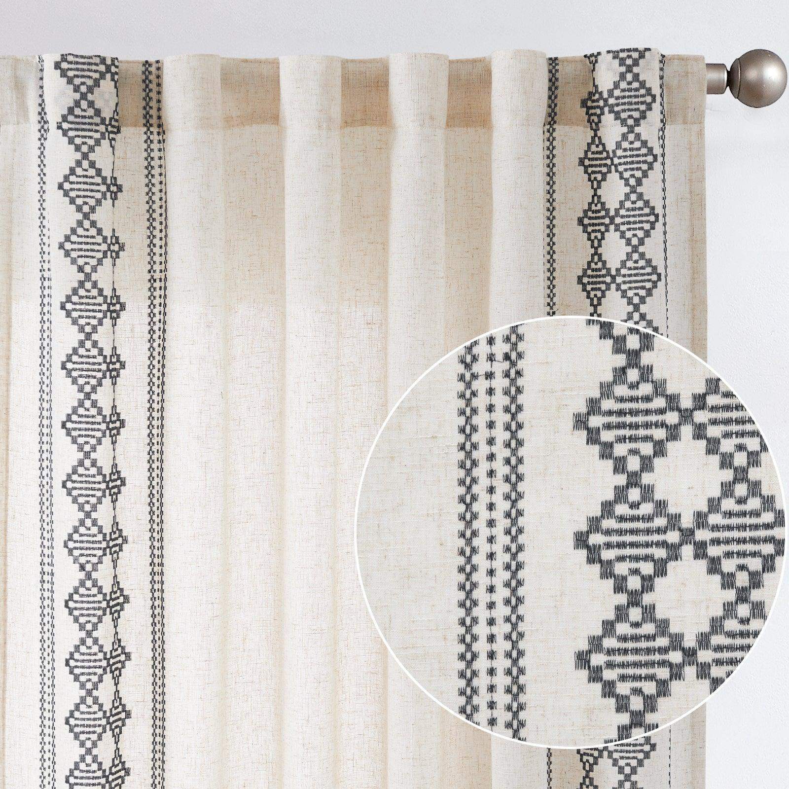 Embroidered Boho Ikat Geometric Curtains