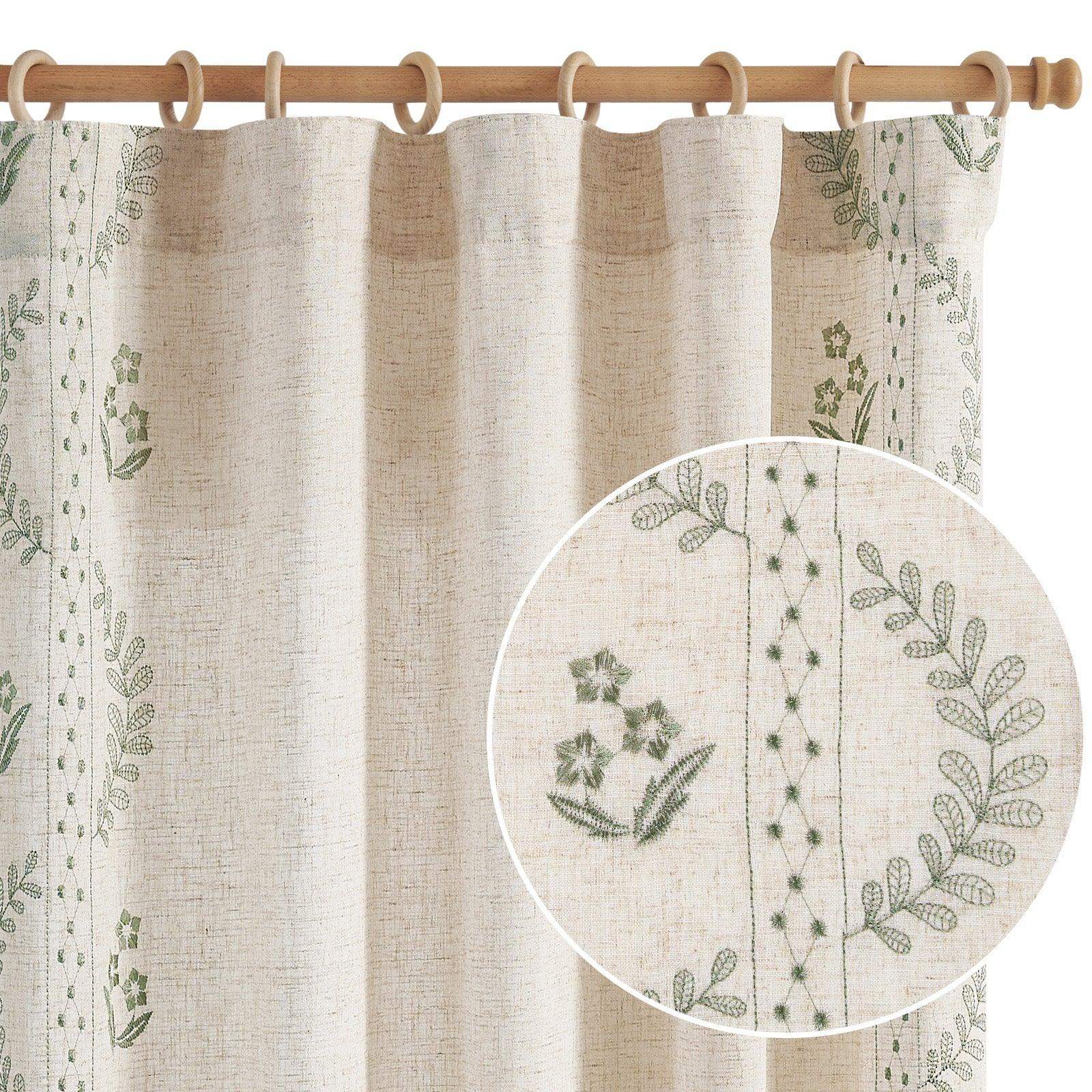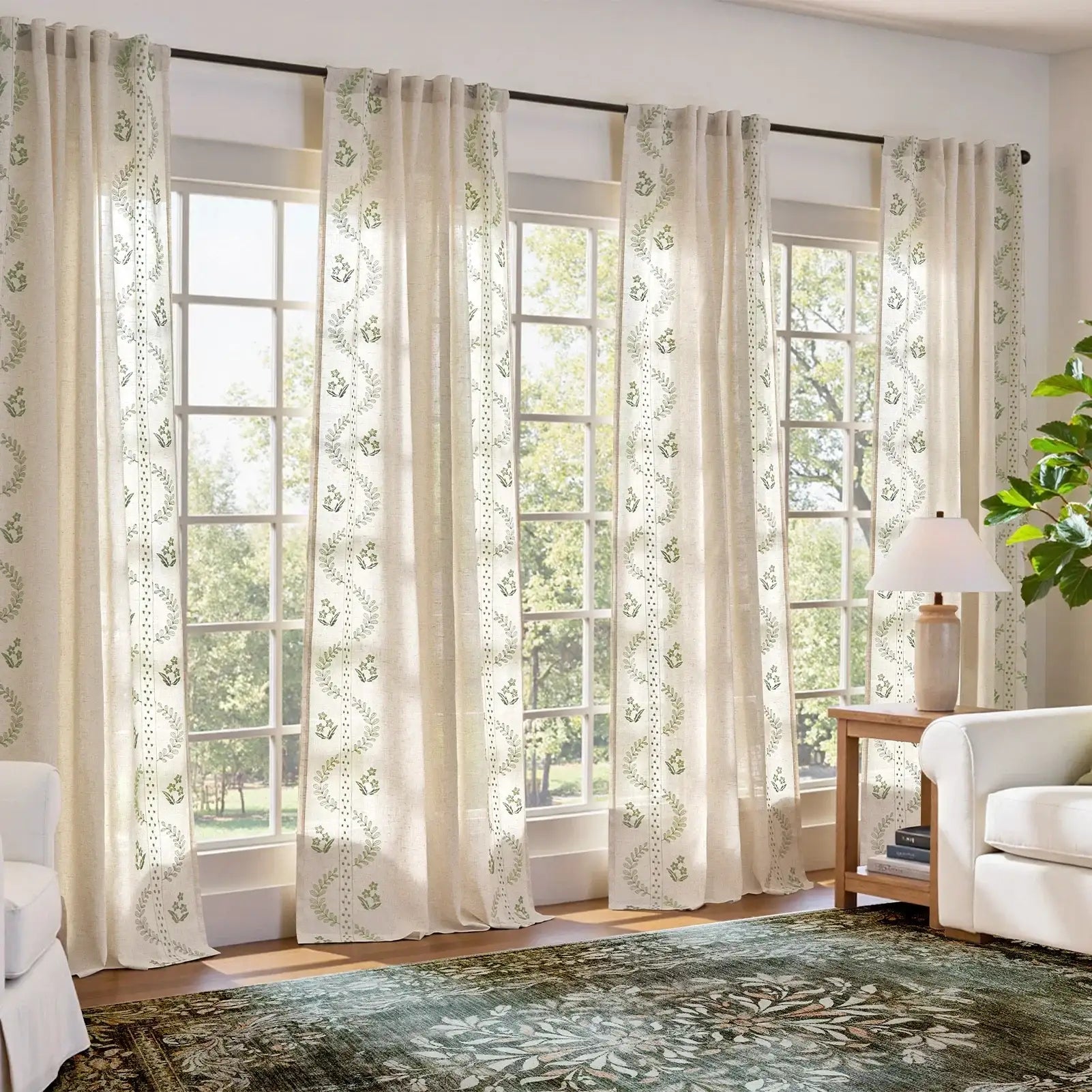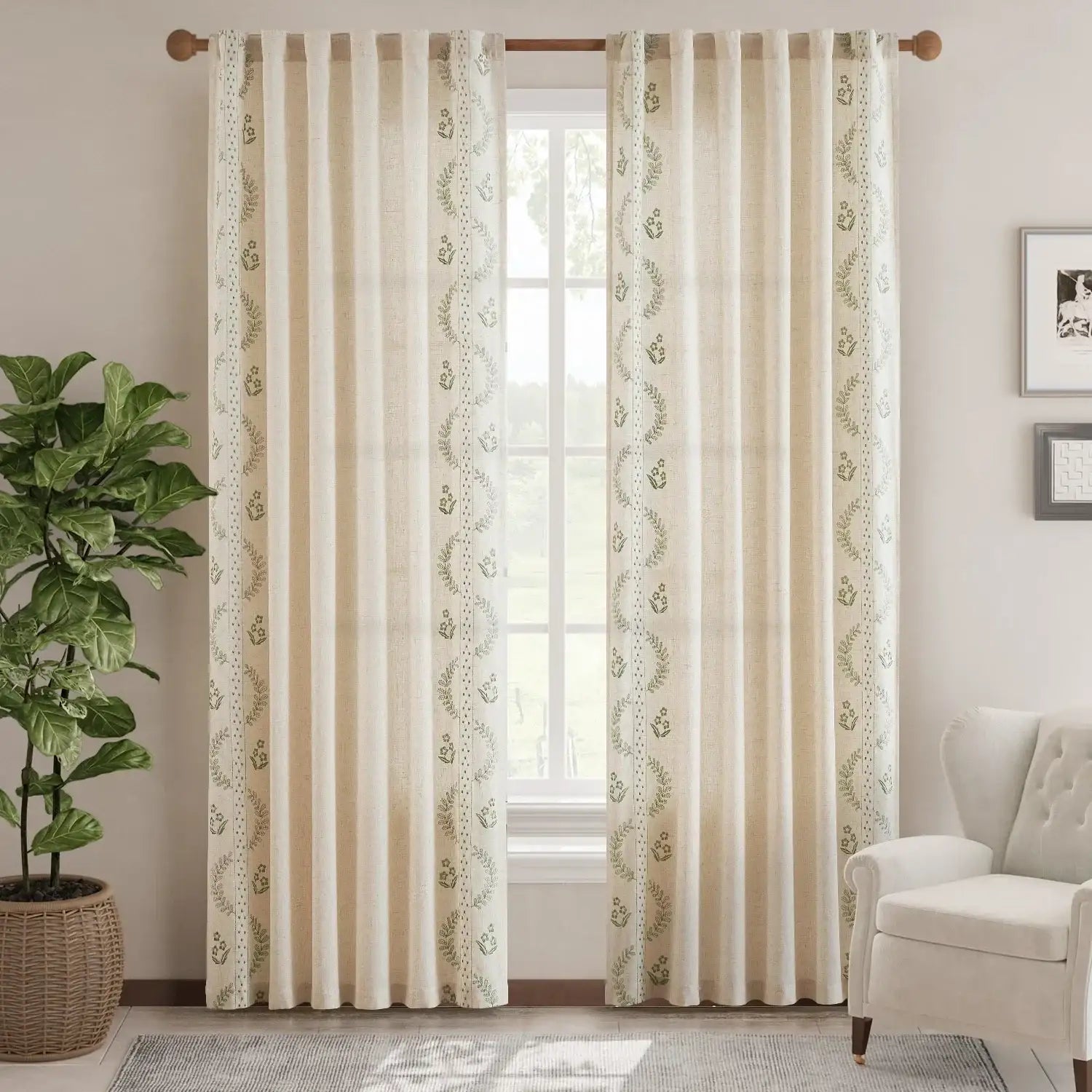 Embroidered Vine Floral Linen Curtains - Jinchan Home