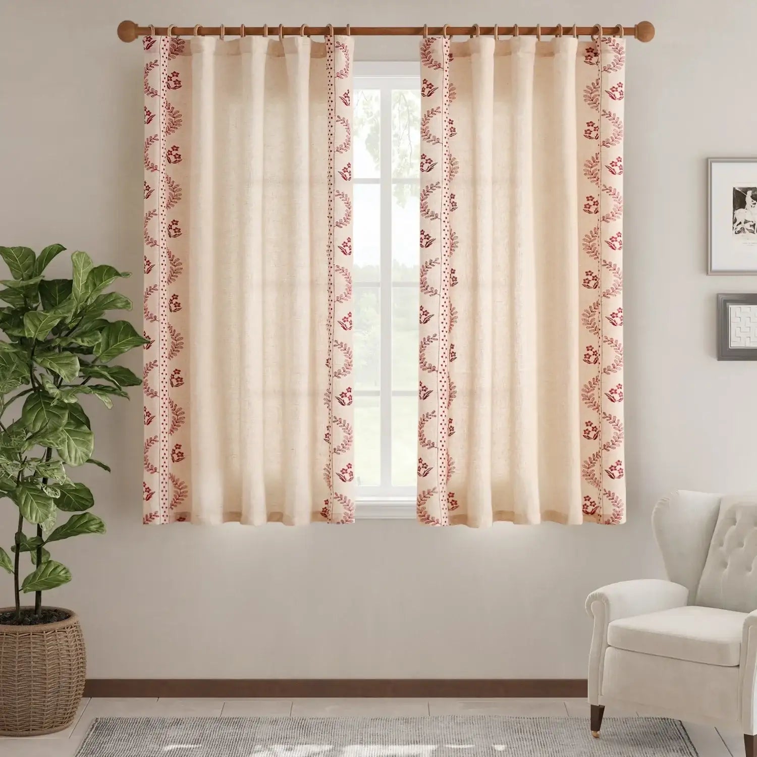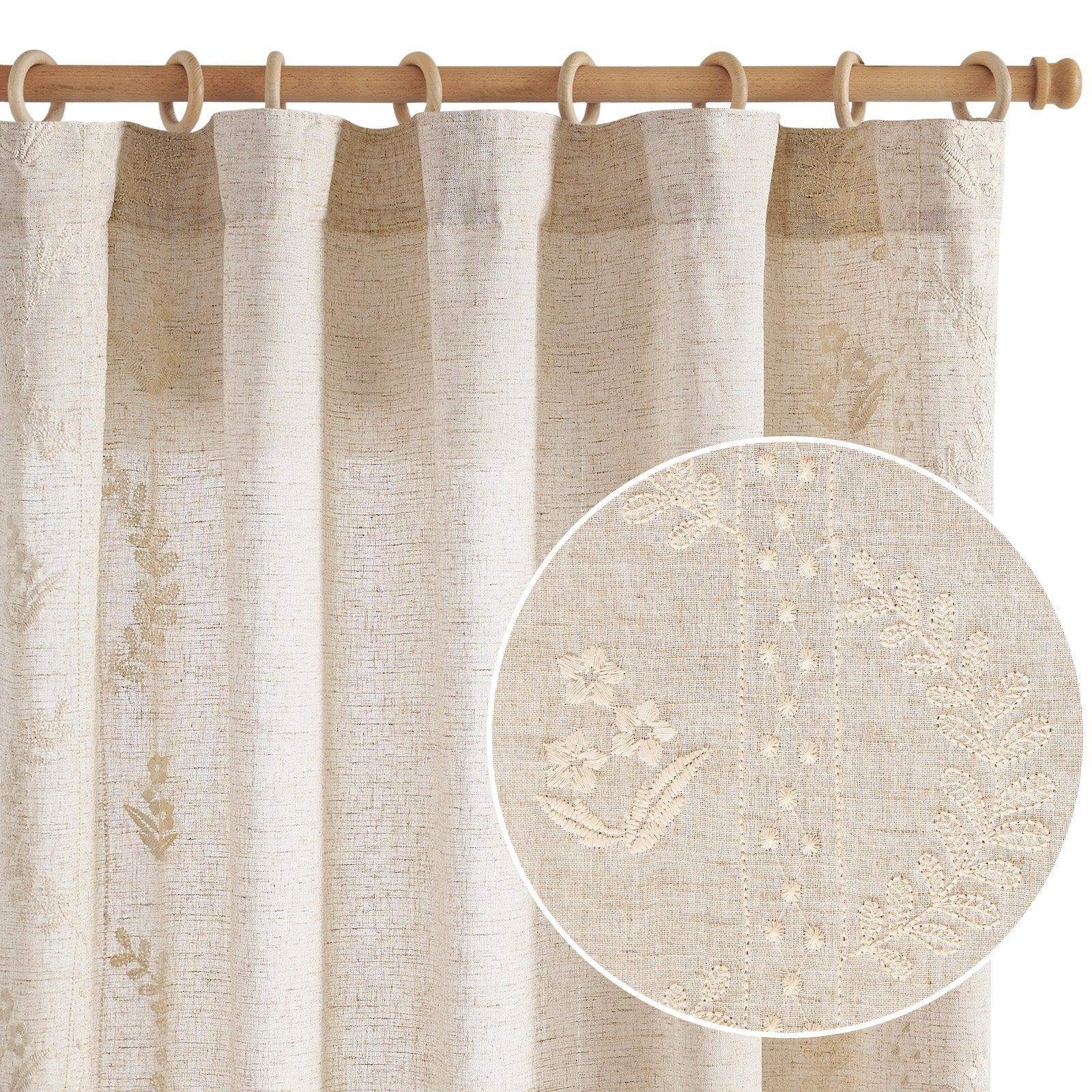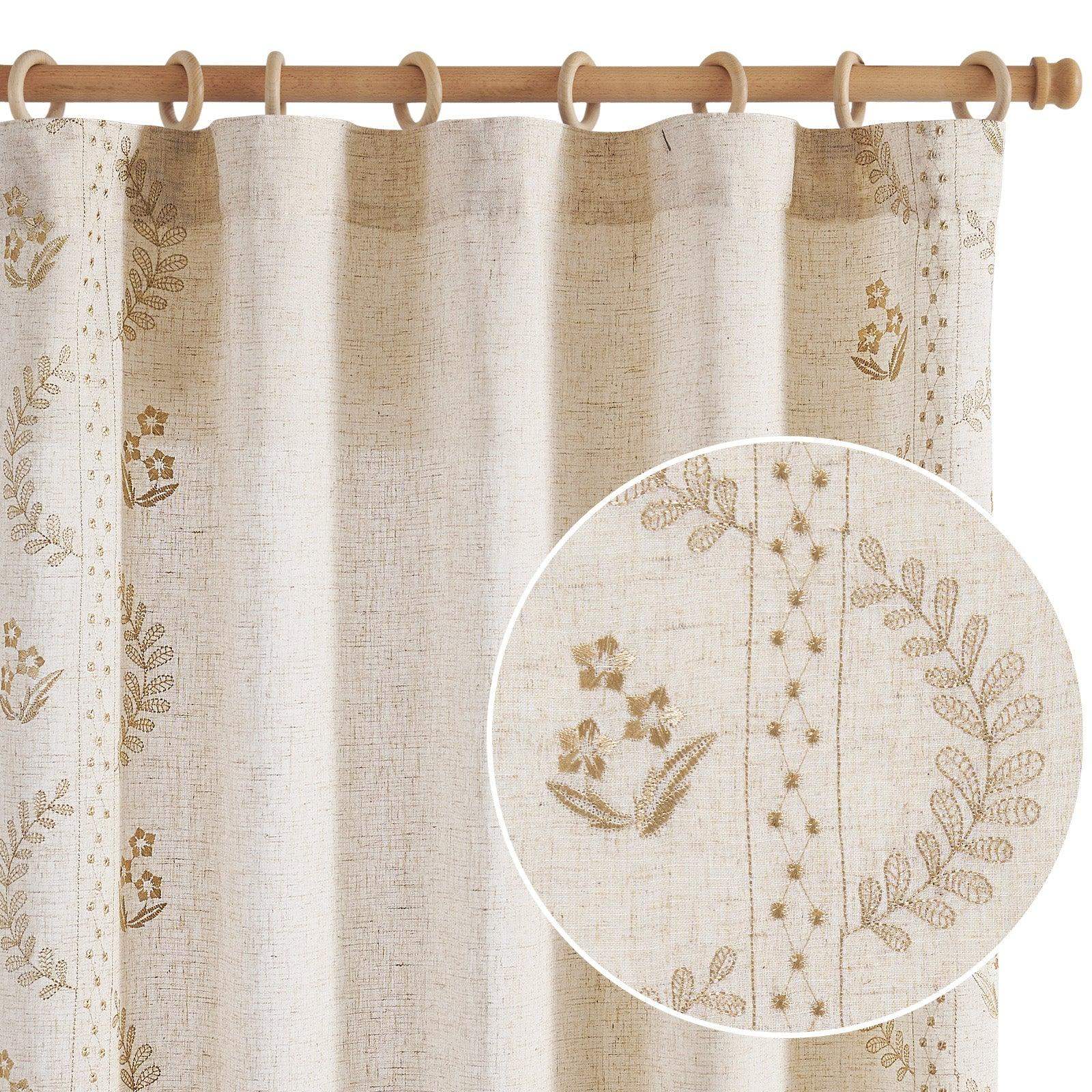 Embroidered Vine Floral Linen Curtains - Jinchan Home