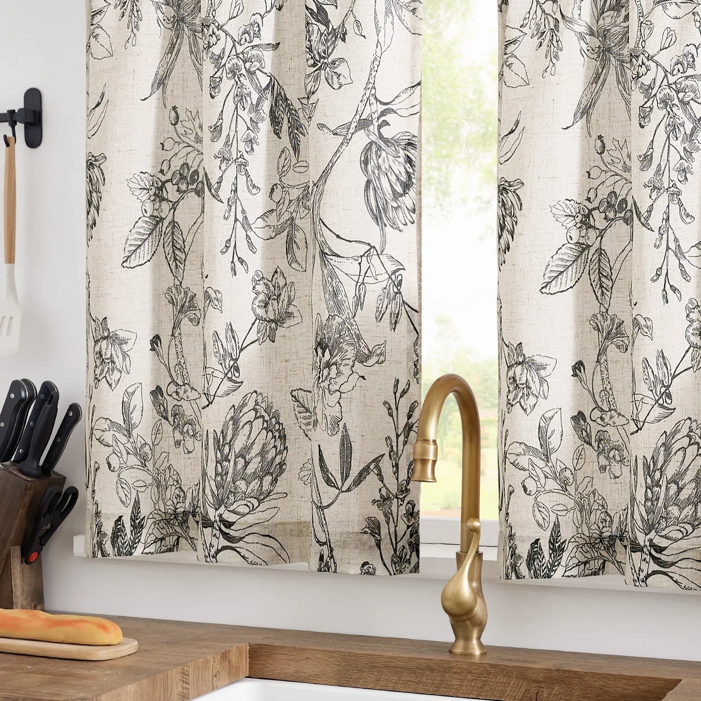 Ink Floral & Dragonfly Kitchen Curtains - Jinchan Home