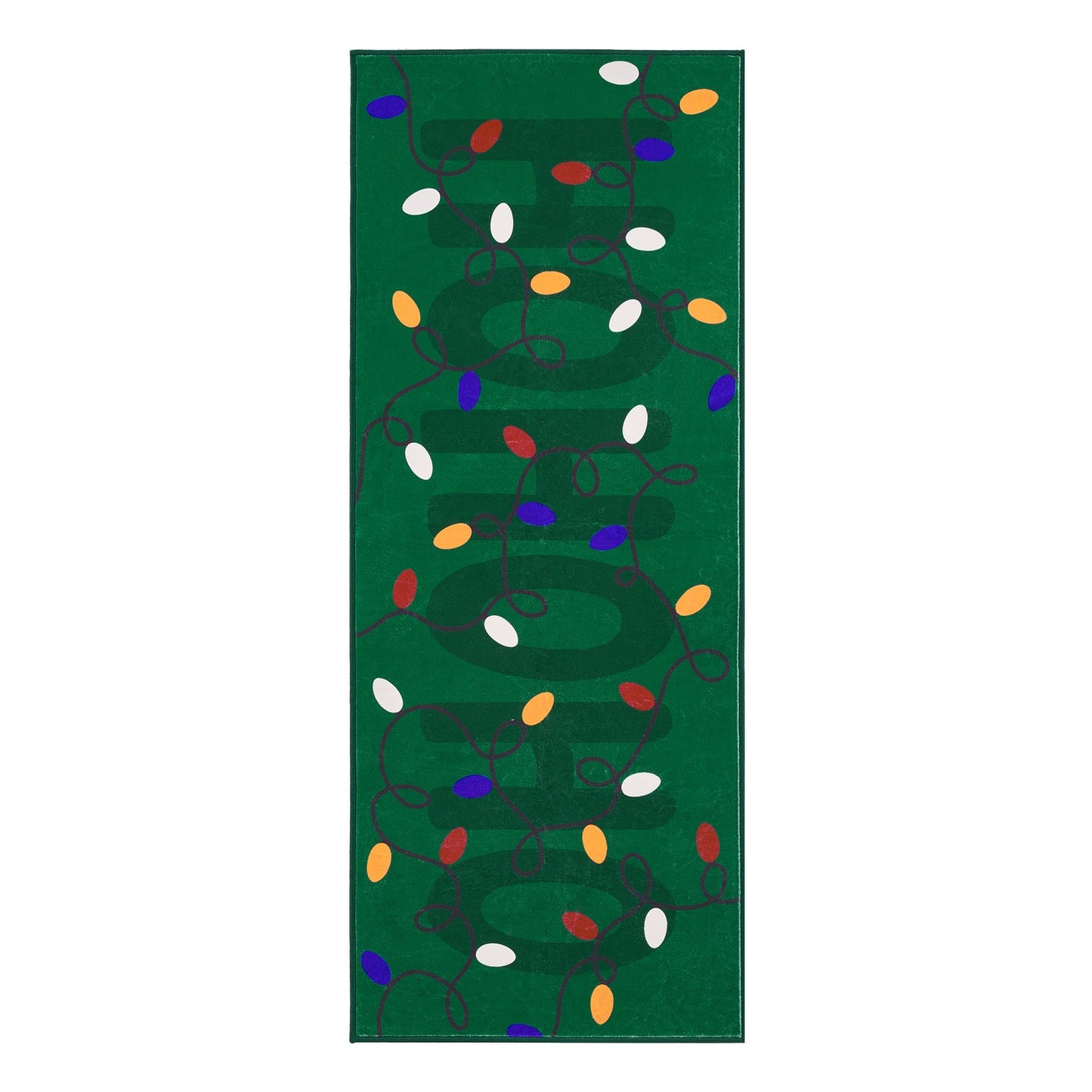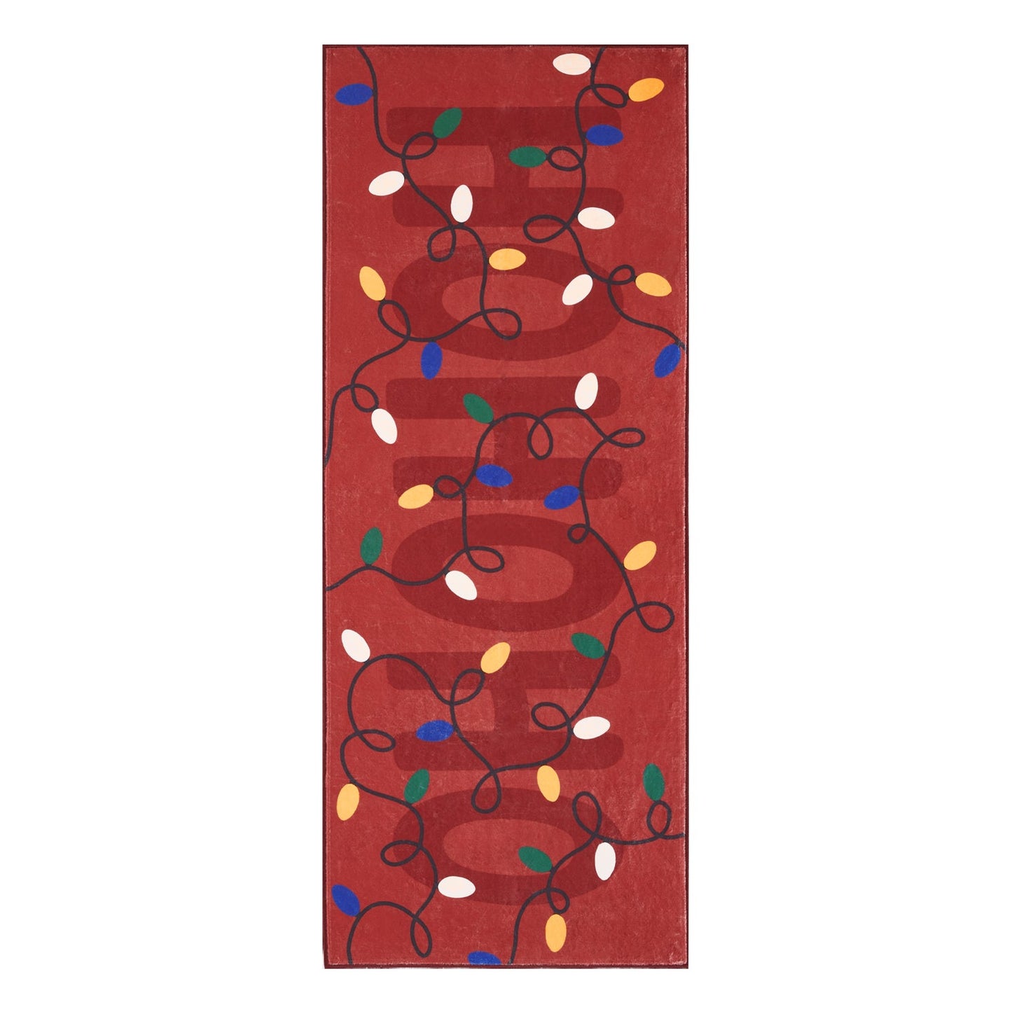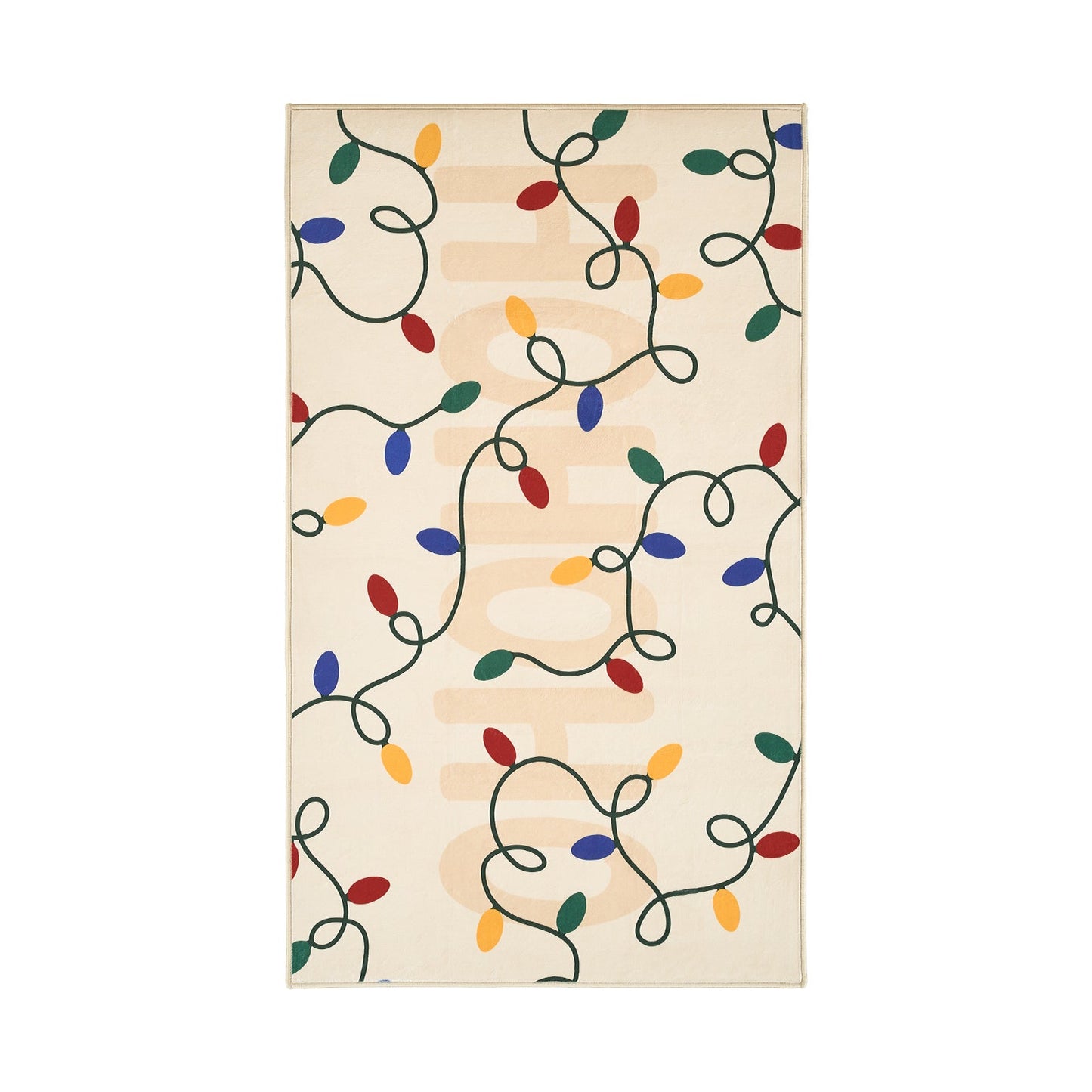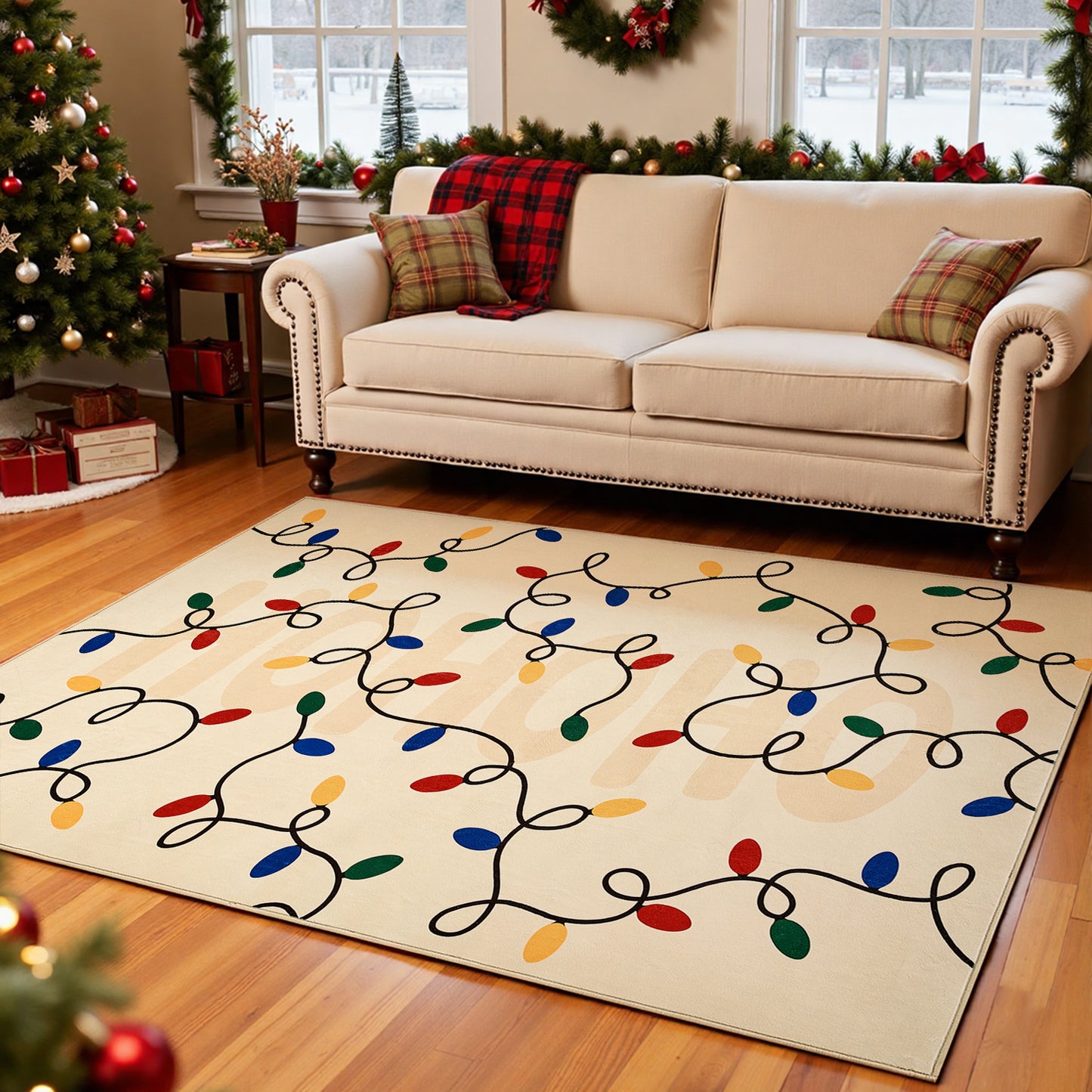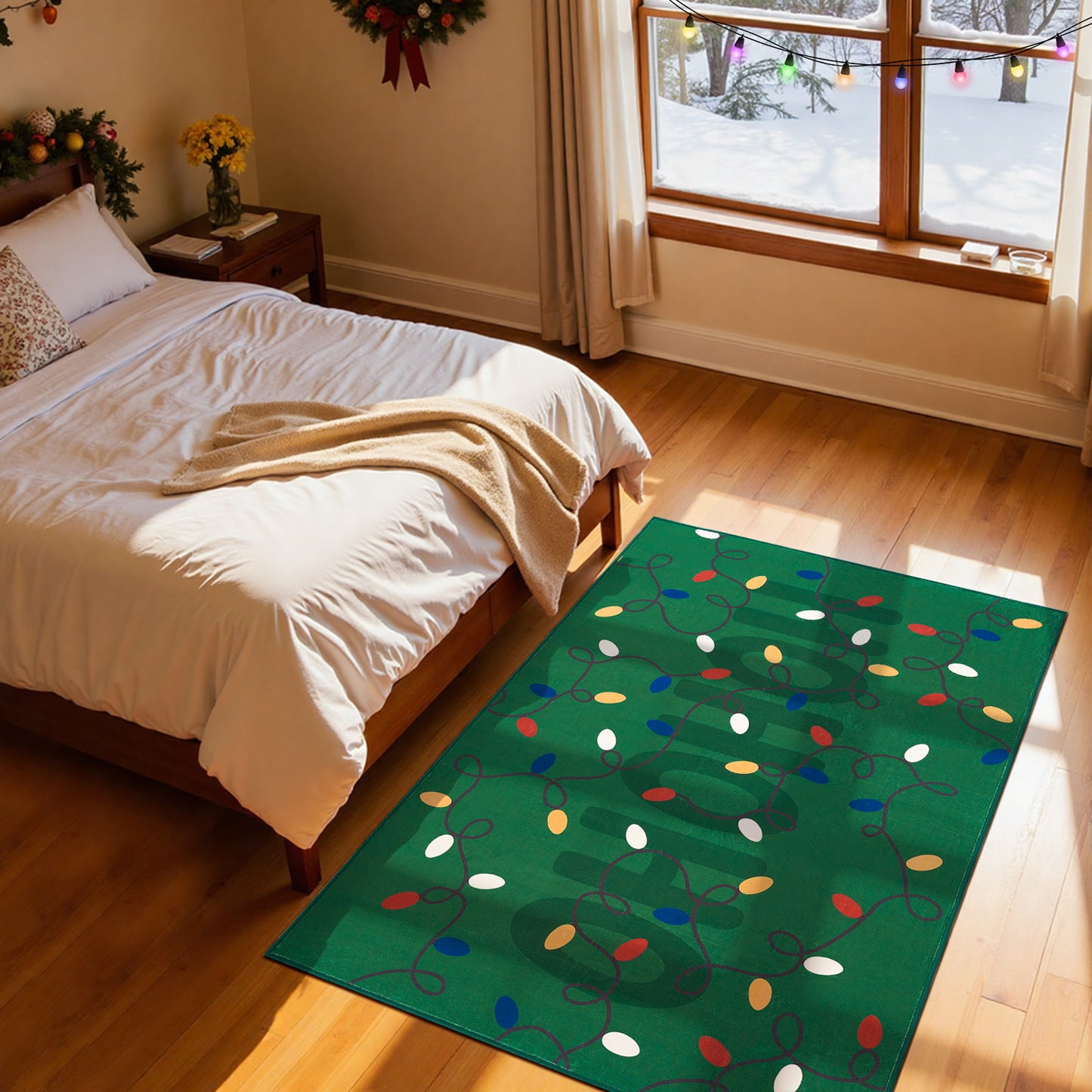 Bring the magic of Christmas into your home with the Ho Ho Ho Christmas Lights Rug from Jinchan.