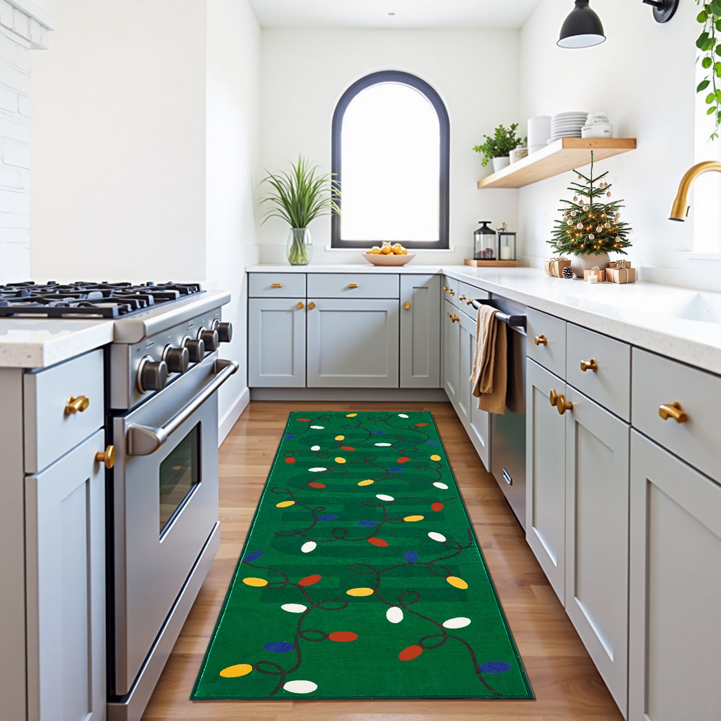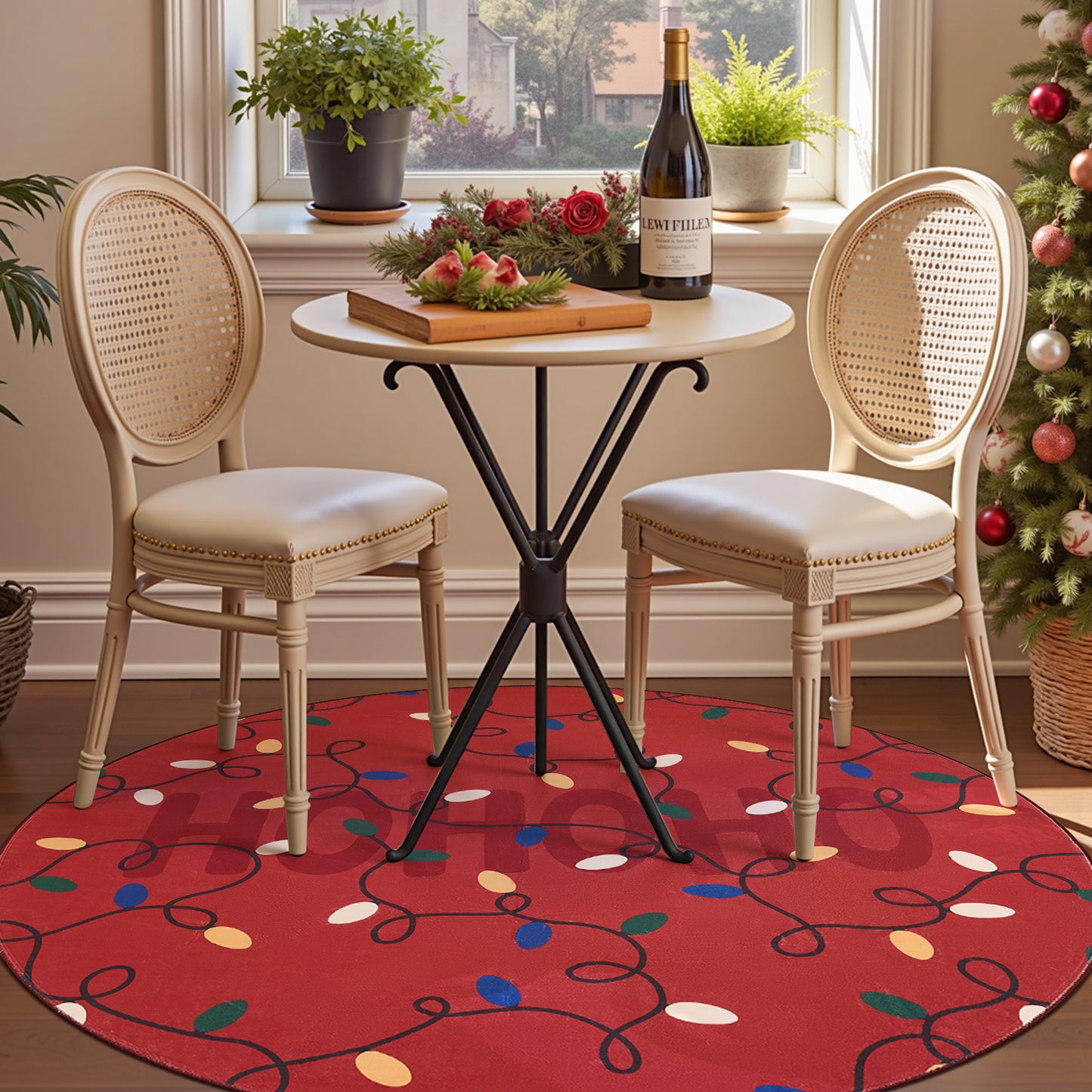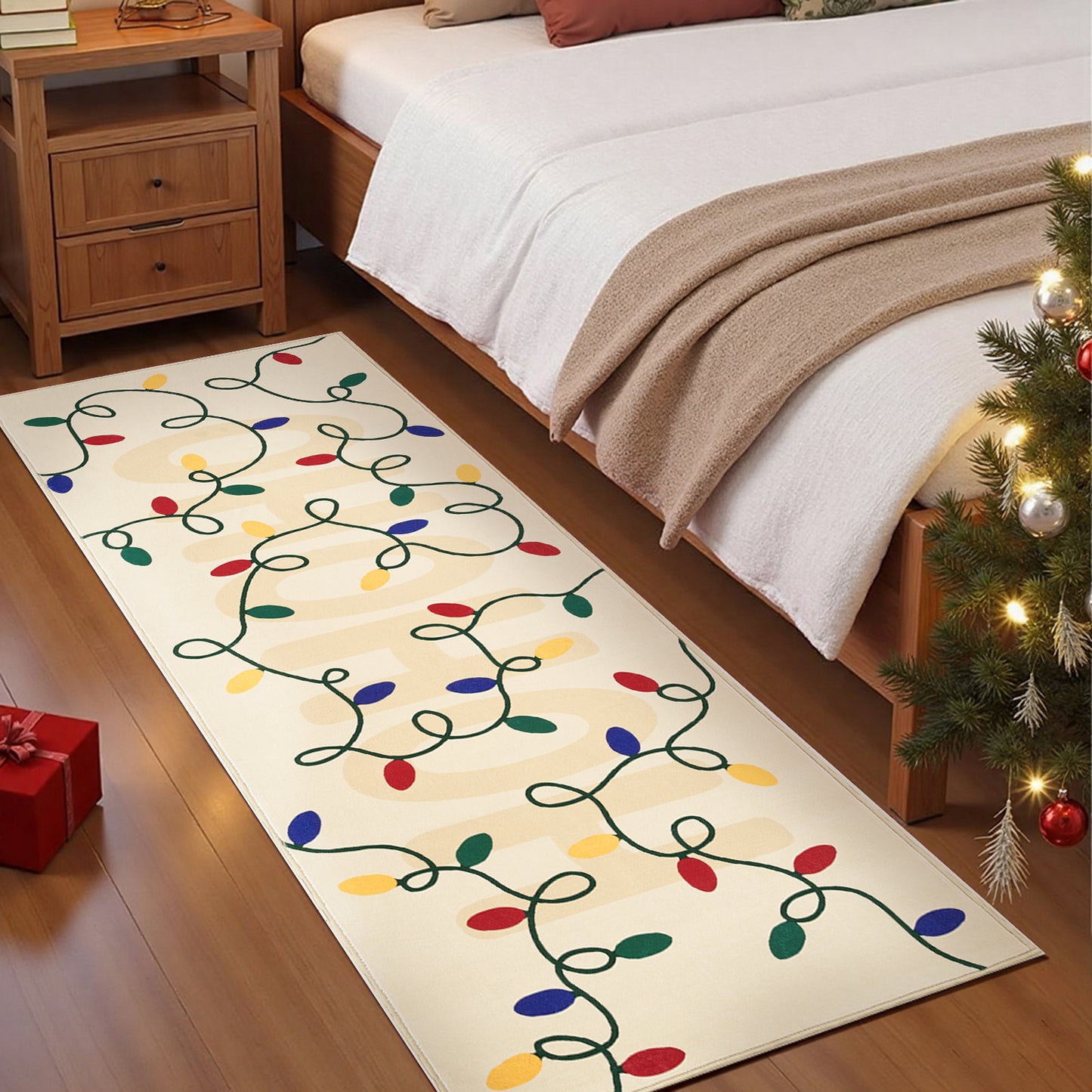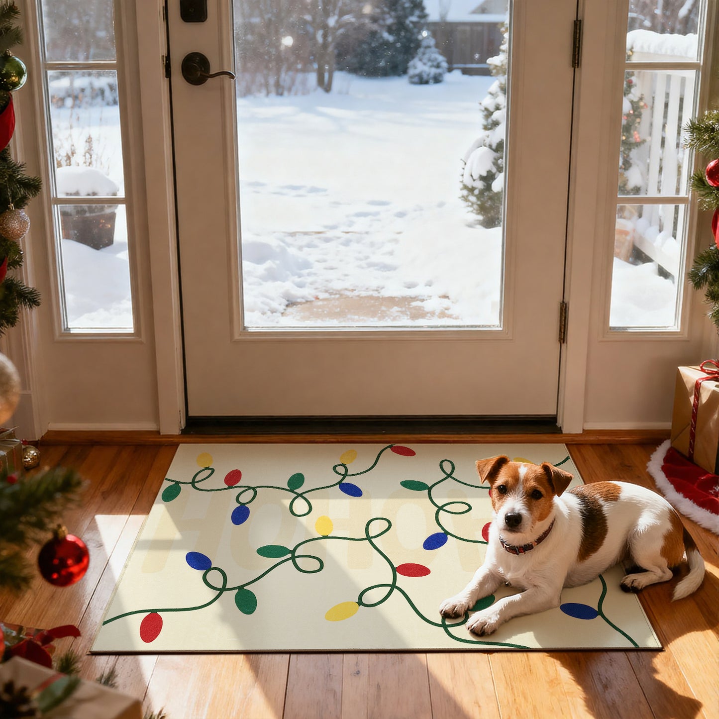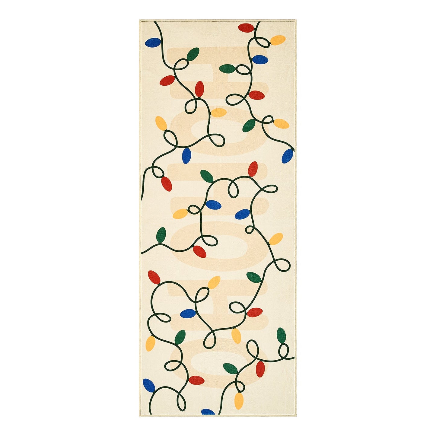 Bring the magic of Christmas into your home with the Ho Ho Ho Christmas Lights Rug from Jinchan.