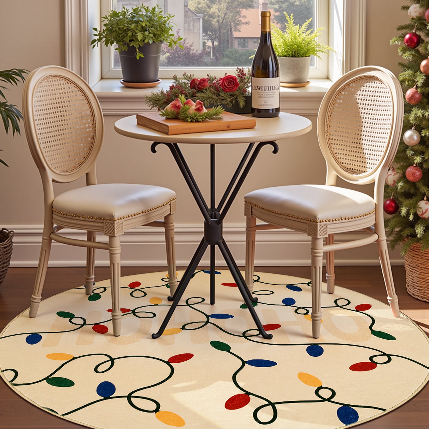 Inspired by Christmas string lights and Santa’s cheerful “Ho Ho Ho,” this rug instantly lifts the holiday spirit.