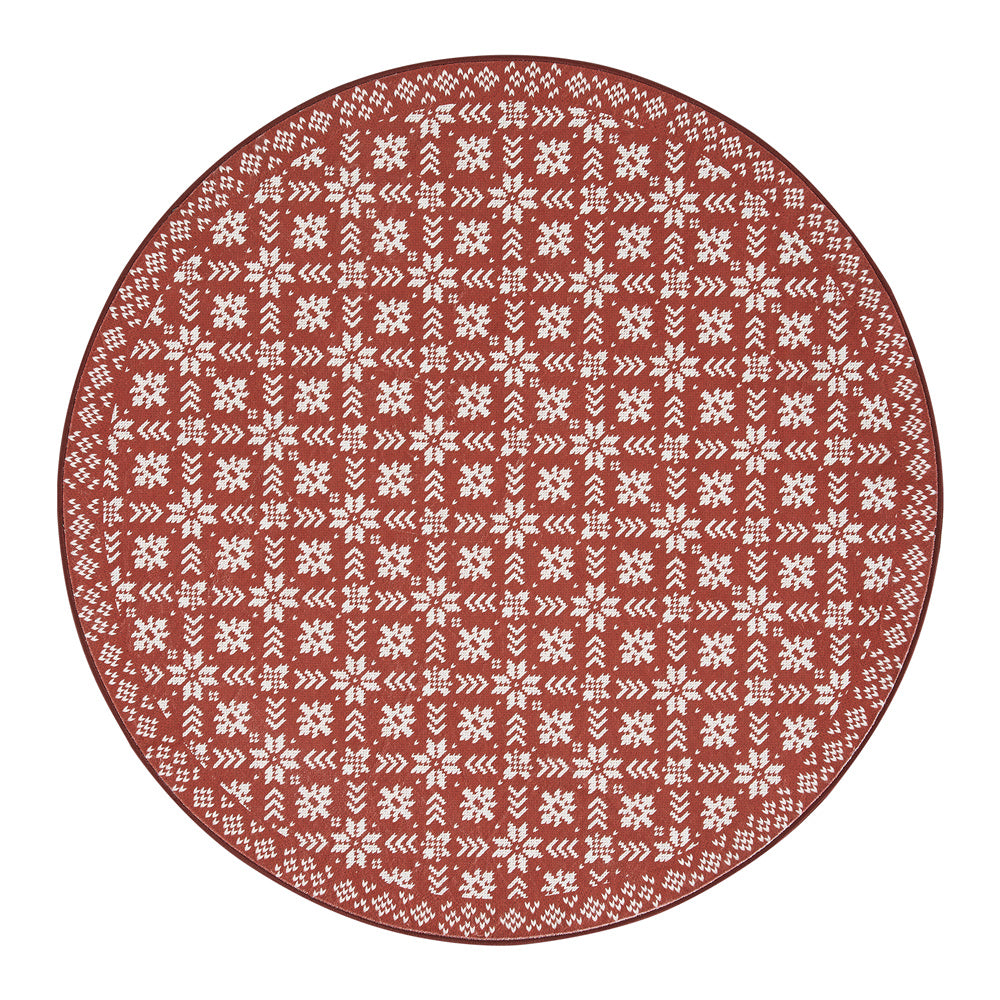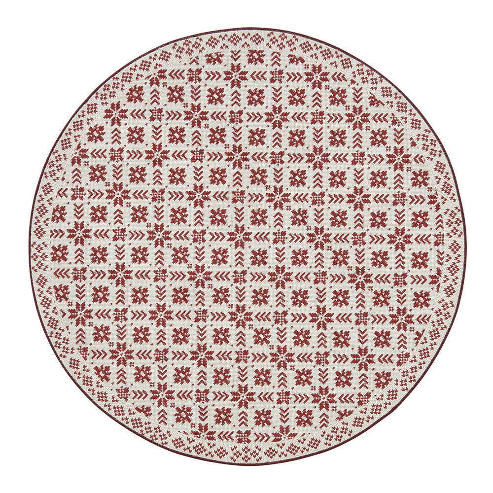 Featuring a traditional snowflake-and-chevron pattern reminiscent of classic winter sweaters, this rug combines timeless holiday warmth with modern simplicity.